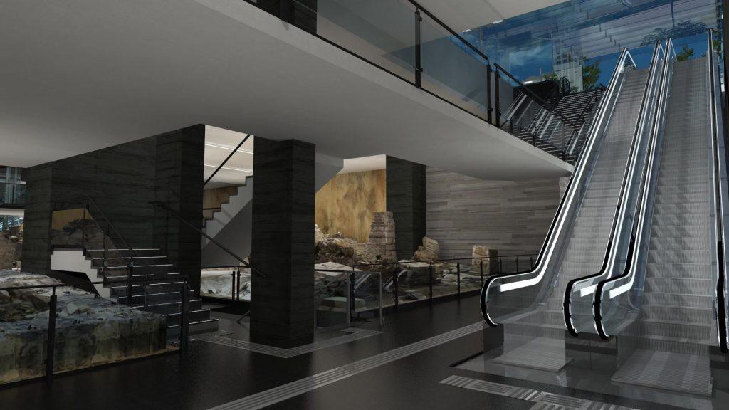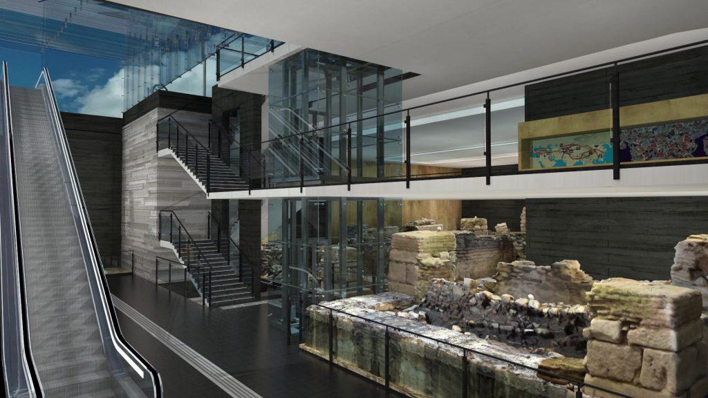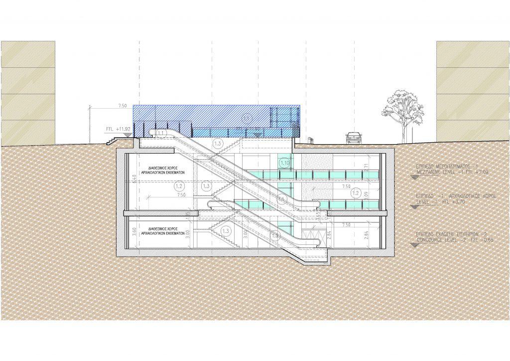 Στο χώρο και των δύο εισόδων σε αυτό το επίπεδο προβλέπεται επανατοποθέτηση αρχαιολογικών ευρημάτων από την μελλοντική ανασκαφή σε συνέχεια του υφιστάμενου αρχαιολογικού χώρου