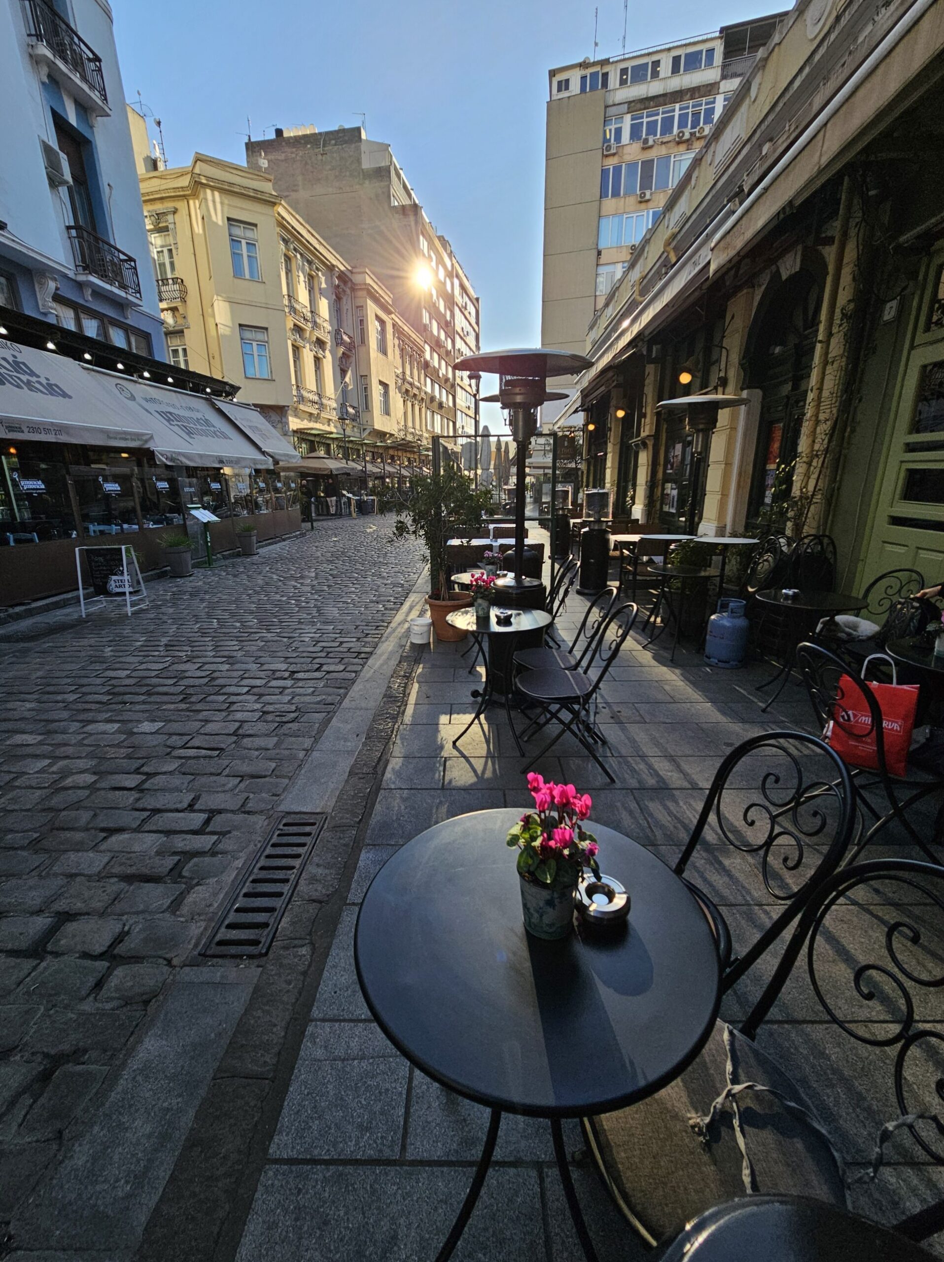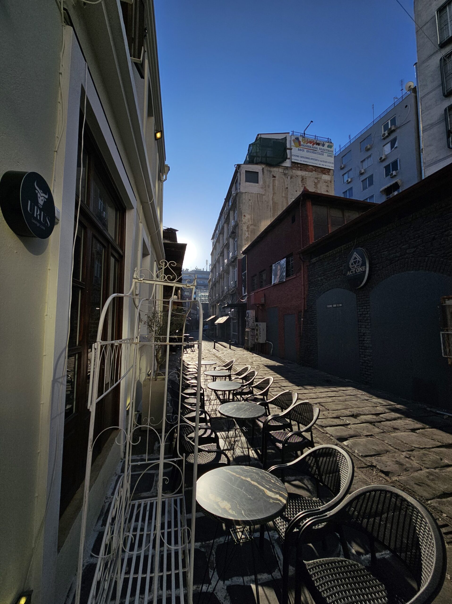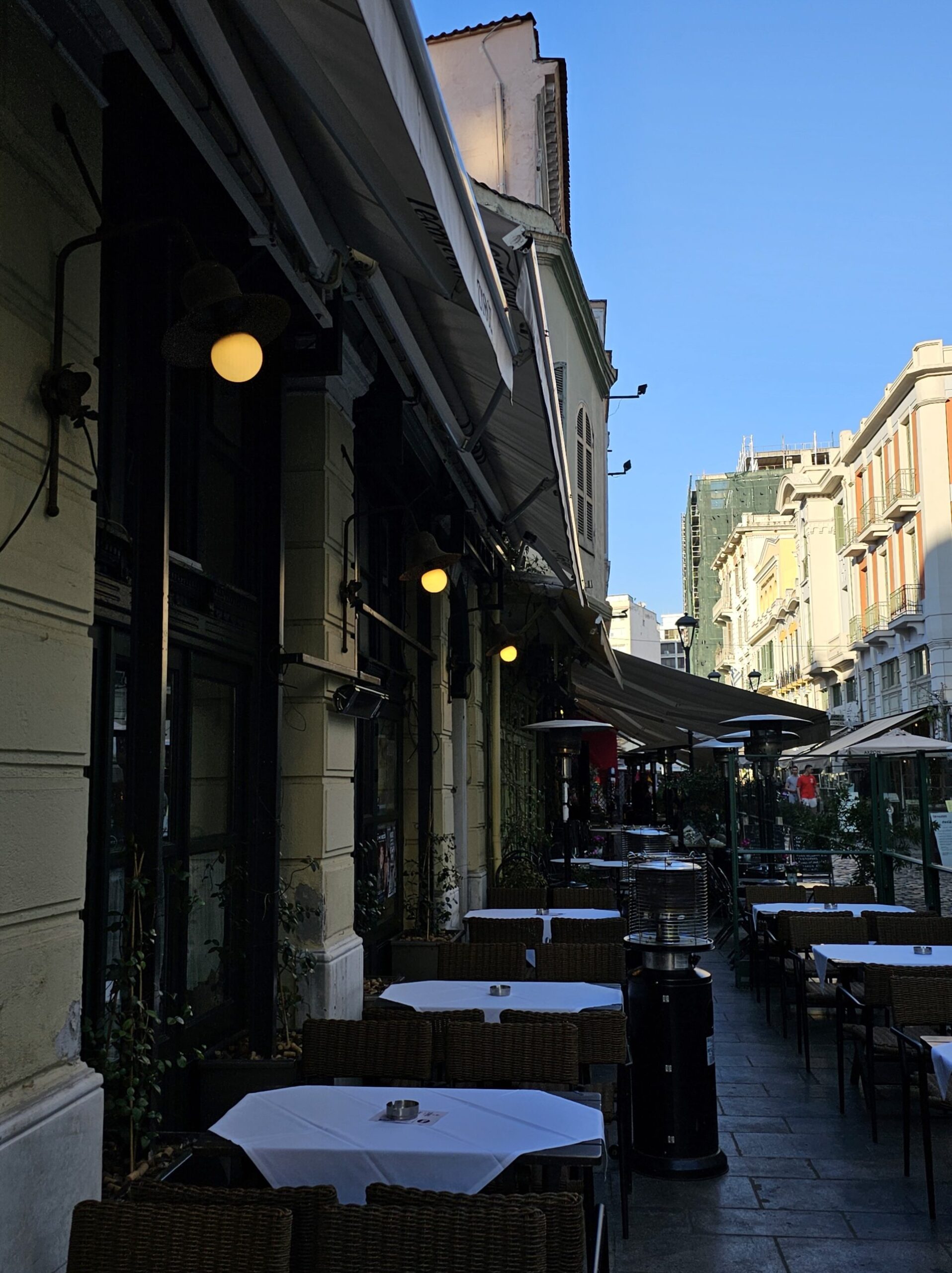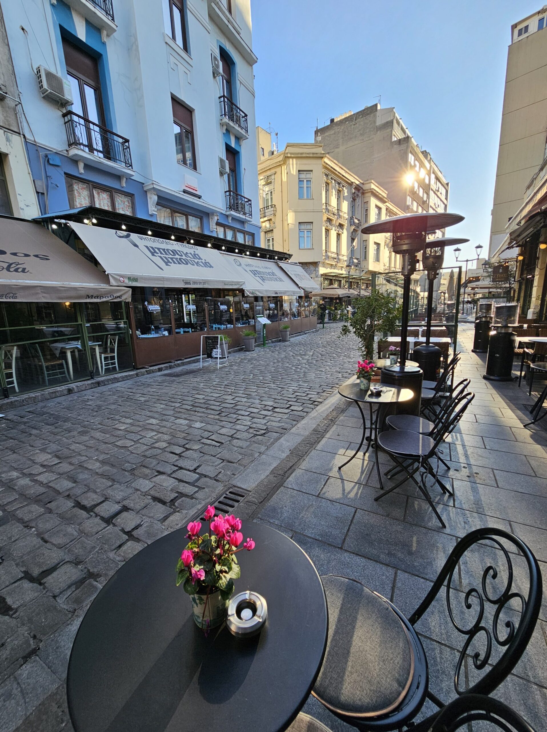 Ο ήλιος που πέφτει σιγά σιγά προς τη Δύση, δημιουργεί έναν όμορφο γλυκό φωτισμό με έντονες σκιές στα στενά των Λαδάδικων.
