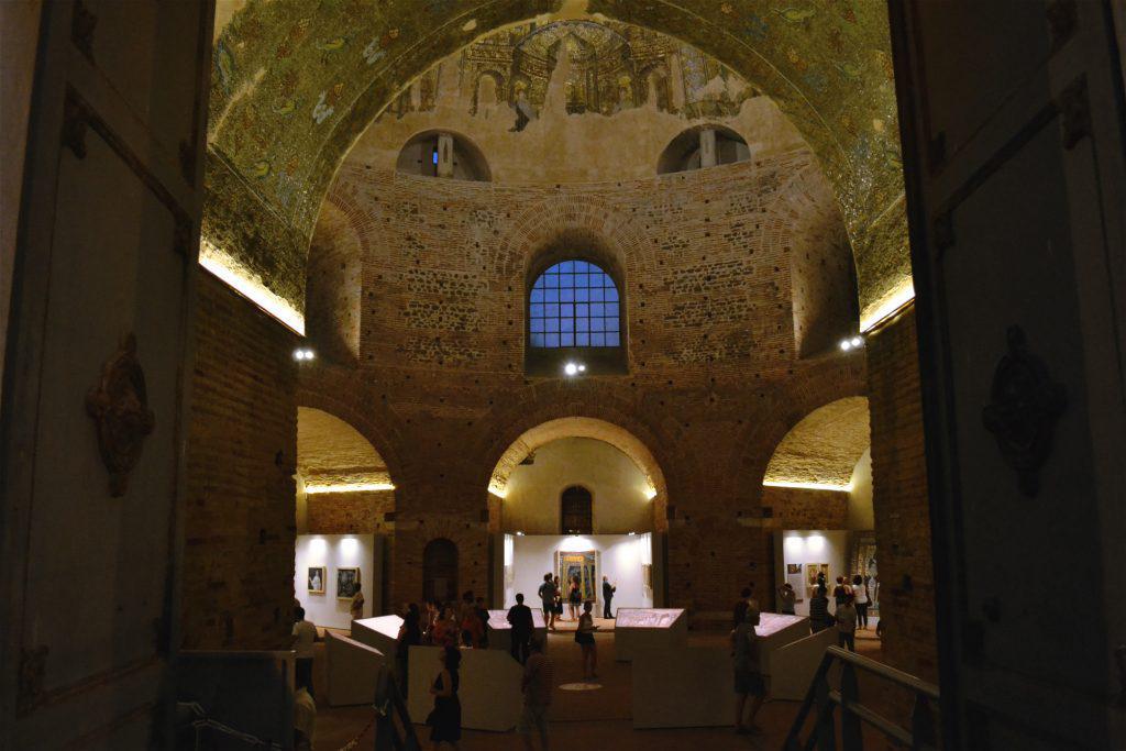 Μεγάλη η προσέλευση κόσμου το βράδυ της Δευτέρα στην έκθεση «Η λάμψη του ψηφιδωτού. Αυθεντικά και αντίγραφα από τη Θεσσαλονίκη και τη Ραβέννα», η οποία παρουσιάζει αντίγραφα εντοίχιων ψηφιδωτών από μνημεία της Ραβέννας (5ος-6ος αι.) σε “συνομιλία” με φωτογραφίες εντοίχιων ψηφιδωτών από μνημεία της Θεσσαλονίκης της παλαιοχριστιανικής περιόδου, αλλά και με τα πρωτότυπα ψηφιδωτά της Ροτόντας.