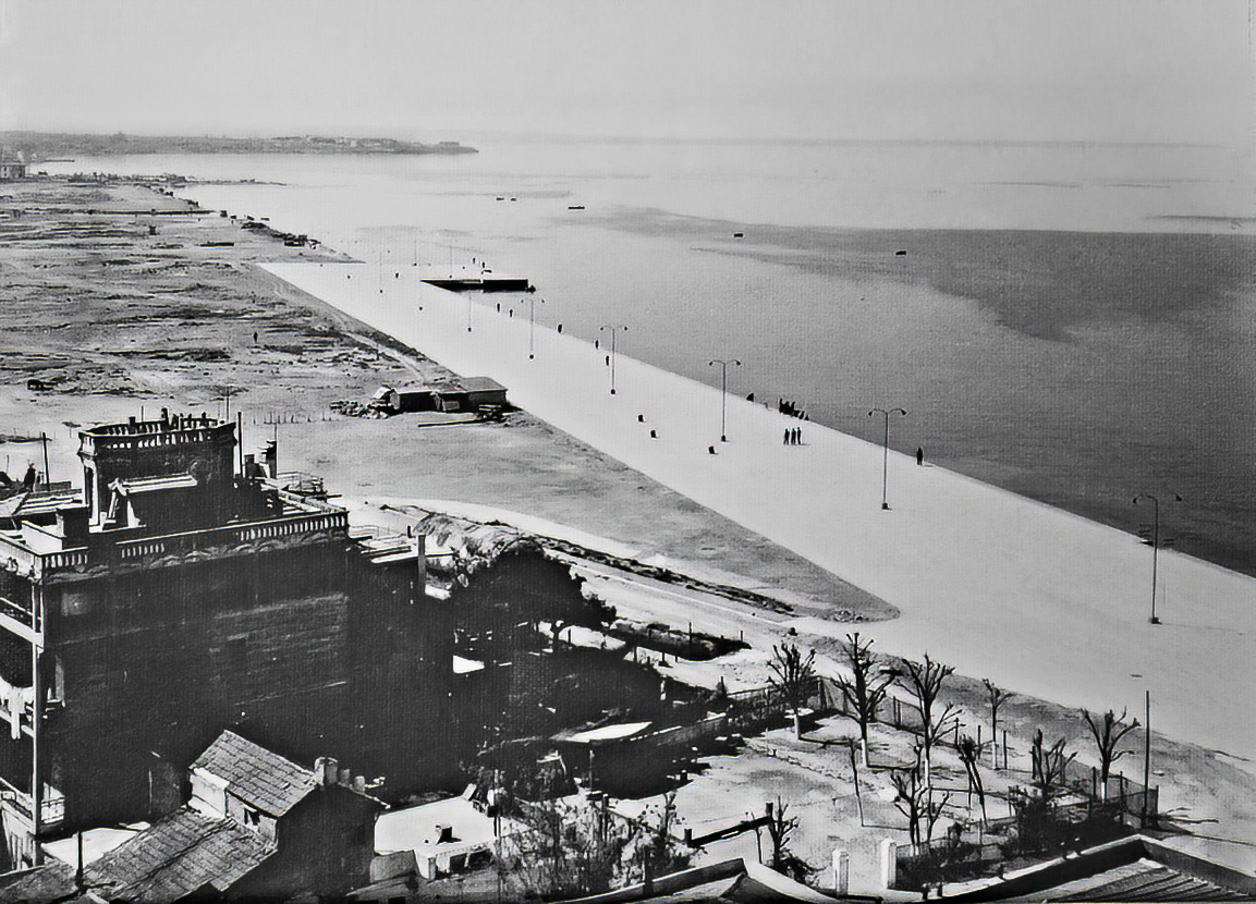 Το 1959 ξεκινάει η μεγάλη επιχωμάτωση με το ξήλωμα των υπαίθριων καφενείων και ταβερνών, το μπάζωμα της ακτής από το πάρκο του Λευκού Πύργου μέχρι το Καραμπουρνάκι και την κατασκευή της νέας ανατολικής παραλίας.
