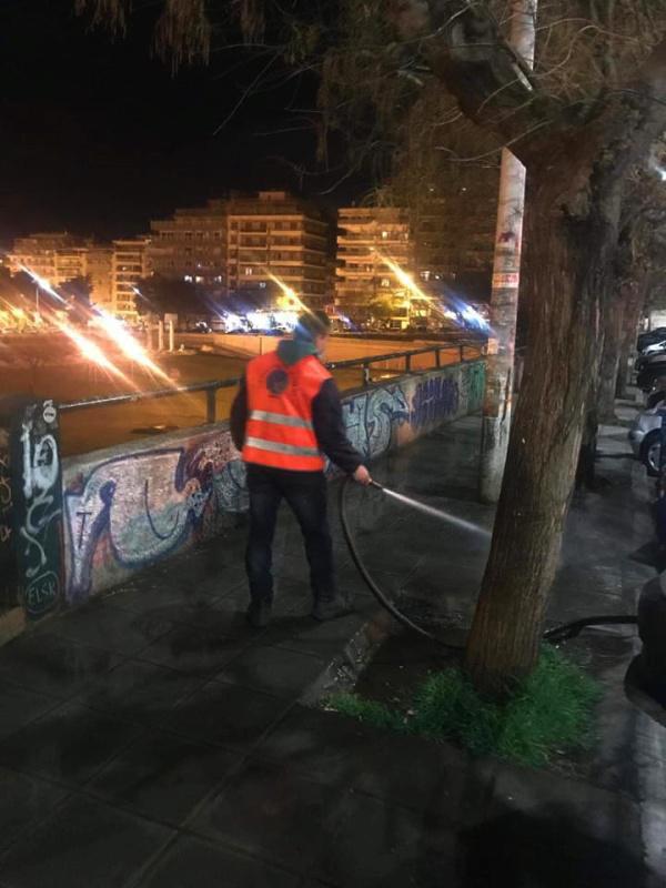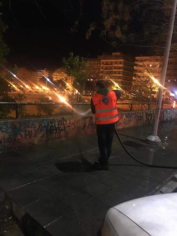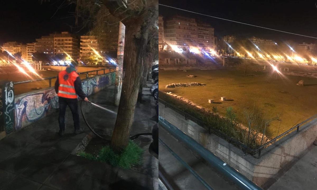 ΕΙΚΟΝΕΣ: Επιχείρηση καθαρισμού τα ξημερώματα στο κέντρο Θεσσαλονίκης