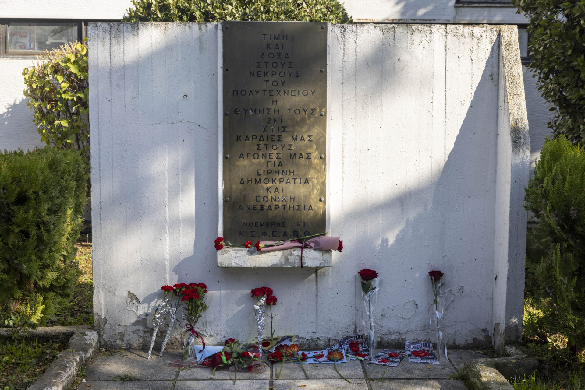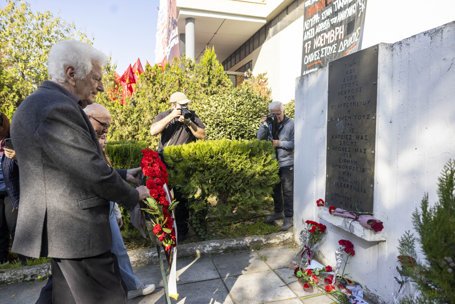ΕΙΚΟΝΕΣ: Γαρύφαλλα και στεφάνια στο μνημείο της Πολυτεχνικής Σχολής στη Θεσσαλονίκη