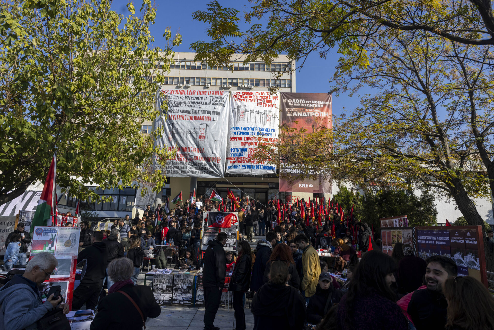 Στεφάνια κατατέθηκαν το πρωί της Κυριακής στο μνημείο της Πολυτεχνικής Σχολής του ΑΠΘ, ενόψει της αυριανής επετείου της Εξέγερσης του Πολυτεχνείου.