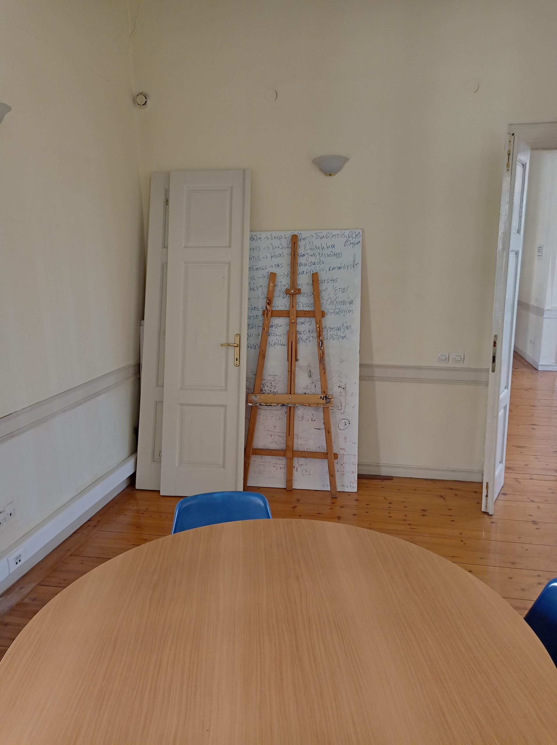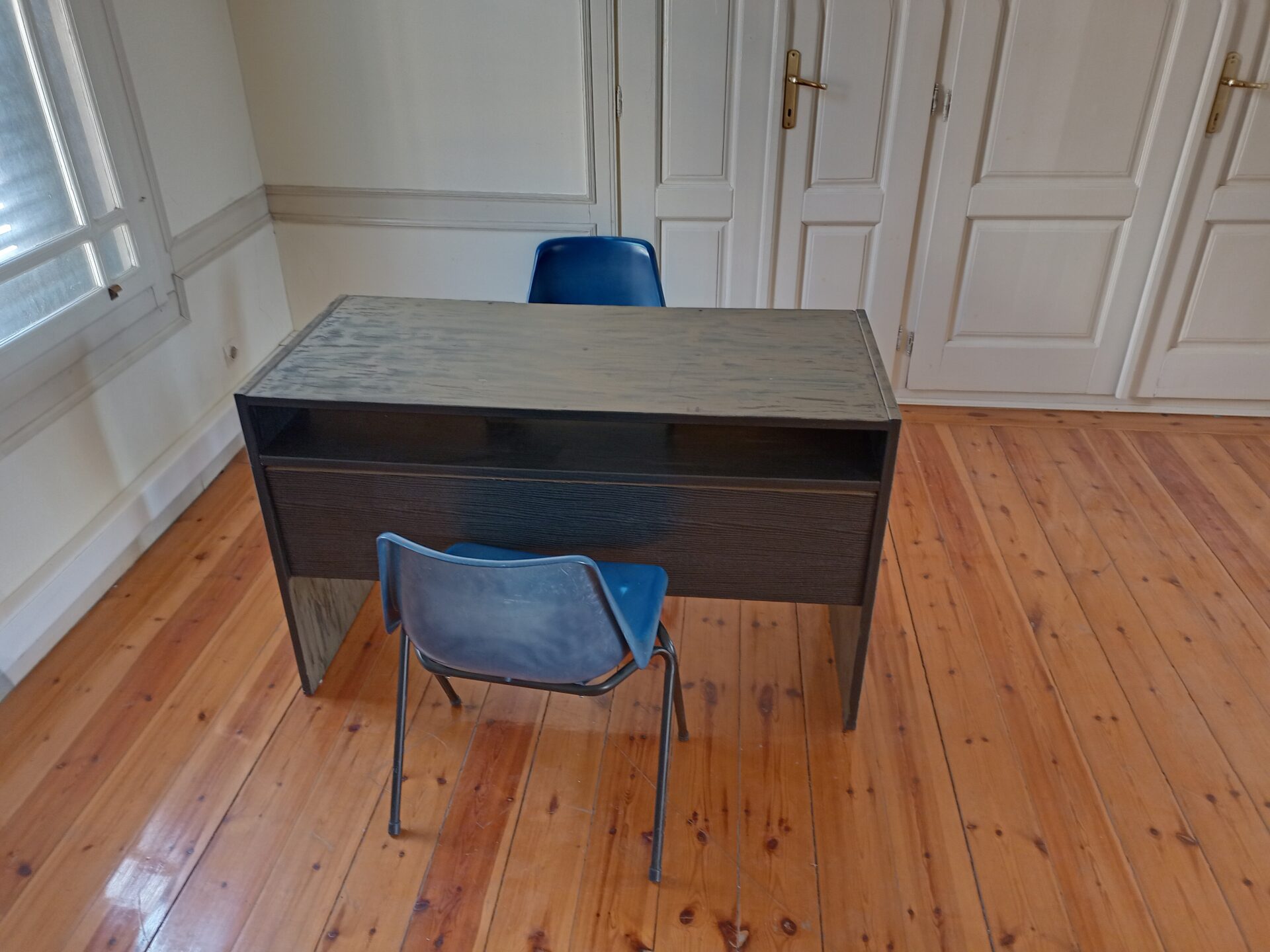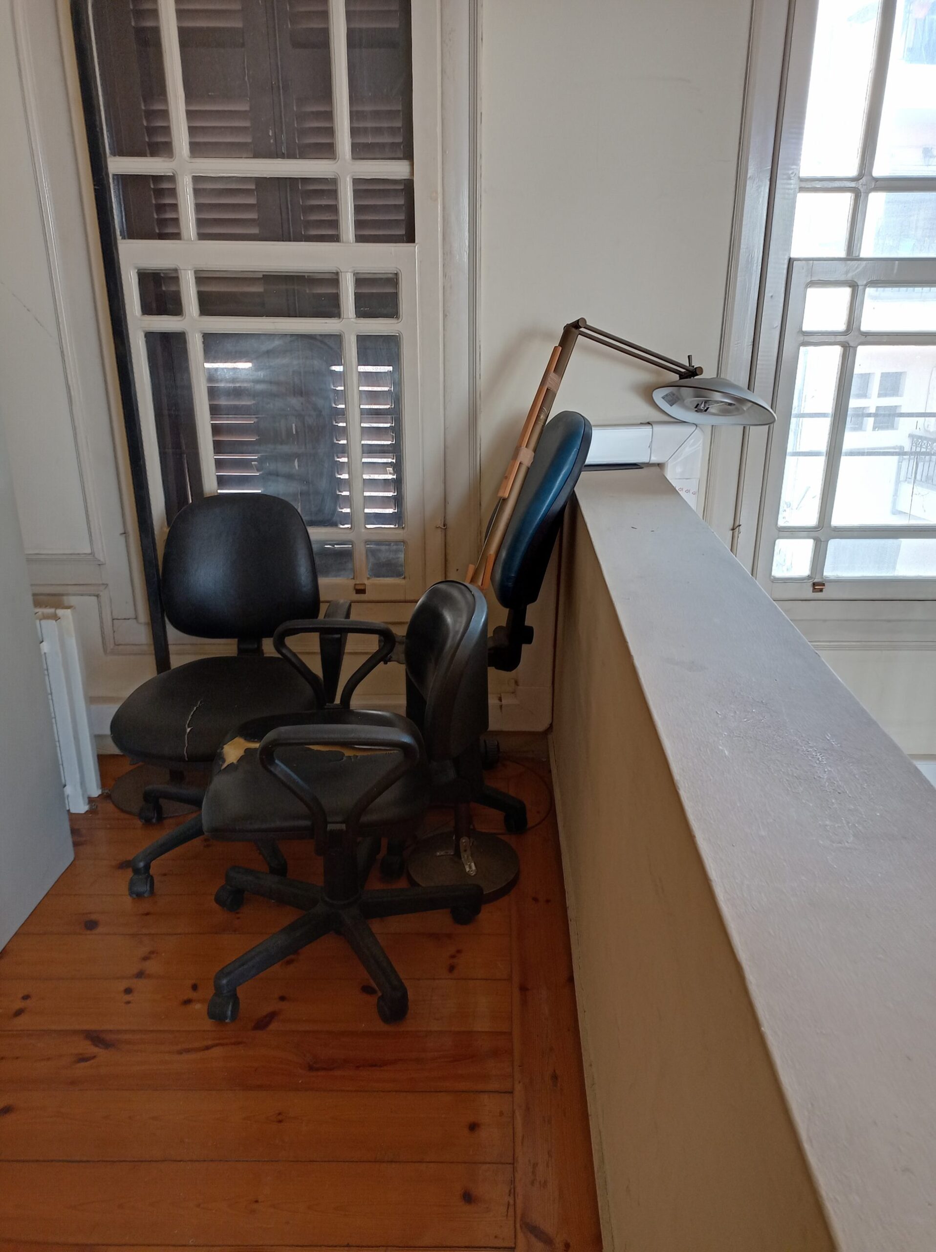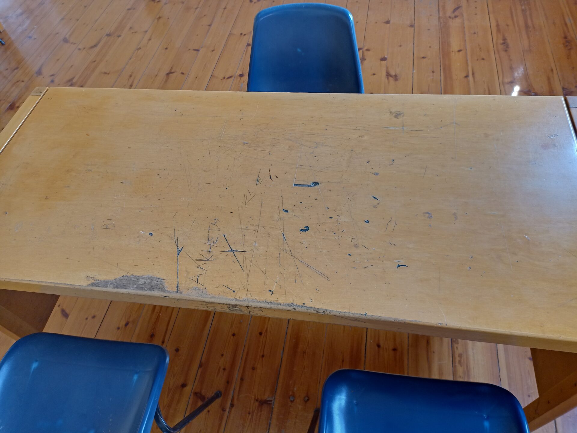 Υλικοτεχνικός εξοπλισμός που έχει μείνει στο παρελθόν και είναι σε κακή κατάσταση. Με καρέκλες που παραπέμπουν σε αίθουσα φροντιστηρίου και όχι σε βιβλιοθήκης.
