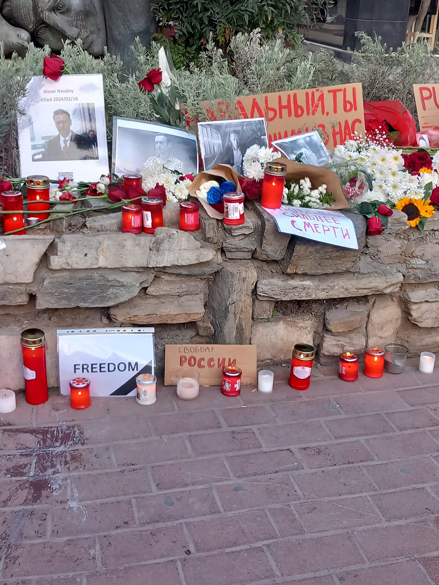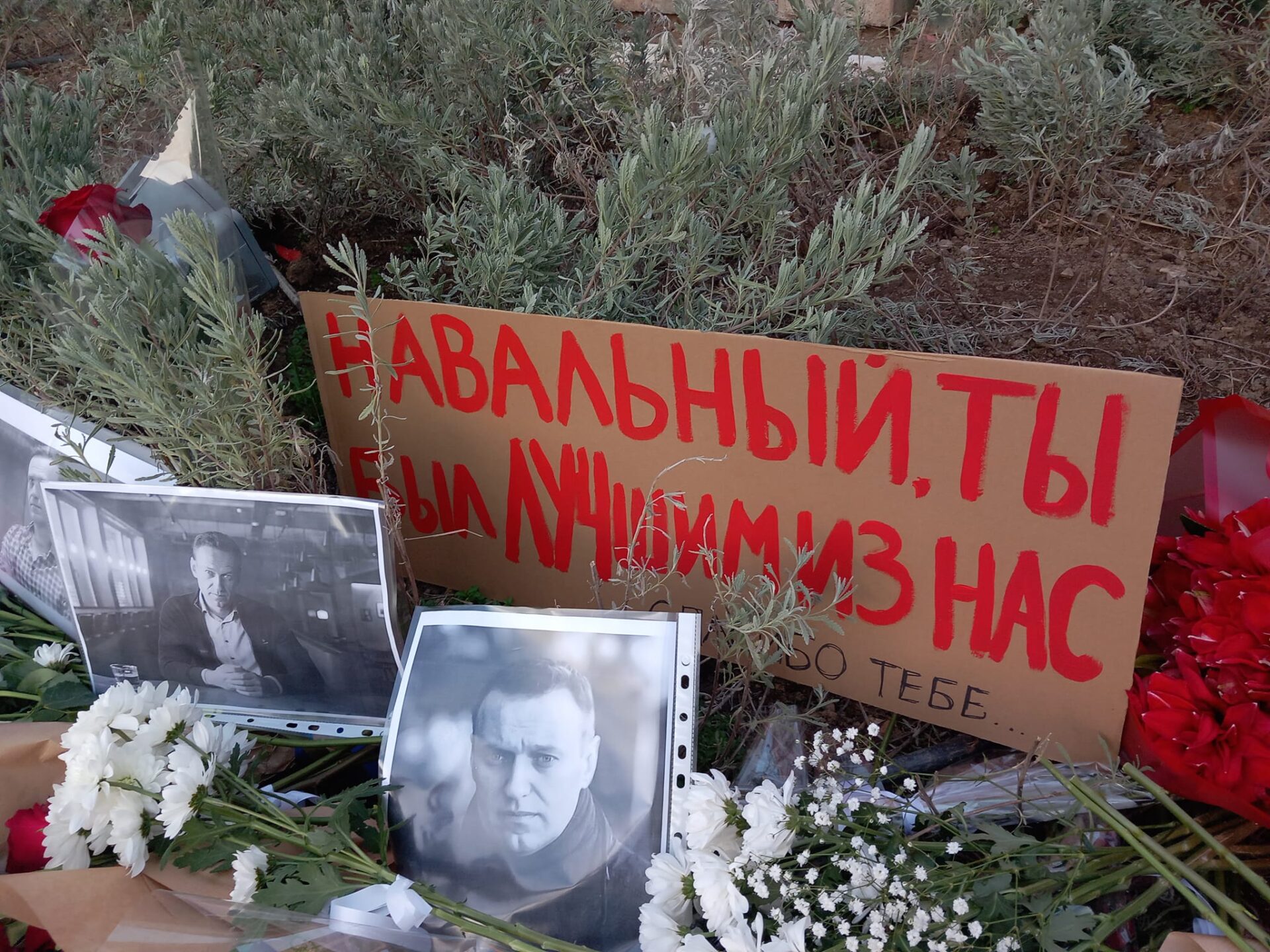 Αυτοσχέδιο μνήμα δημιουργήθηκε στο κέντρο της πόλης, ύστερα από τη ξαφνική είδηση του θανάτου του ηγέτη της ρωσικής αντιπολίτευσης.