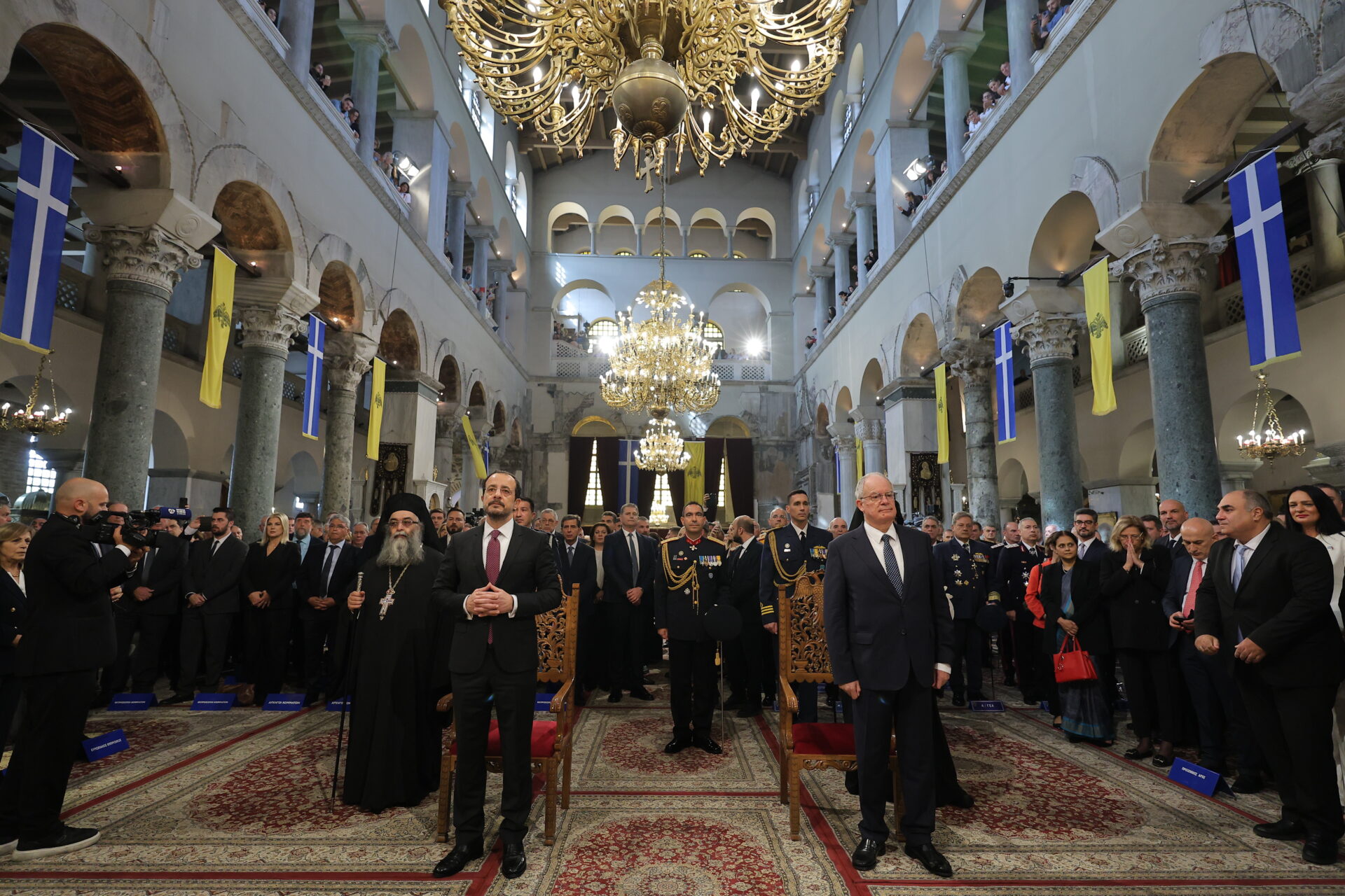 Δήλωση για τη μεγάλη διπλή γιορτή στη Θεσσαλονίκη έκανε ο Πρόεδρος της Δημοκρατίας Κωνσταντίνος Τασούλας, μετά το πέρας της επίσημης δοξολογίας στον Ιερό Ναό του Αγίου Δημητρίου.