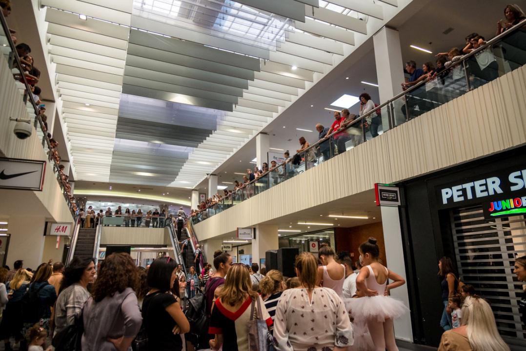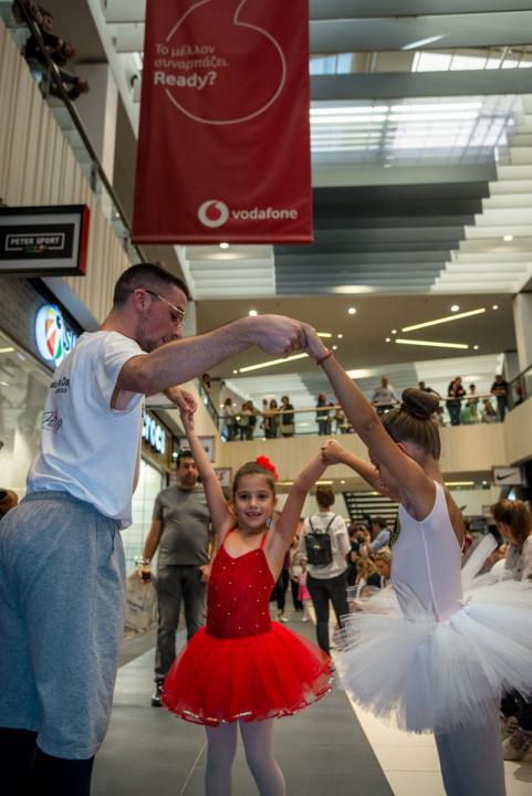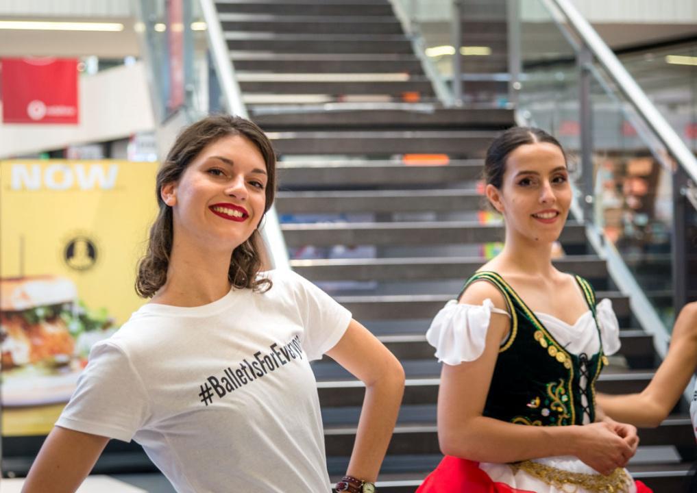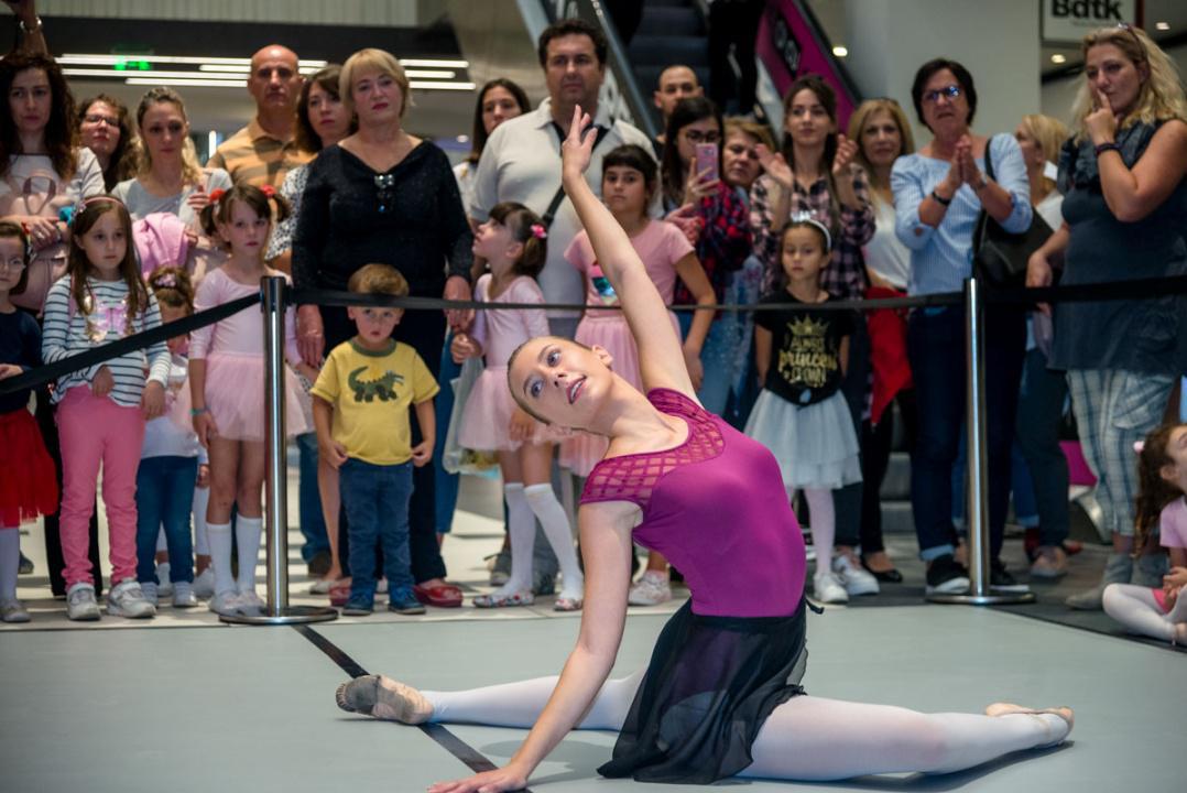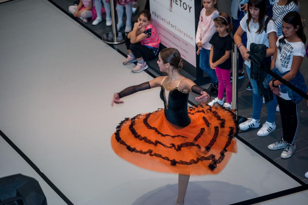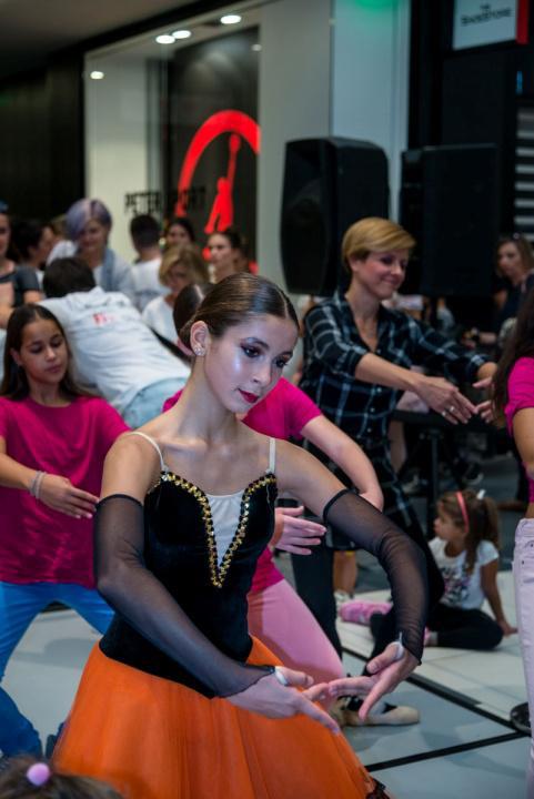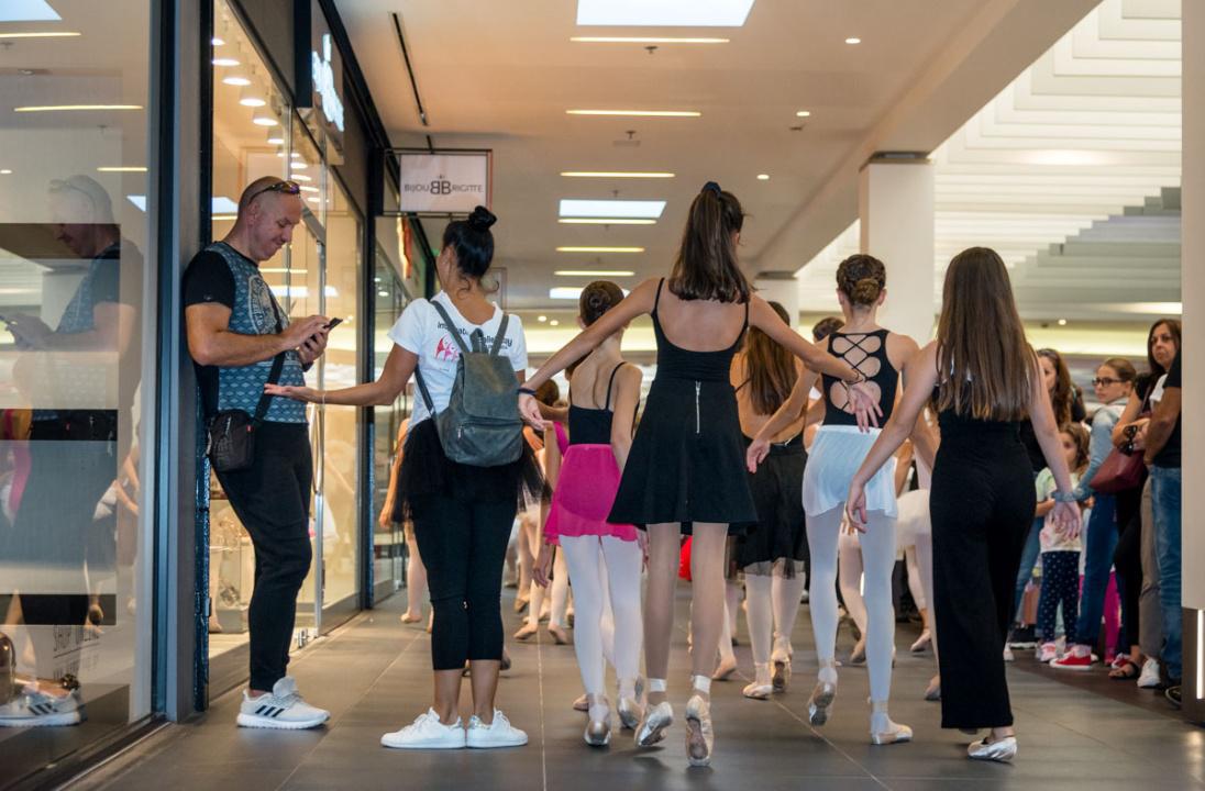 Στο πλαίσιο του εορτασμού της Παγκόσμιας Ημέρας Μπαλέτου, οι νεαροί χορευτές άρχισαν να κατεβαίνουν από τις σκάλες του εμπορικού αφήνοντας έκπληκτους του παρευρισκόμενους.
