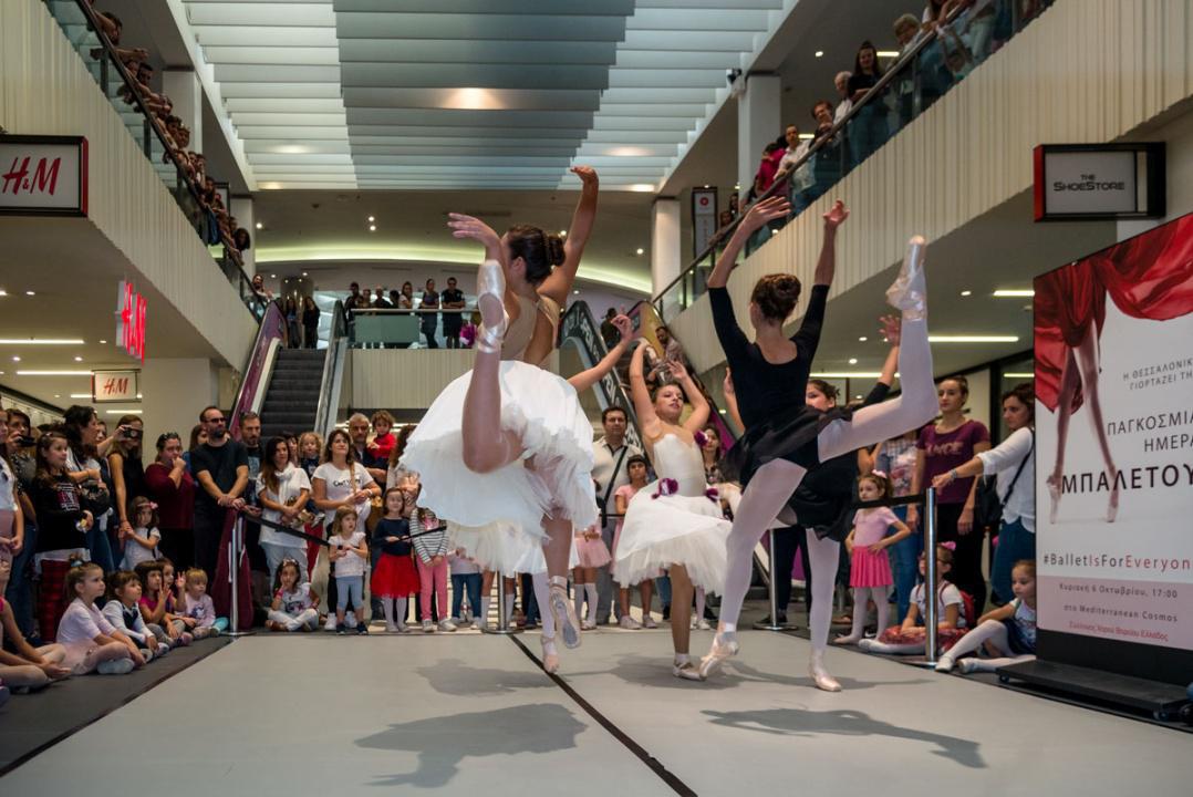Όσοι βρέθηκαν την Κυριακή στο Mediterranean Cosmos είδαν από κοντά ένα Flashmob μπαλέτου. Εκατοντάδες χορευτές κάθε ηλικίας χόρεψαν μπαλέτο υπό τον ήχο γνωστών τραγουδιών, ταξιδεύοντας καλλιτεχνικά τους περαστικούς.
