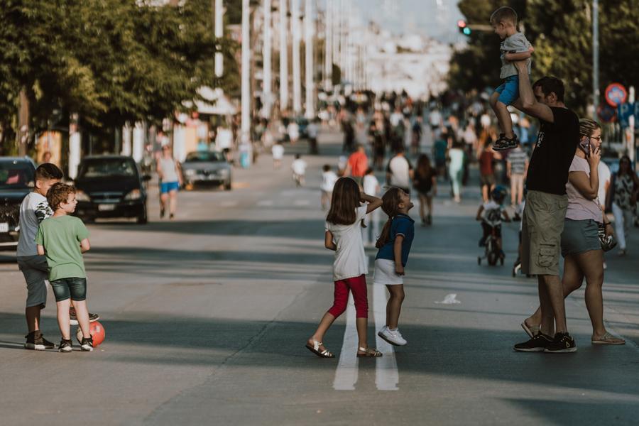 Χωρίς τον μόνιμο βραχνά του οδοστρώματος, το αυτοκίνητο, στο ωραιότερο σημείο της Καλαμαριάς. Στο πρότυπο των πιλοτικών πεζοδρομήσεων κεντρικών δρόμων που συμβαίνουν σε πολλούς κεντρικούς δρόμους πόλεων στον κόσμο.
