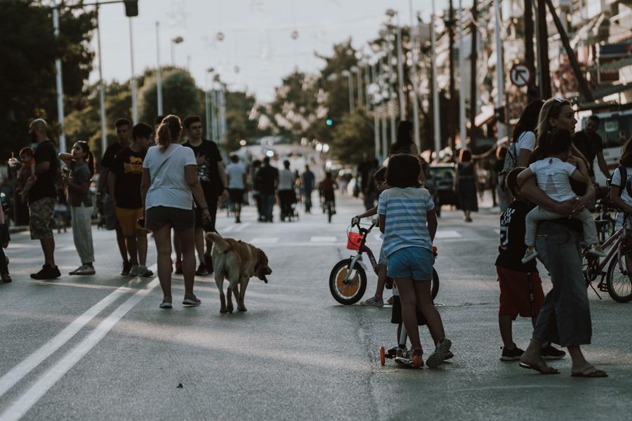 Πεζοί και ποδήλατα, σε ένα από τα ομορφότερα σημεία της Θεσσαλονίκης απόλαυσαν και συνεχίζουν και σήμερα μέχρι το βράδυ να απολαμβάνουν το δημόσιο χώρο της Καλαμαριάς.