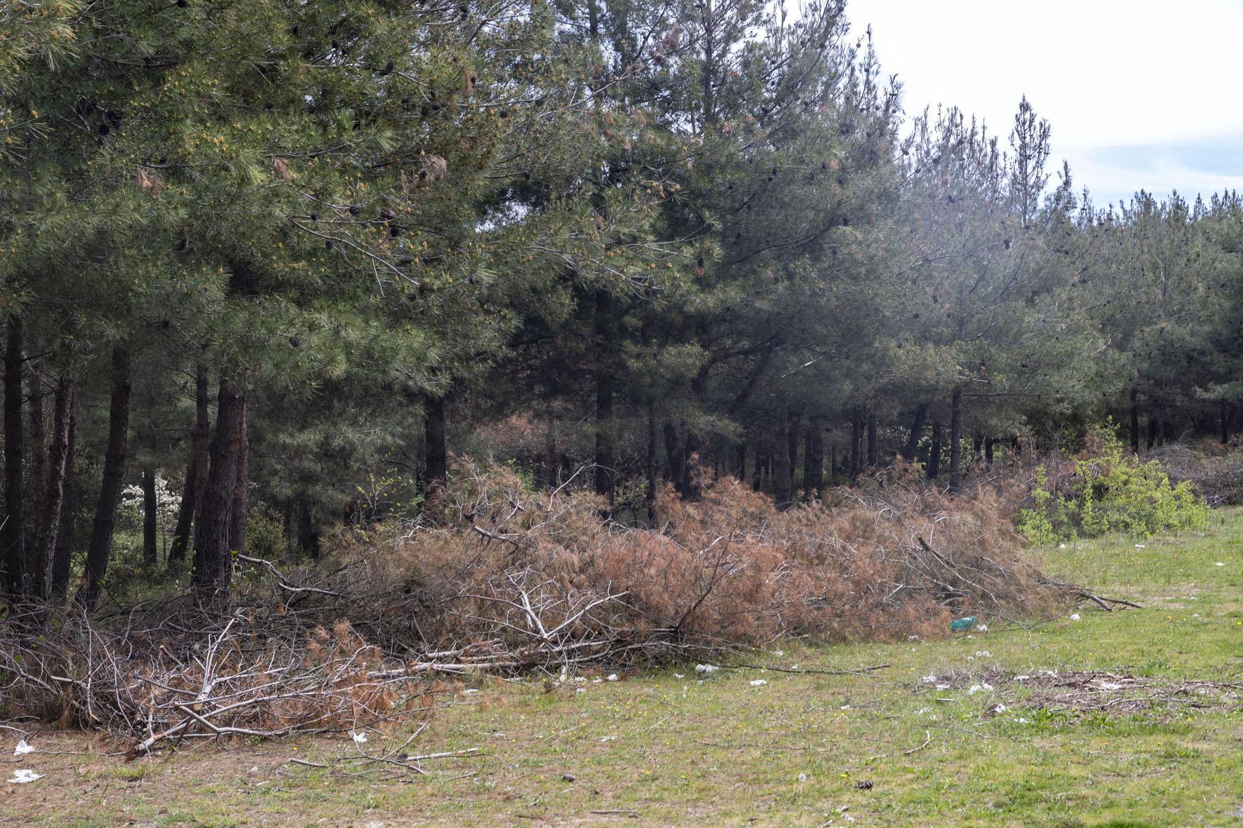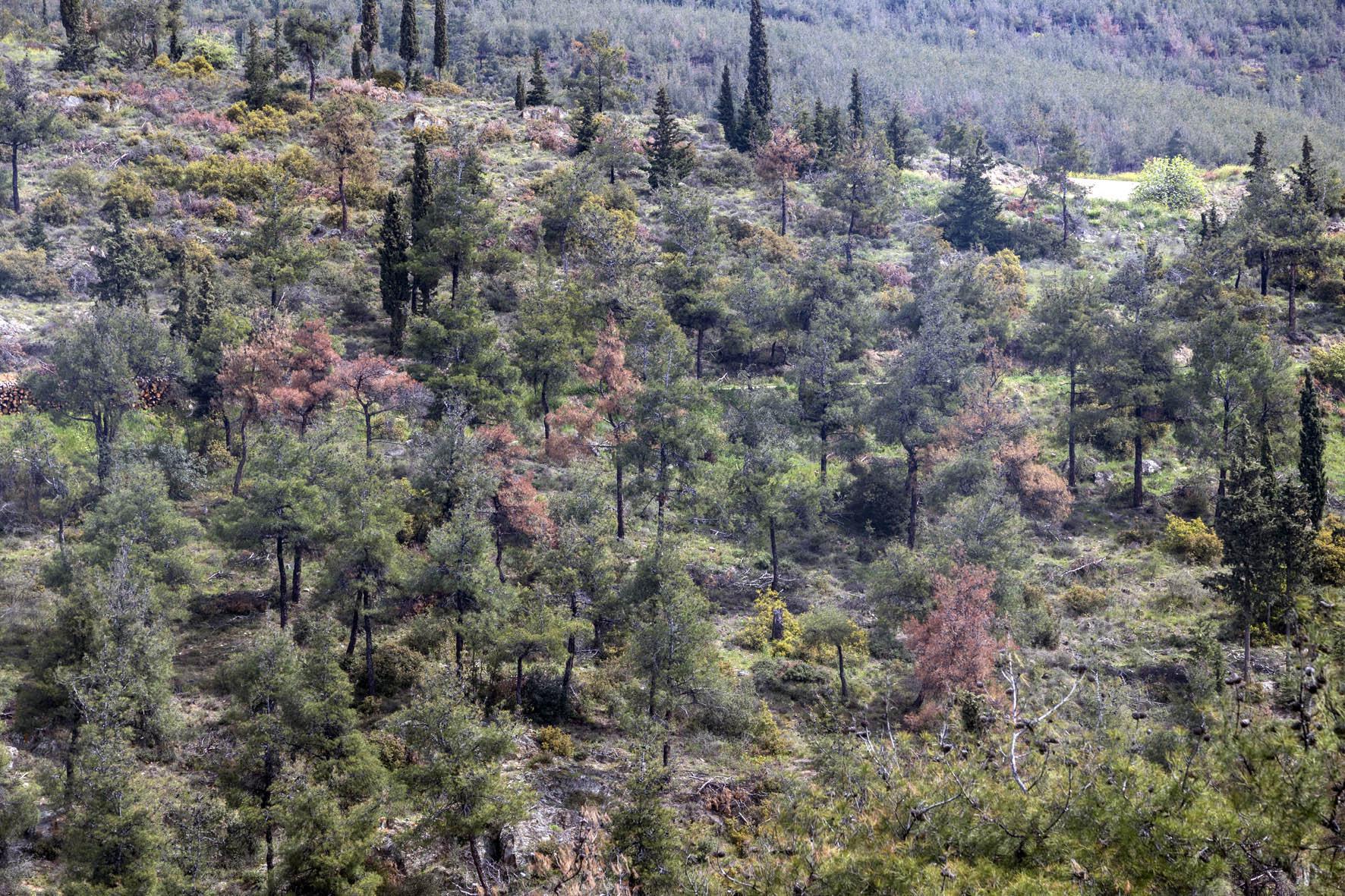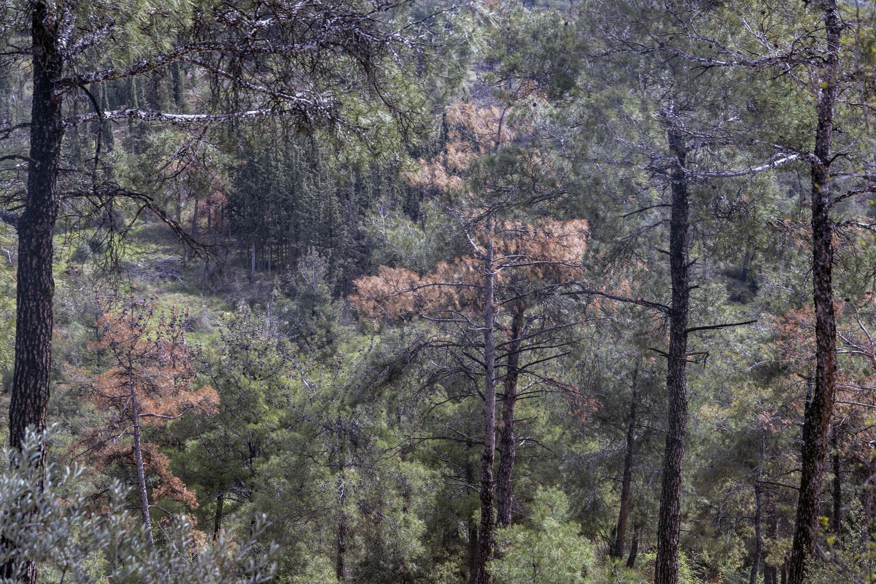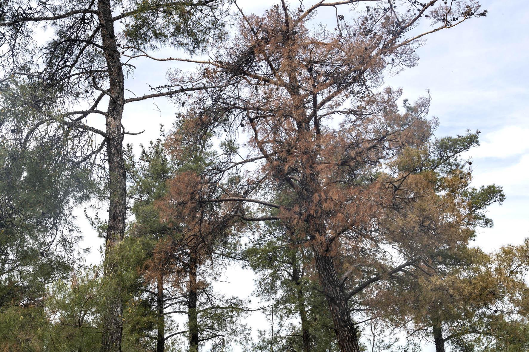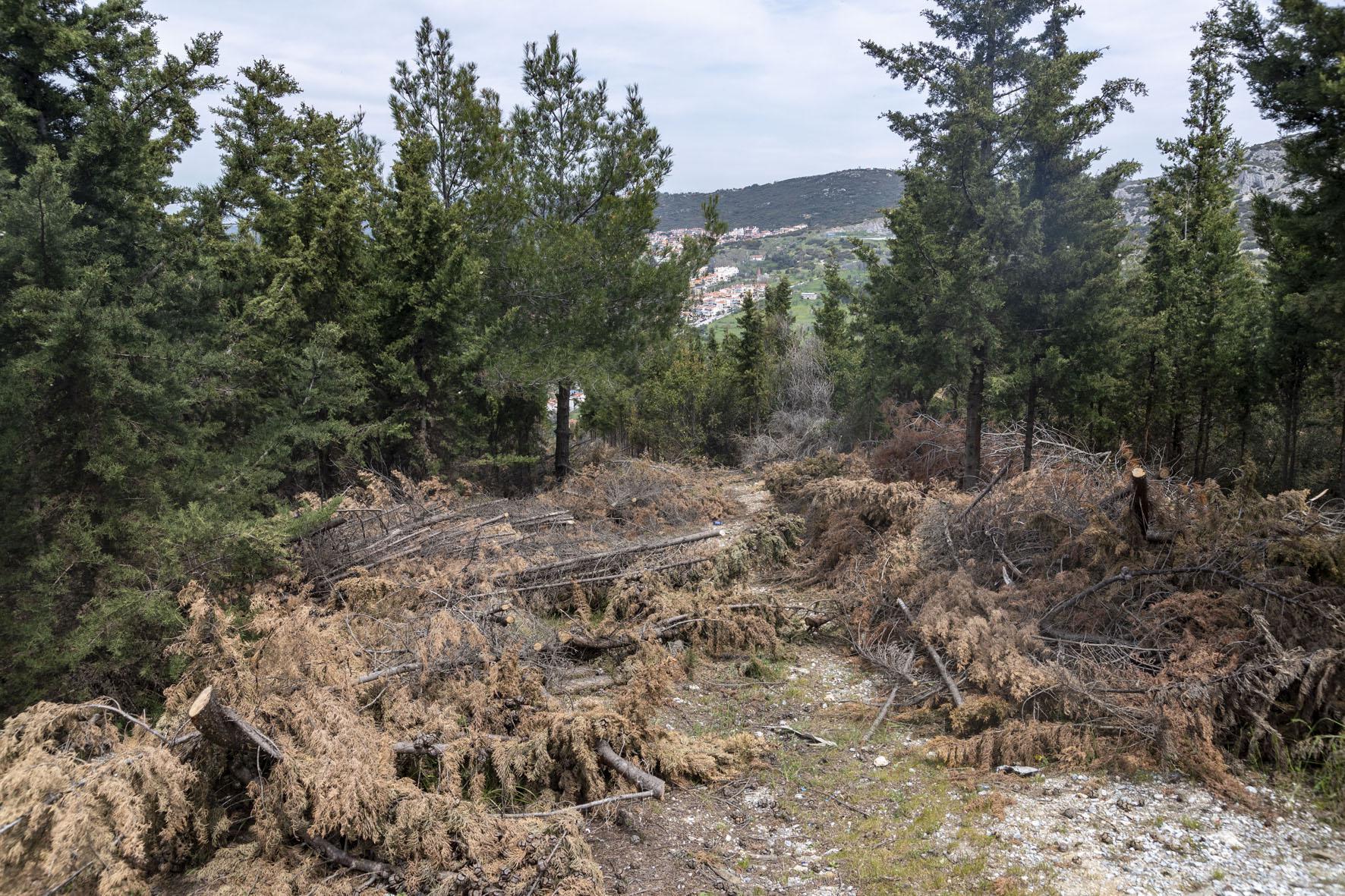 Τεμαχισμένοι κορμοί στοιβαγμένοι σε ατελείωτες σειρές, αποξηραμένα κομμένα κλαδιά, παχιά στρώματα πευκοβελόνας, που αποτελούν ένα επικίνδυνο κράμα έτοιμο να… εκραγεί με την άνοδο της θερμοκρασίας ενόψει του καλοκαιριού, αλλά κυρίως νεαρά δένδρα αποξηραμένα πλέον από το καταστροφικό έντομο του φλοιοφάγου ή βλαστοφάγου (Tomicus piniperda) στην καρδιά τους δάσους, ακόμη και σε εκτάσεις που είχαν υλοτομηθεί, είναι τα στοιχεία που συνθέτουν τη θλιβερή εικόνα της εξελισσόμενης καταστροφής του περιαστικού δάσους της Θεσσαλονίκης Σέιχ-Σου.
