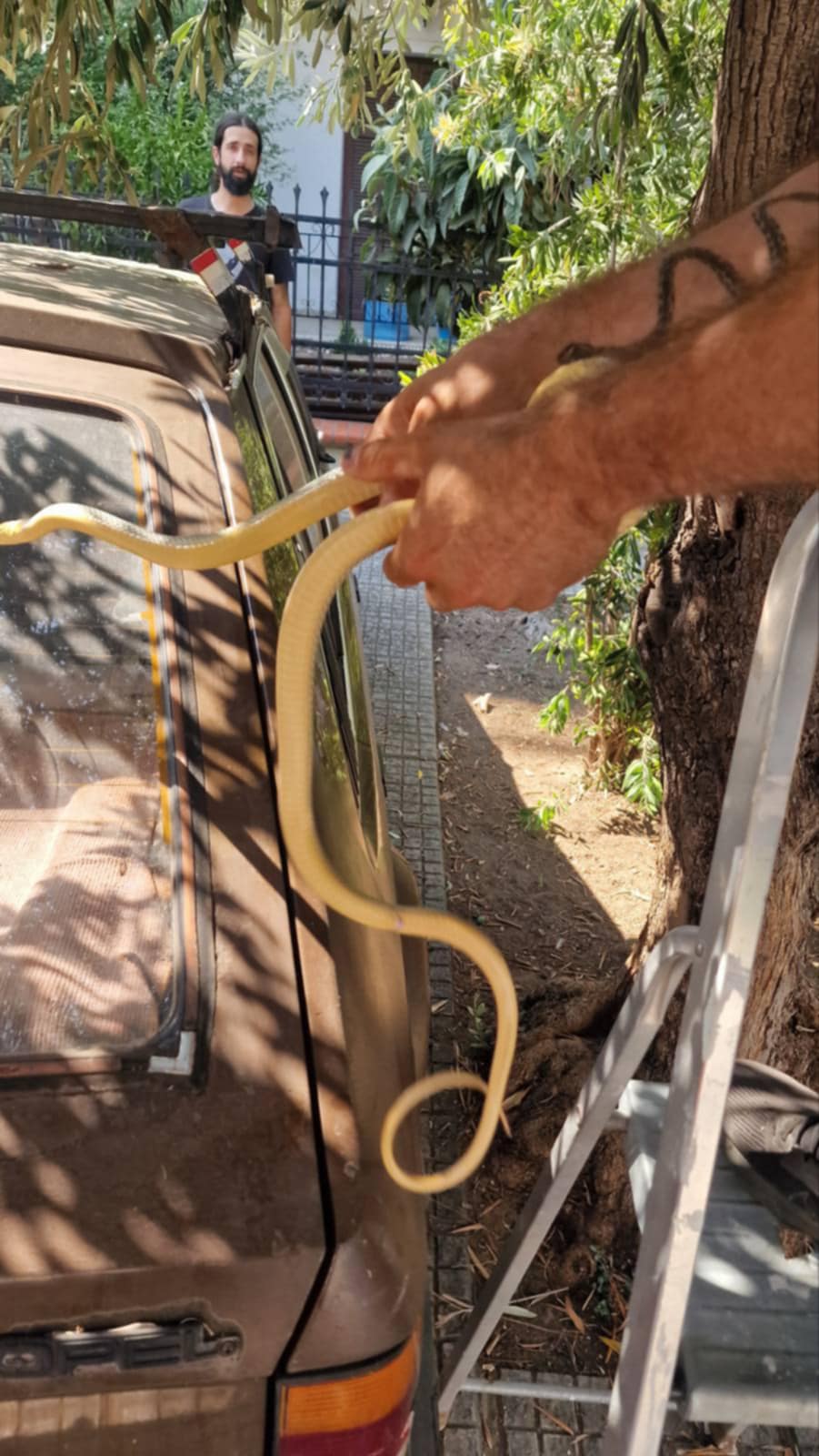 Η Πολιτική Προστασία κάλεσε άμεσα ειδικό ερπετολόγο από την Εθελοντική Ομάδα Διάσωσης και Επανένταξης Άγριας Ζωής, ο οποίος έφθασε άμεσα στο σημείο και προχώρησε με ασφάλεια στην απομάκρυνση του φιδιού.