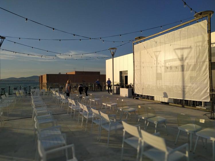 Ξεκίνησαν απόψε, για ένα ακόμα καλοκαίρι, παρά τις αντιξοότητες οι προβολές που διοργανώνουν μαζί το Φεστιβάλ Κινηματογράφου Θεσσαλονίκης και ο Οργανισμός Μεγάρου Μουσικής Θεσσαλονίκης, το αγαπημένο Σινεμά με Θέα στην ταράτσα του Κτιρίου Μ2.
