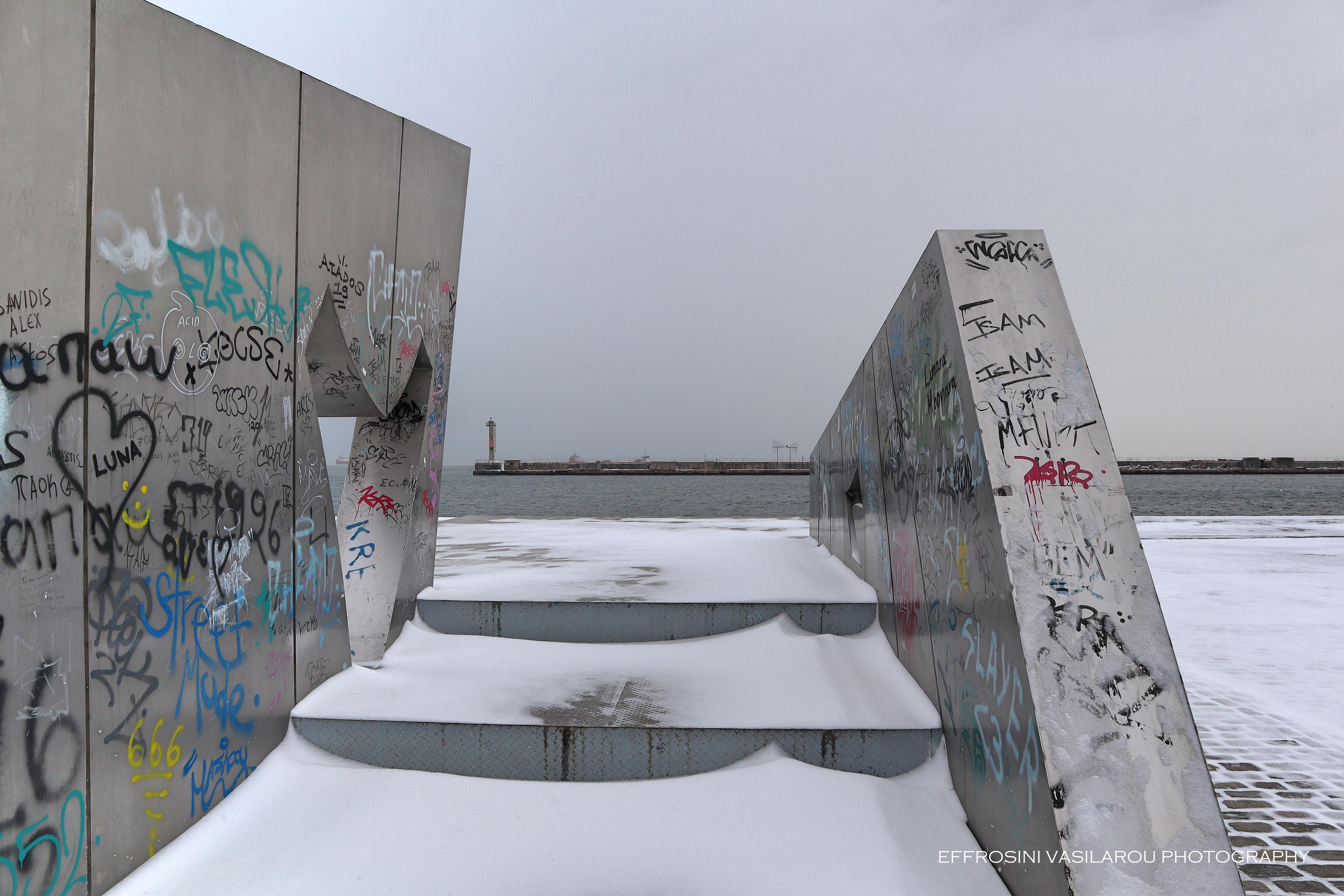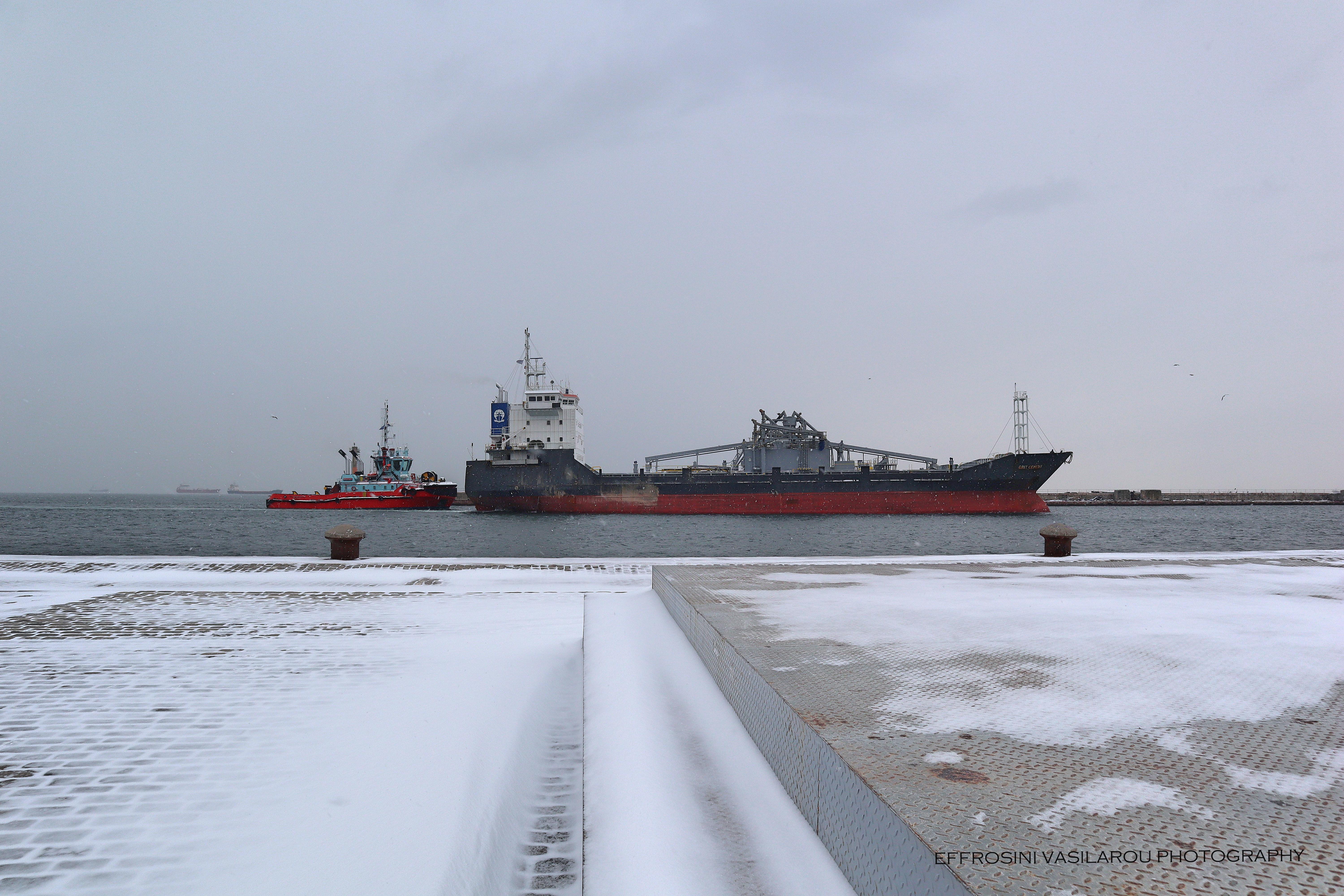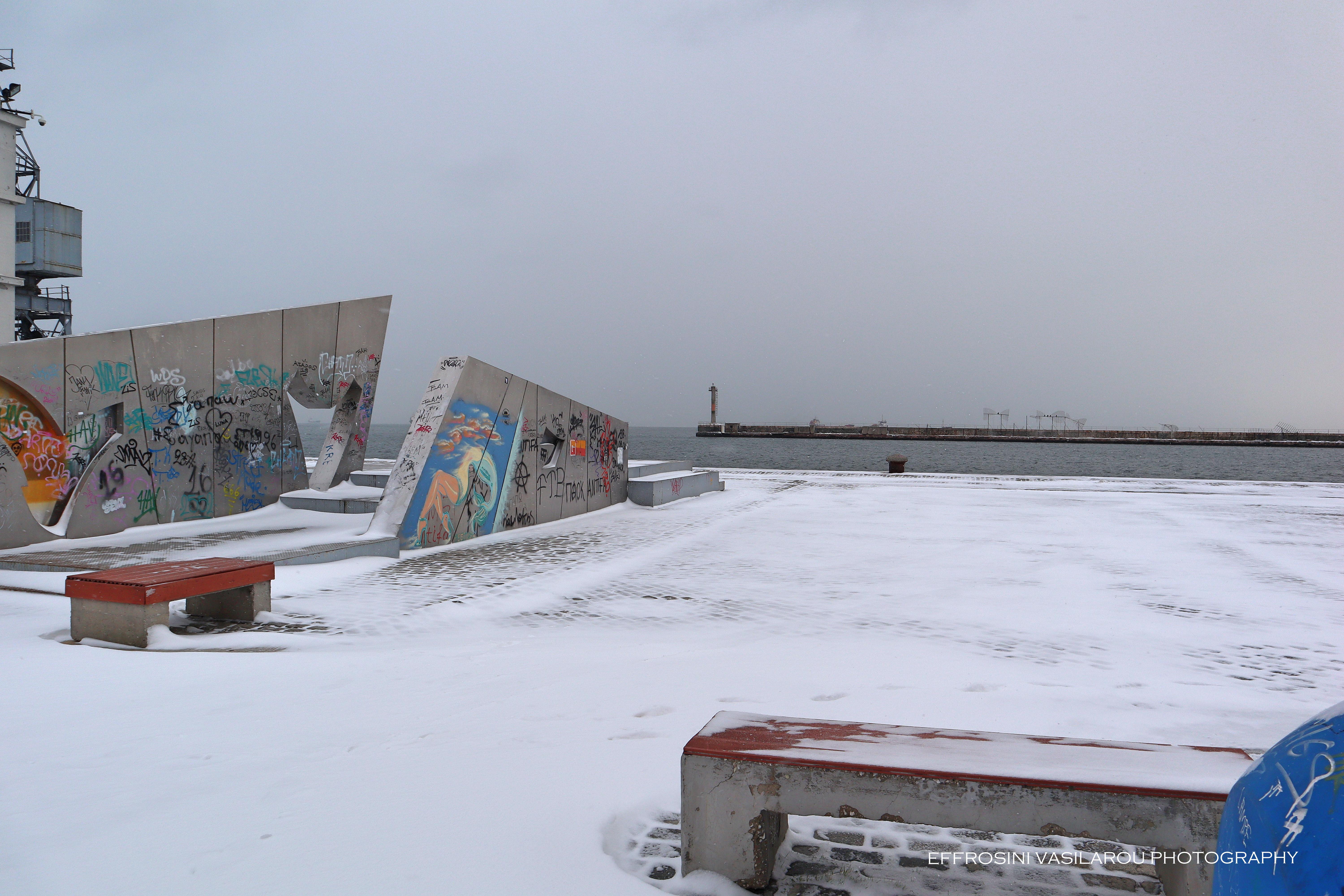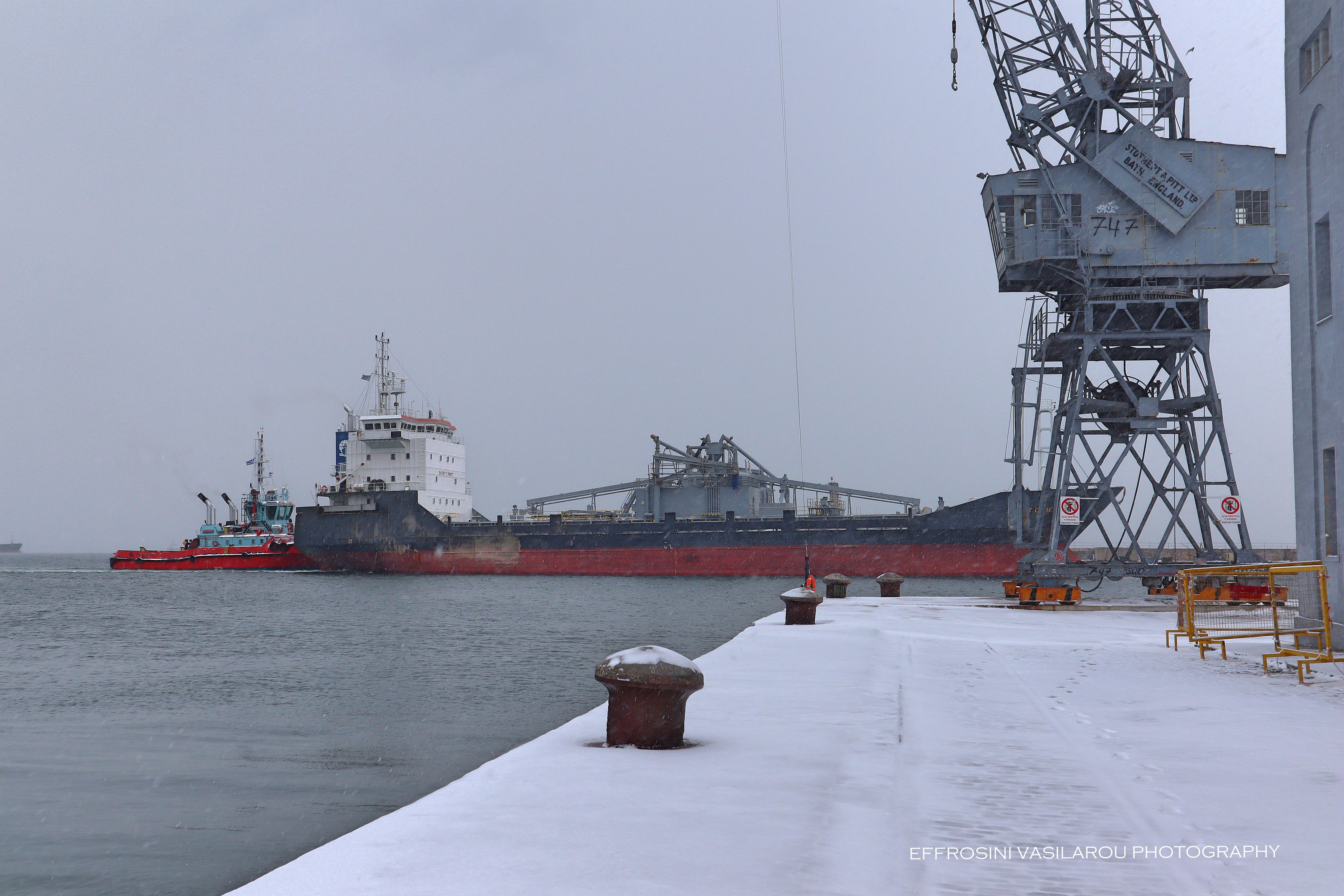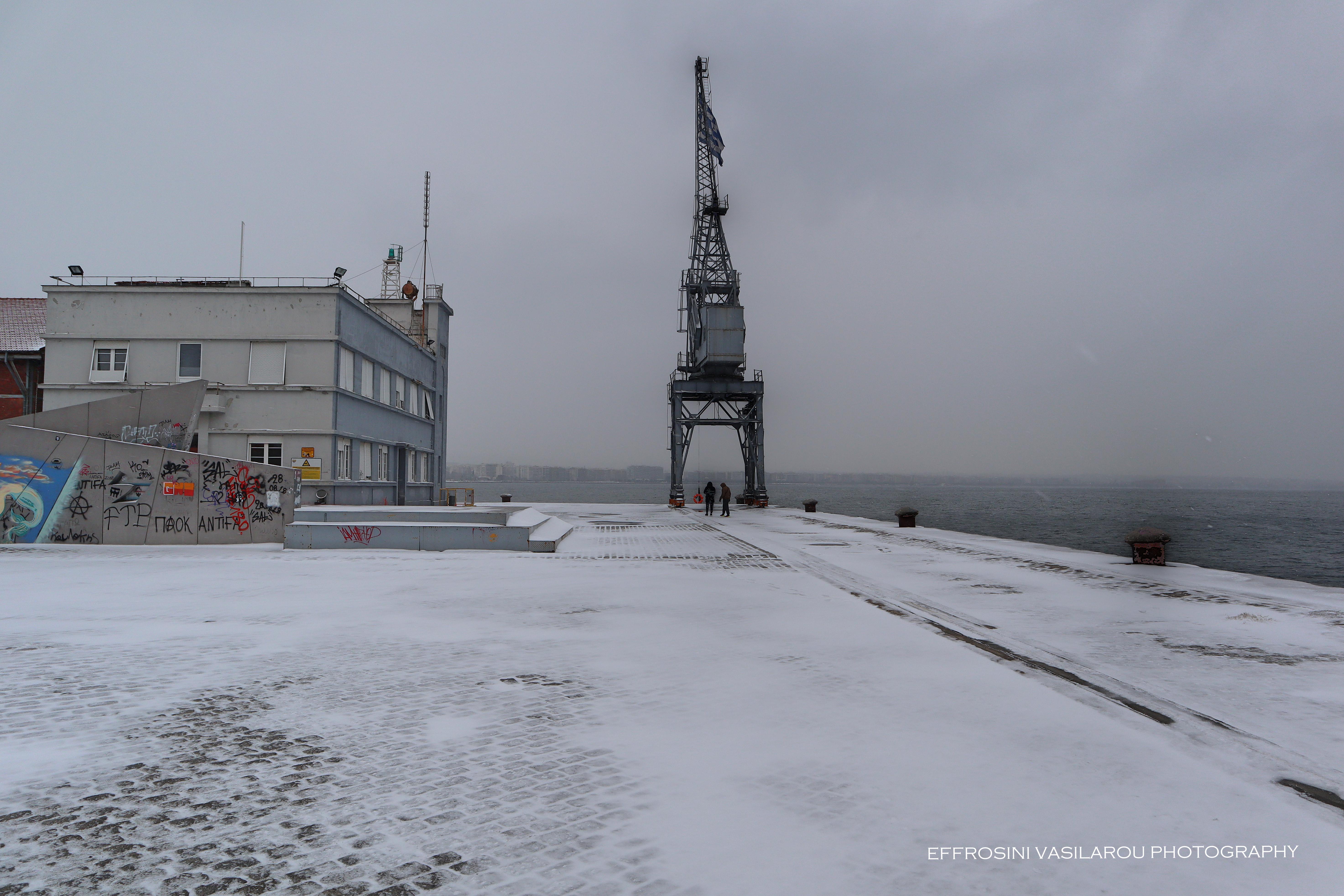 Το λιμάνι της Θεσσαλονίκης ντύθηκε επίσης στα λευκά και για όσους δεν πρόλαβαν να το επισκεφτούν, η Ευφροσύνη Βασίλαρου φρόντισε για αυτό, αποθανατίζοντάς το με τον φωτογραφικό της φακό.