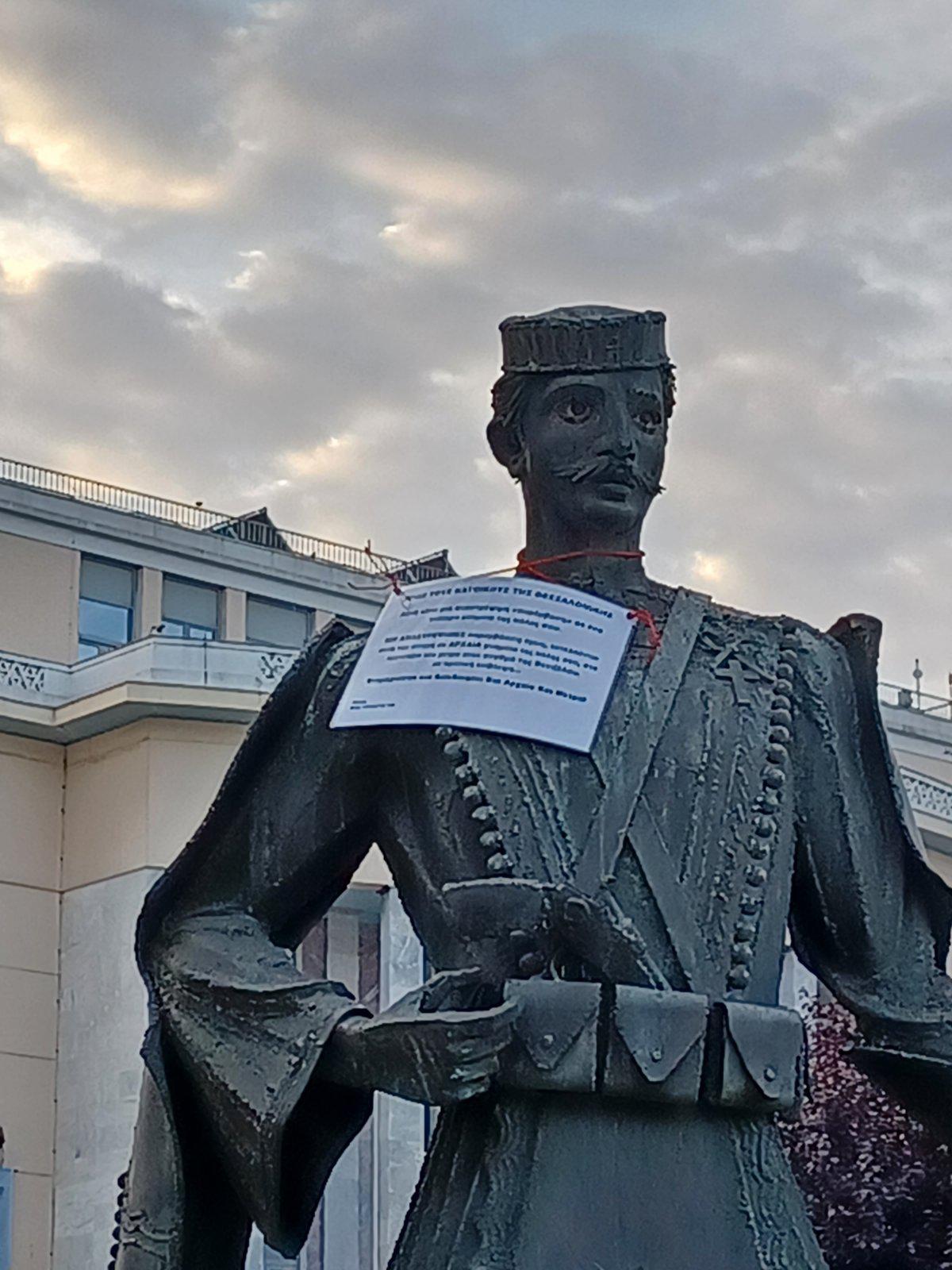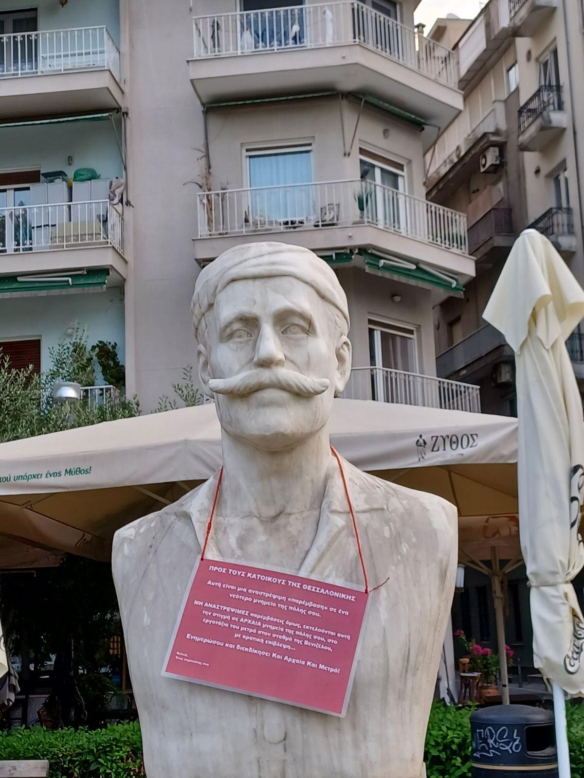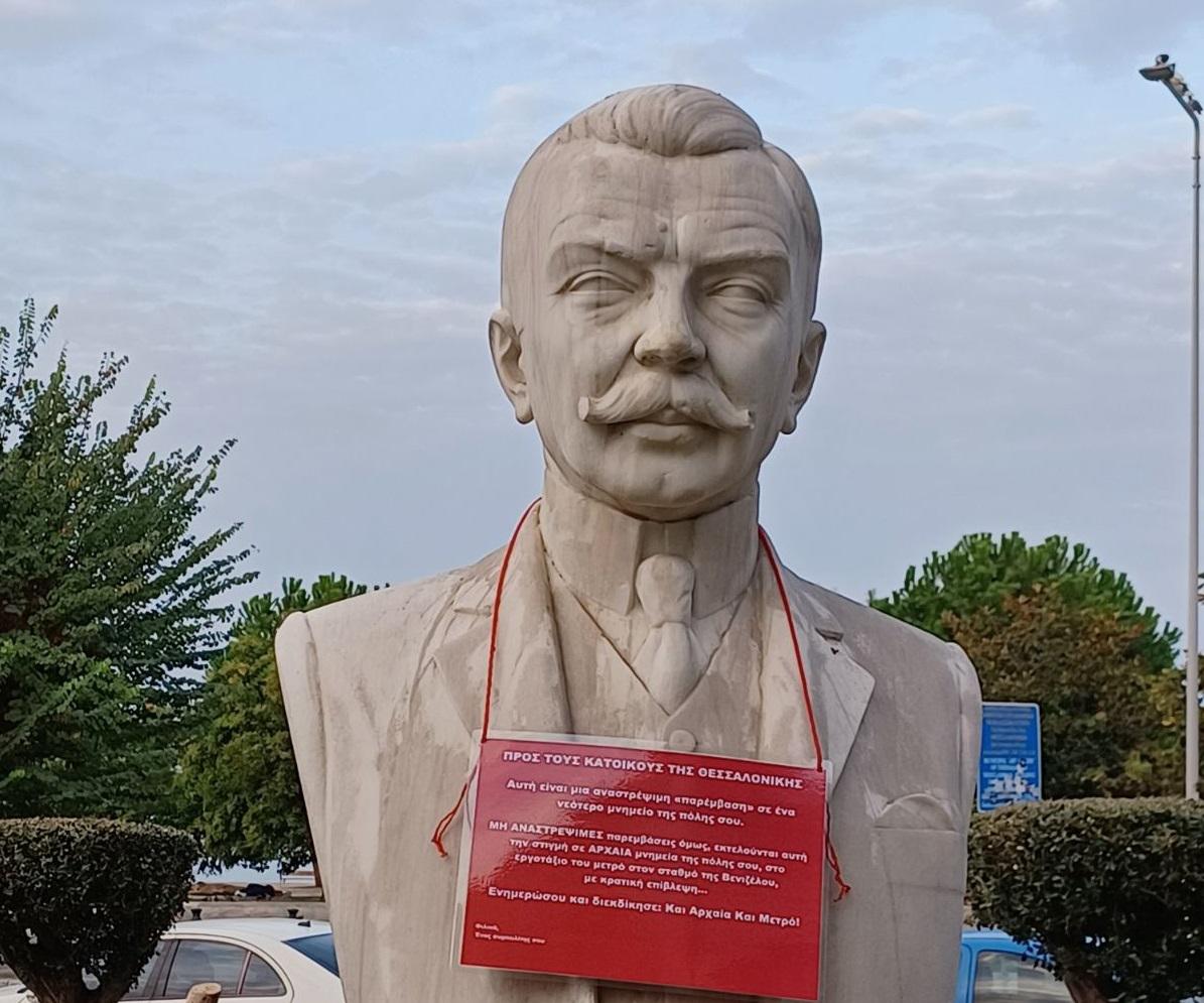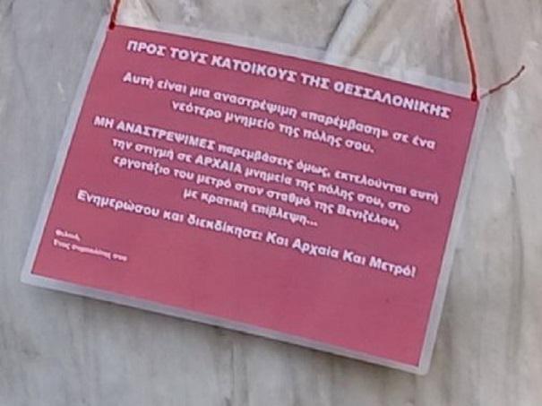 Το δικό τους μήνυμα για την απόφαση που έχει ληφθεί για την απόσπαση των αρχαίων στο σταθμό Βενιζέλου, θέλησαν να περάσουν κάτοικοι της Θεσσαλονίκης με μια «αναστρέψιμη παρέμβαση» όπως την χαρακτηρίζουν σε νεότερα μνημεία της πόλης.