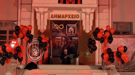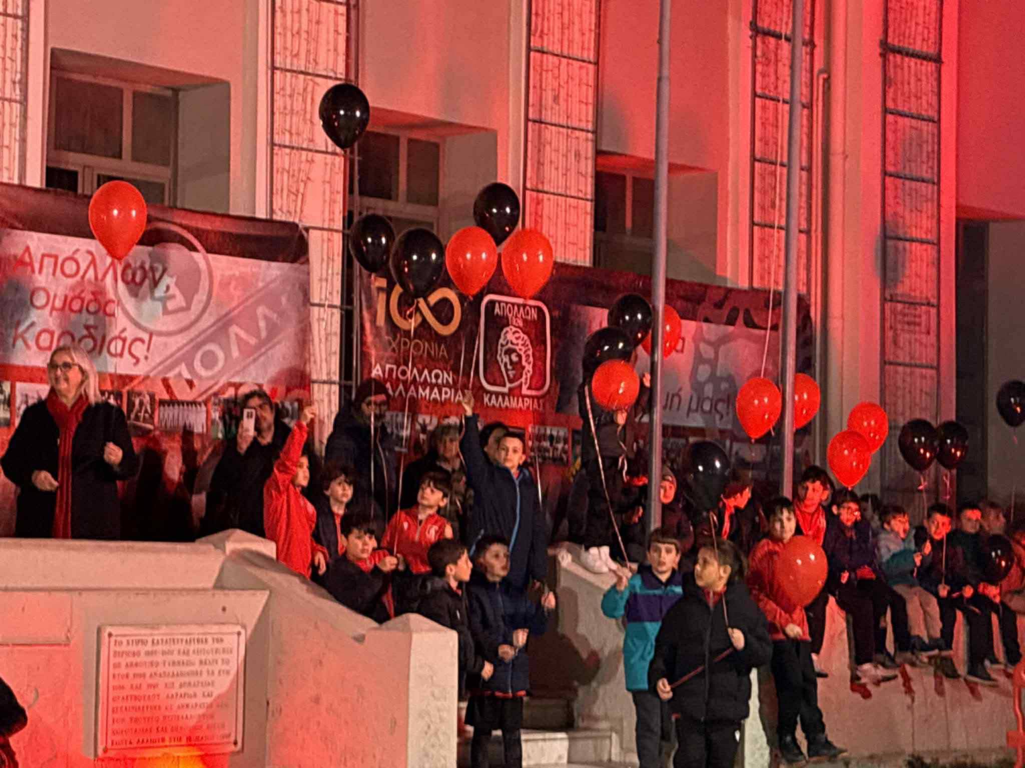 Απόψε το Δημαρχείο Καλαμαριάς βάφτηκε κόκκινο τιμώντας τα 100 χρόνια ιστορίας του ΜΓΣΚ «Απόλλων».