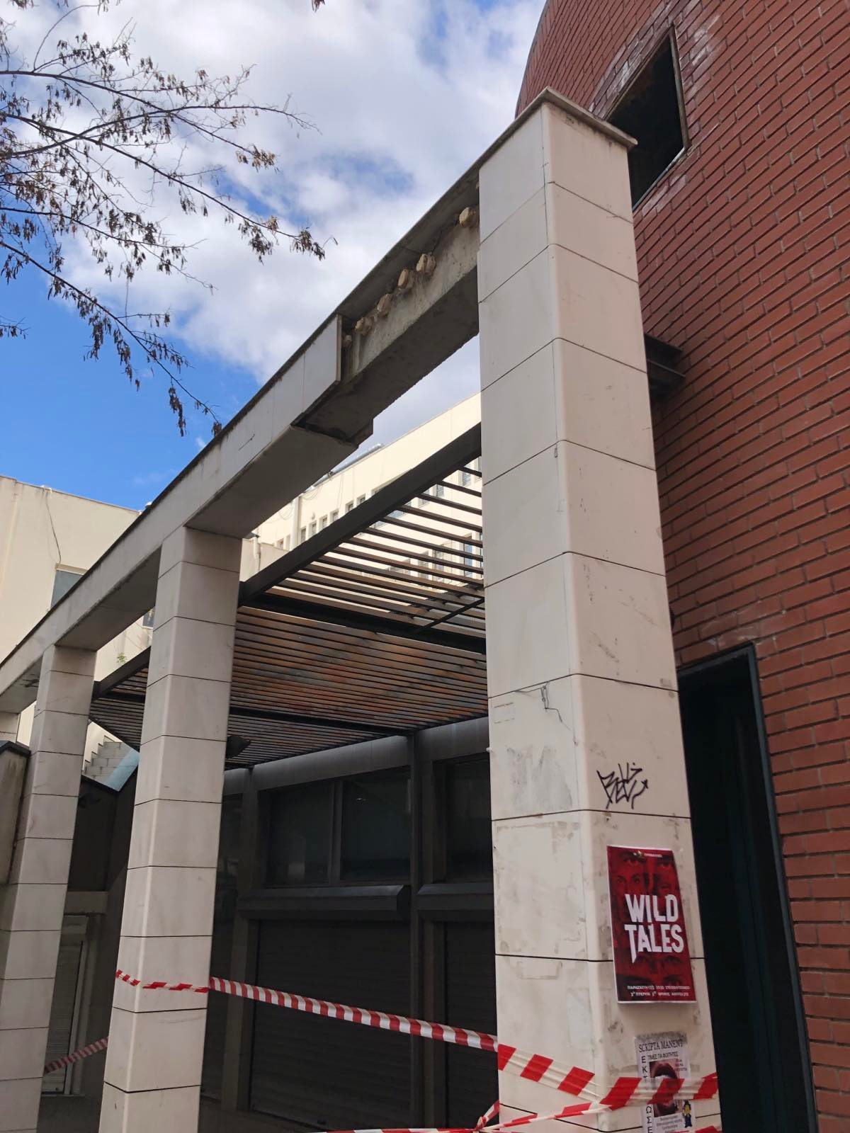 Η κακοτεχνία της κατασκευής και η διάβρωση λόγω των βροχοπτώσεων αποδείχτηκαν, όπως φαίνεται, μοιραία για την αποκόλληση των μαρμάρινων τμημάτων και την πτώση τους στο έδαφος, σημειώνουν όσοι γνωρίζουν το κτίριο και το «ζουν» καθημερινά.