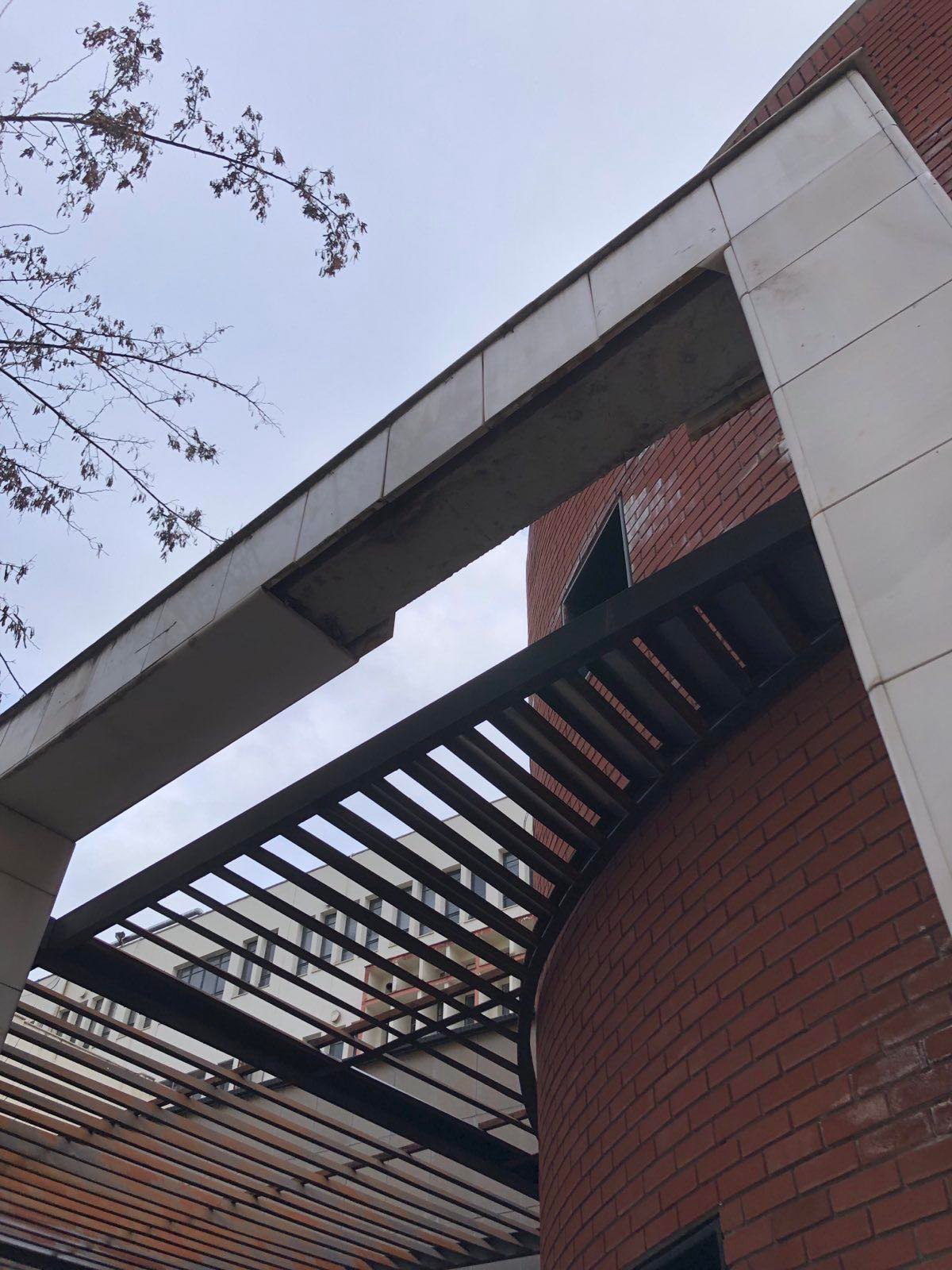Πρόκειται για ένα σημείο στο οποίο οδηγεί προς την βιβλιοθήκη του τμήματος, ενώ τα κομμάτια που βρέθηκαν στο έδαφος, έπεσαν από ένα διακοσμητικό μέρος με μάρμαρα.