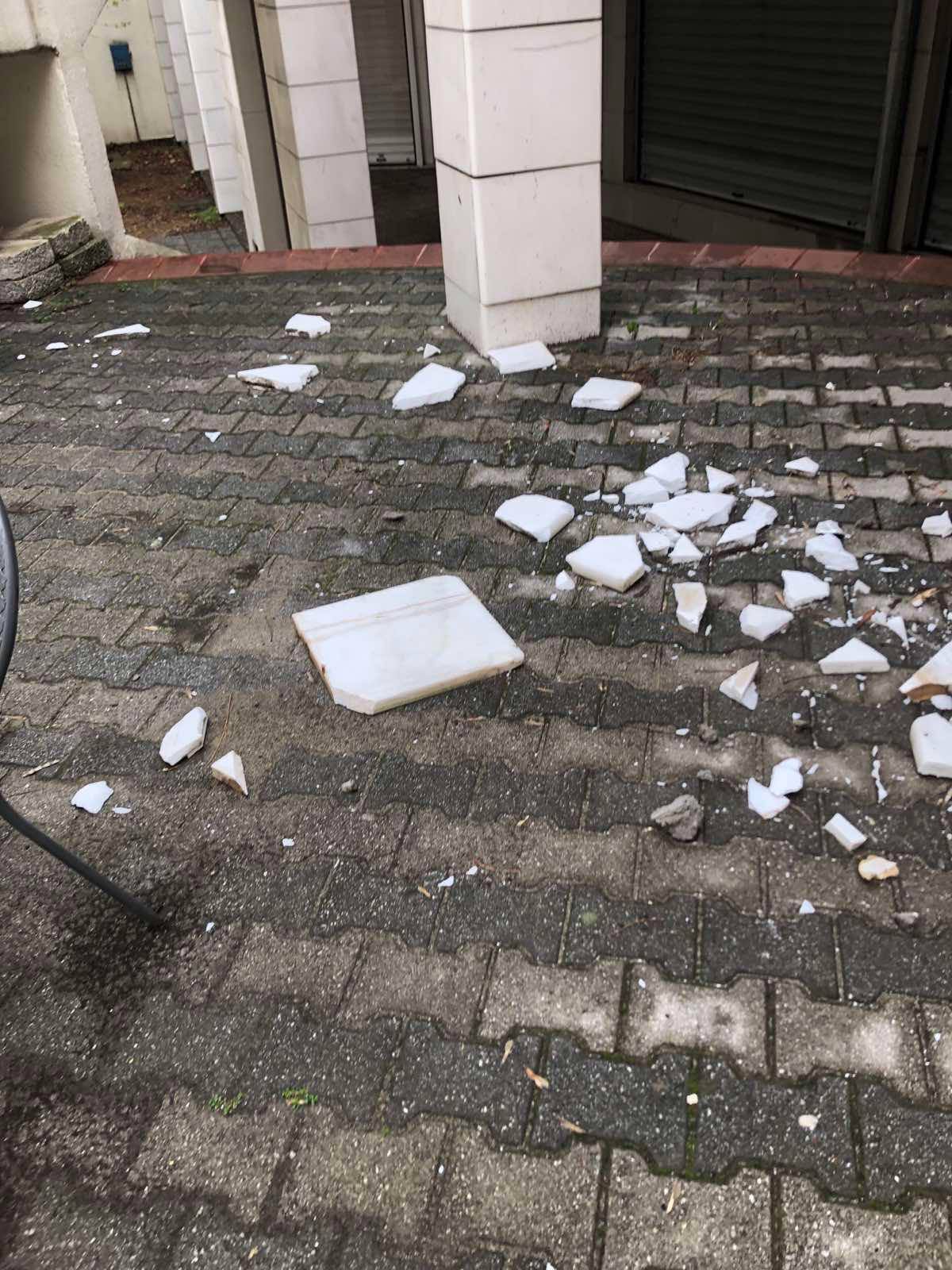 Μάρμαρα από τμήμα του υπόστεγου στο κυλικείο της σχολής βρέθηκαν γκρεμισμένα στο έδαφος, ενώ σε αντίστοιχη κατάσταση, έτοιμα δηλαδή να καταρρεύσουν βρίσκονται και άλλα τμήματα του υπόστεγου.
