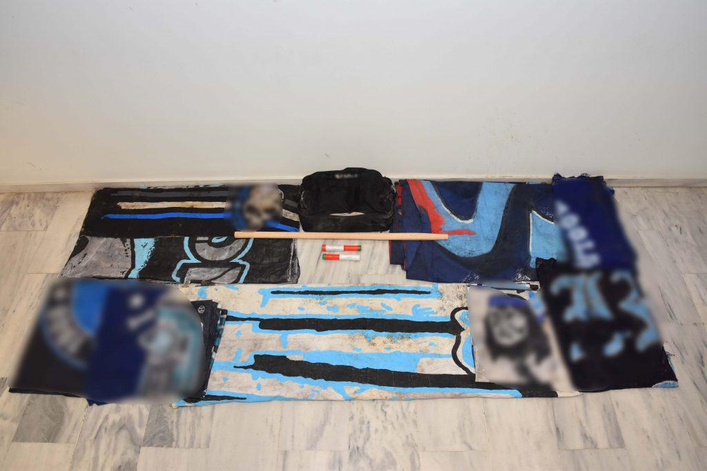 Από οίκημα στην περιοχή της Τούμπας: (2) βεγγαλικά, (1) ξύλινο αντικείμενο (στειλιάρι) και Πανό έτερης ομάδας