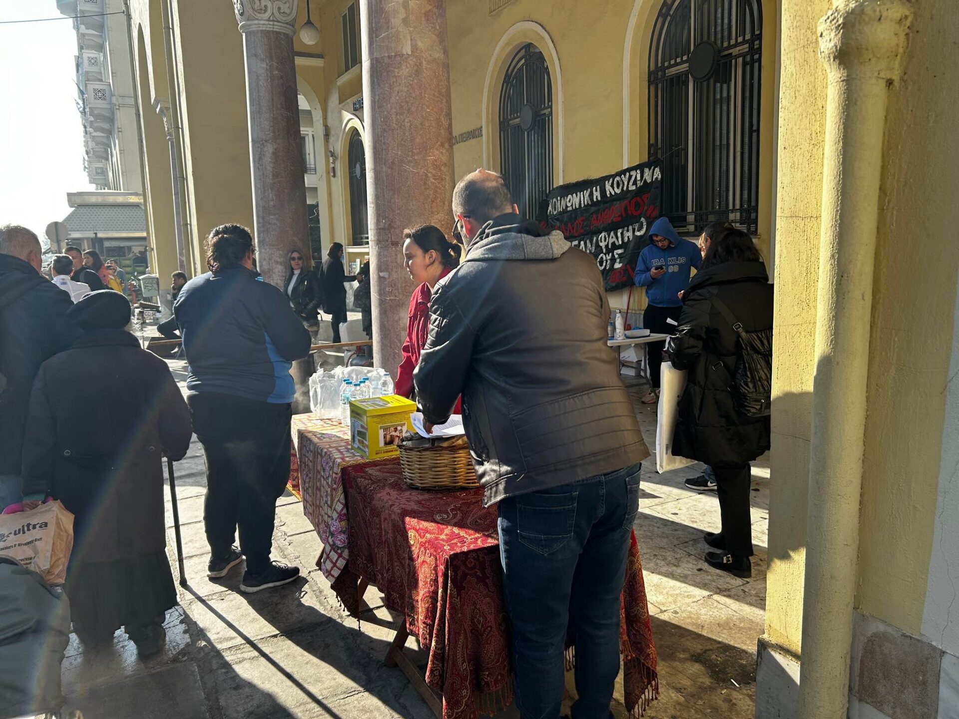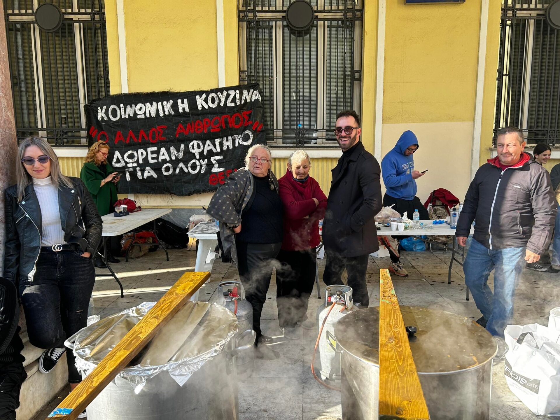 Ο σεφ της Προεδρίας της Δημοκρατίας, Βασίλης Μπέκας και οι μάγειροι της Κοινωνικής Κουζίνας “Ο Αλλος Ανθρωπος” Κωνσταντίνος Πολυχρονόπουλος και του παραδοσιακού καφενείου, “Στου Μήτσου”, Δημήτρης Παντζαρτζίδη μαγείρεψαν νωρίτερα και προσέφεραν φαγητό σε άπορους στην πλατεία Αριστοτέλους.