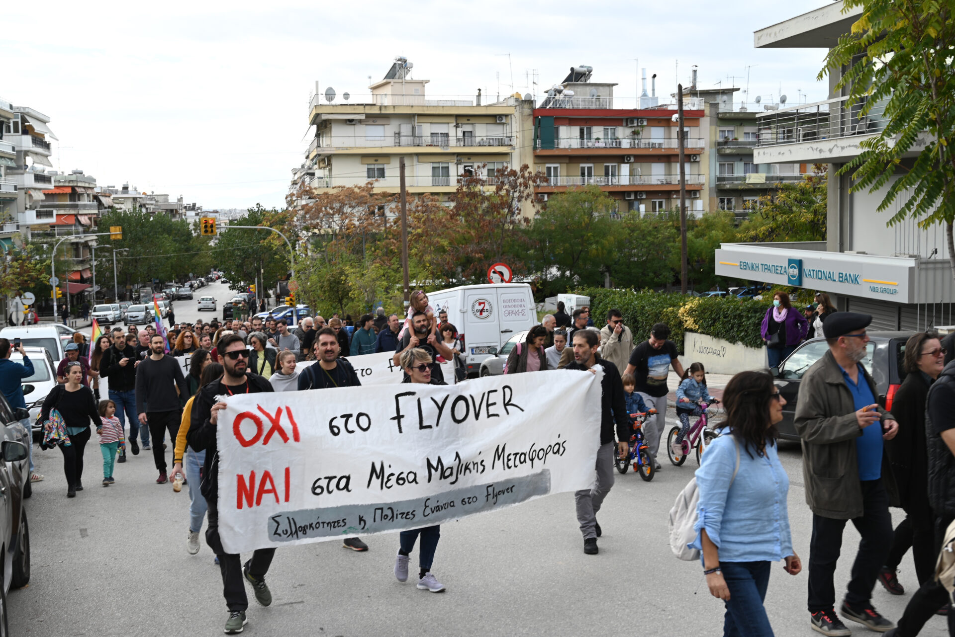 Πορεία διαμαρτυρίας με αίτημα το «πάγωμα» της κατασκευής του flyover (υπερυψωμένης ταχείας λεωφόρου) και τη διάθεση κεφαλαίων για την ουσιαστική ενίσχυση και αναβάθμιση των δημόσιων αστικών συγκοινωνιών στη Θεσσαλονίκη πραγματοποίησαν σήμερα, στην Άνω Τούμπα, οι εκπρόσωποι 30 συλλογικοτήτων της Θεσσαλονίκης και κάτοικοι της περιοχής.