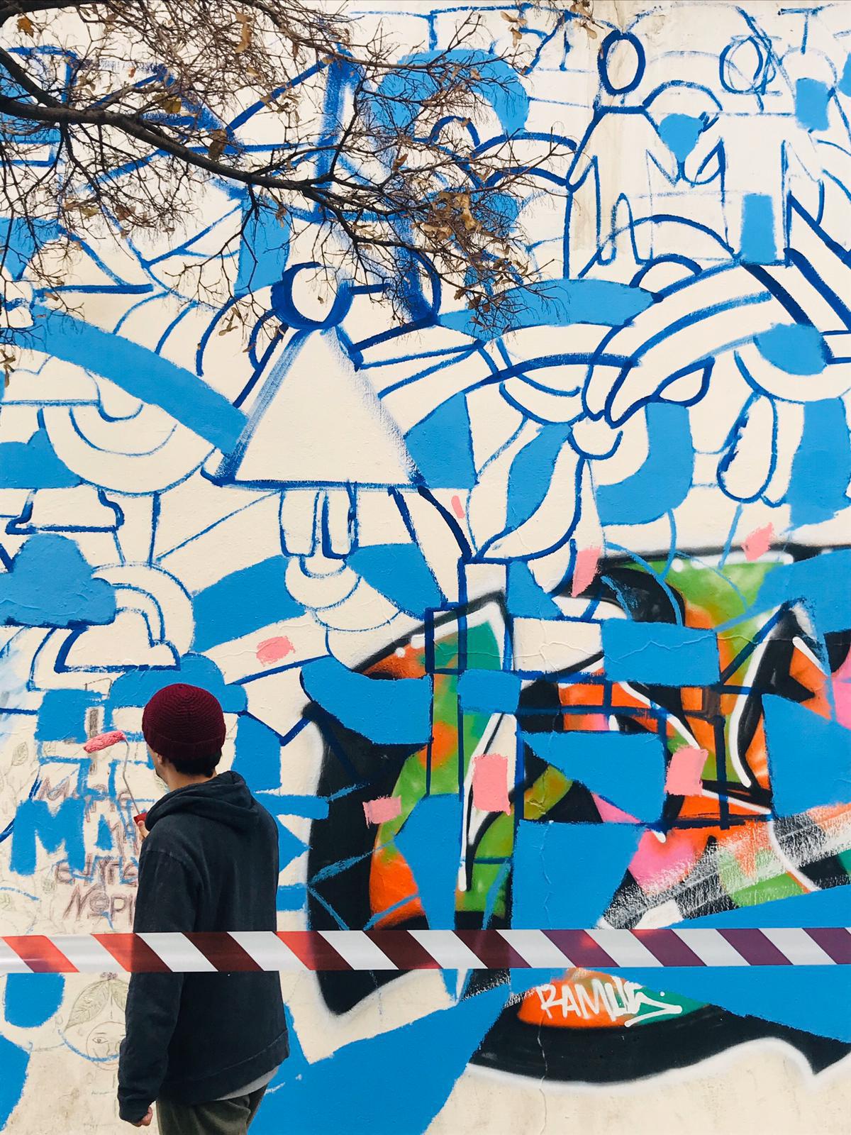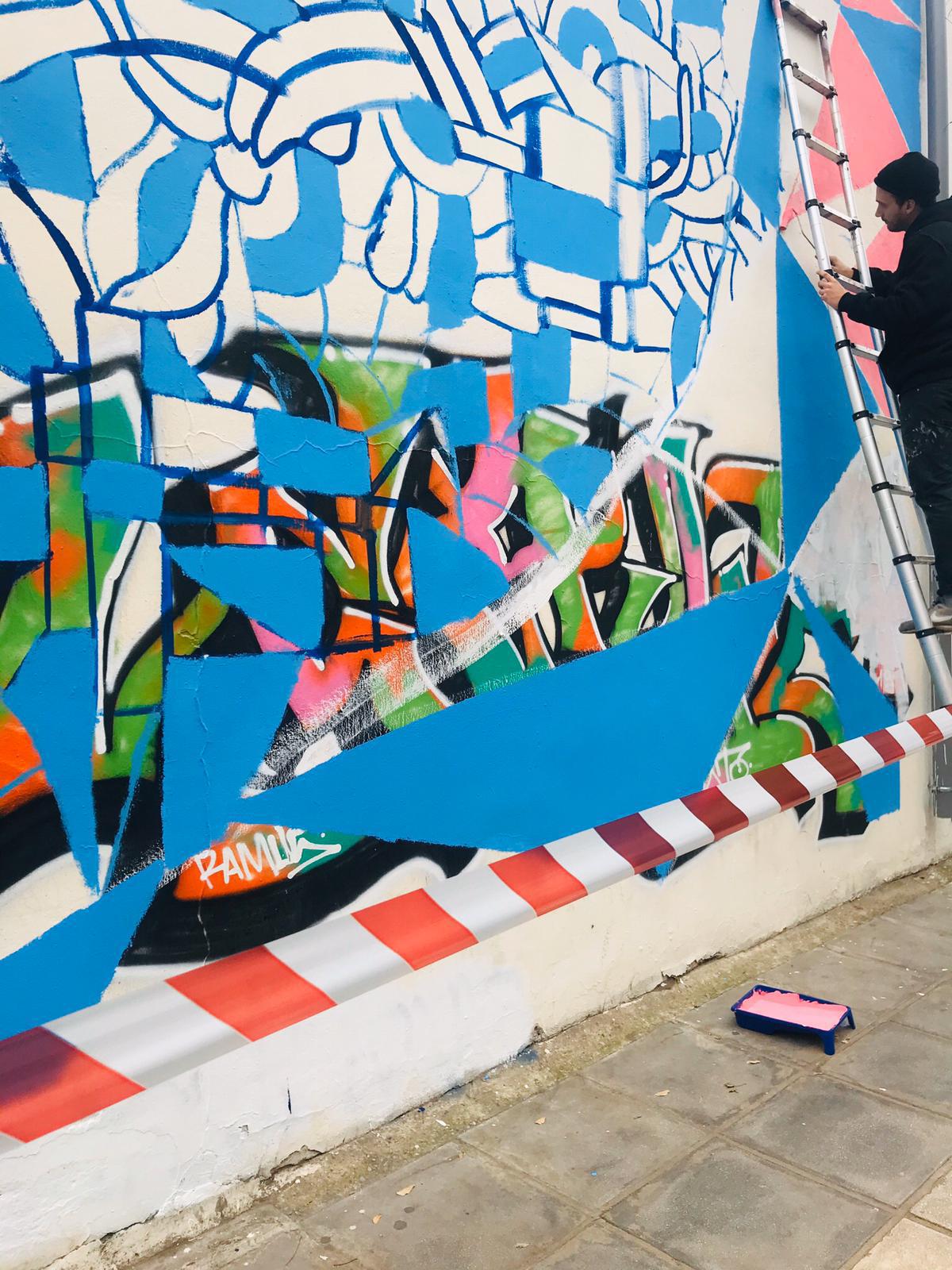 Τοιχογραφία σε συνεργασία Σωτήρη Φωκέα (@Soteur) και καλλιτεχνών προσφύγων από την ομάδα “Collectif Mazi”.