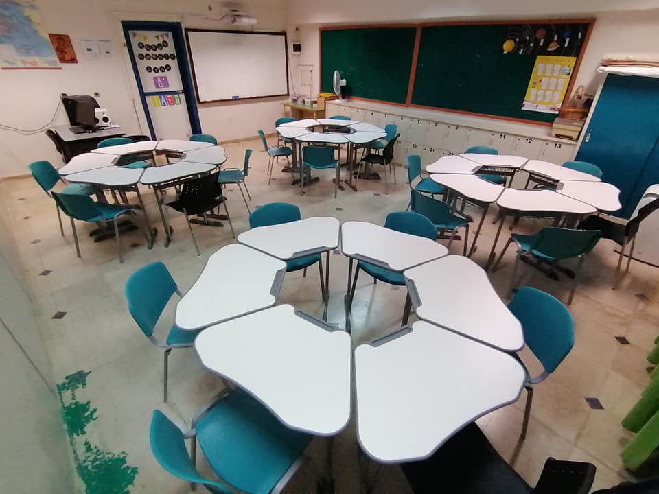 Ατομικά θρανία, με εργονομική σχεδίαση ώστε το κάθε παιδί να έχει αρκετό ατομικό χώρο, αλλά και με δυνατότητες ώστε να γίνουν δεκάδες συνδυασμοί για συνεργασίες, ώστε να εξυπηρετηθεί ακόμα και η πιο απαιτητική παιδαγωγική ανάγκη