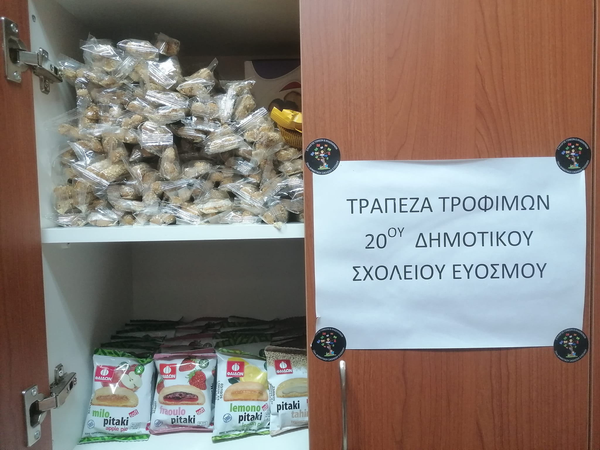 Στο σχολείο για δεύτερη χρονιά λειτουργεί η τράπεζα τροφίμων. «Προμηθεύουμε το σχολείο μας με μεγάλη ποσότητα και ποικιλία συσκευασμένων τροφίμων, ώστε αν σε κάποιο παιδί του πέσει το κολατσιό ή ξεχάσει να πάρει ή για οποιονδήποτε άλλο λόγο βρεθεί στο σχολείο μας χωρίς φαγητό, να υπάρχει έτοιμη και νόστιμη λύση!» αναφέρει χαρακτηριστικά ο Σύλλογος.