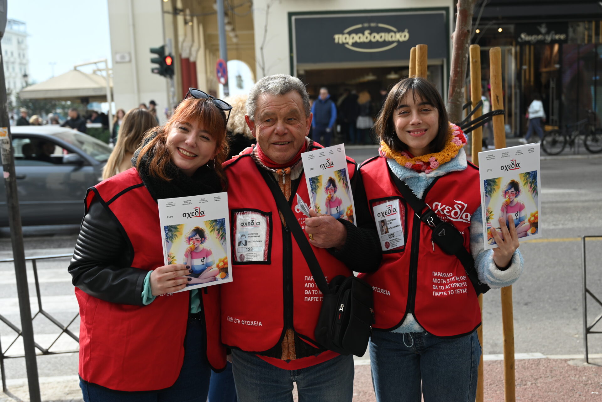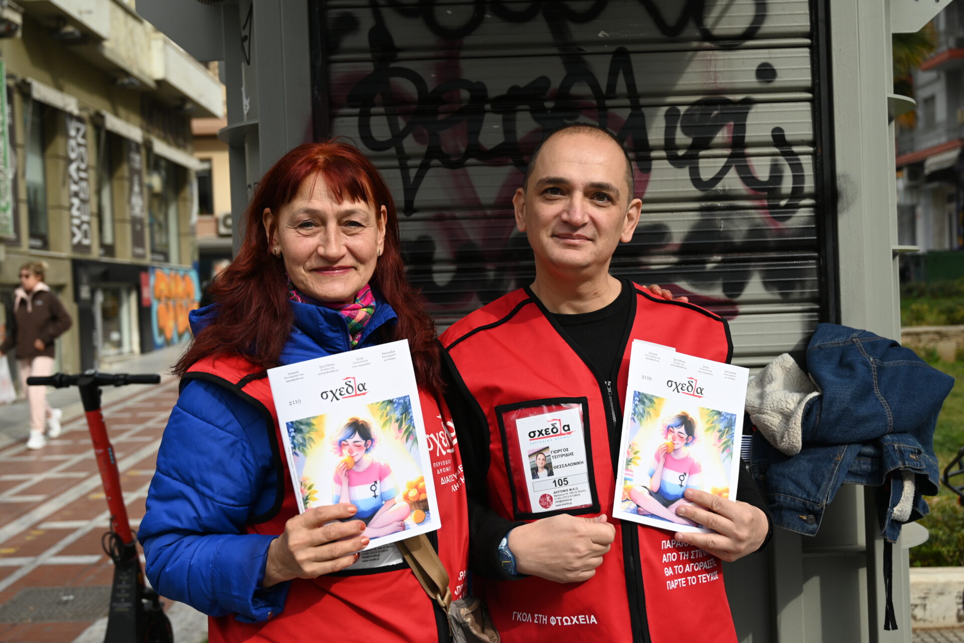 Τα κόκκινα γιλέκα του περιοδικού “Σχεδία“, βγήκαν σήμερα, Σάββατο 10 Φεβρουαρίου 2024, στους δρόμους της Θεσσαλονίκης, για να σταθούν σε γωνιές της πόλης και να δώσουν φωνή σε συνανθρώπους, που την έχουν στερηθεί.