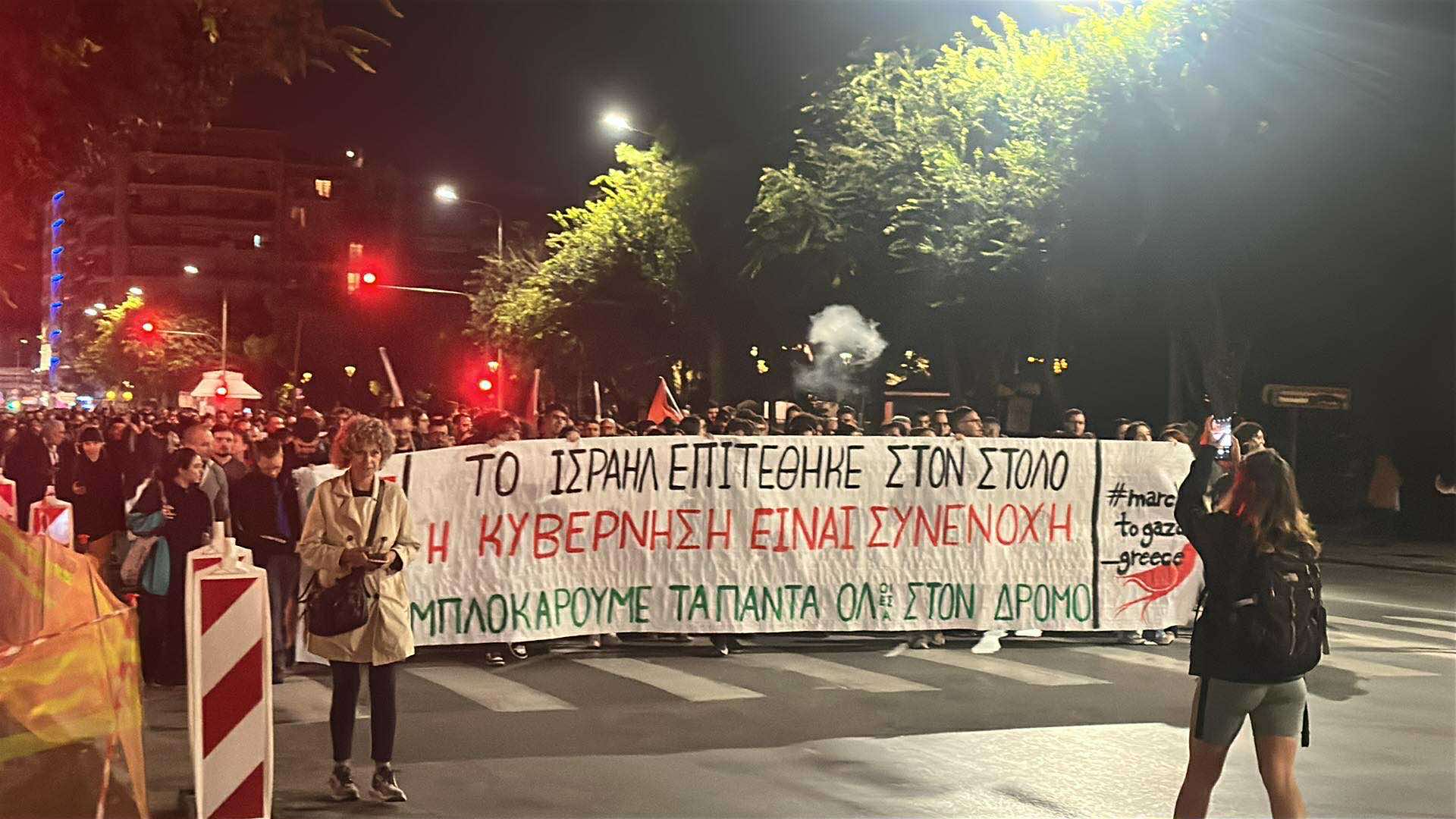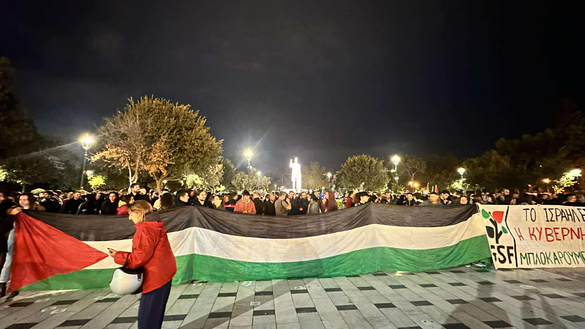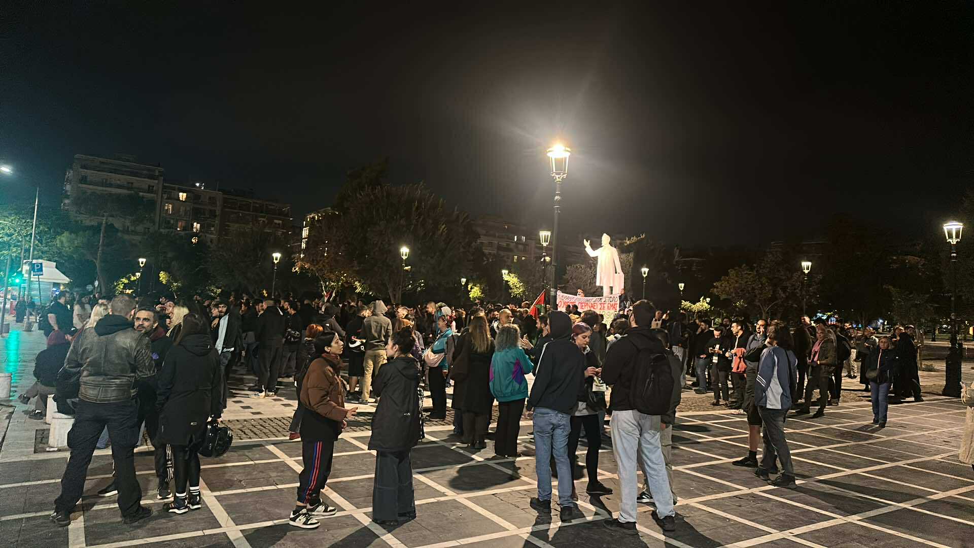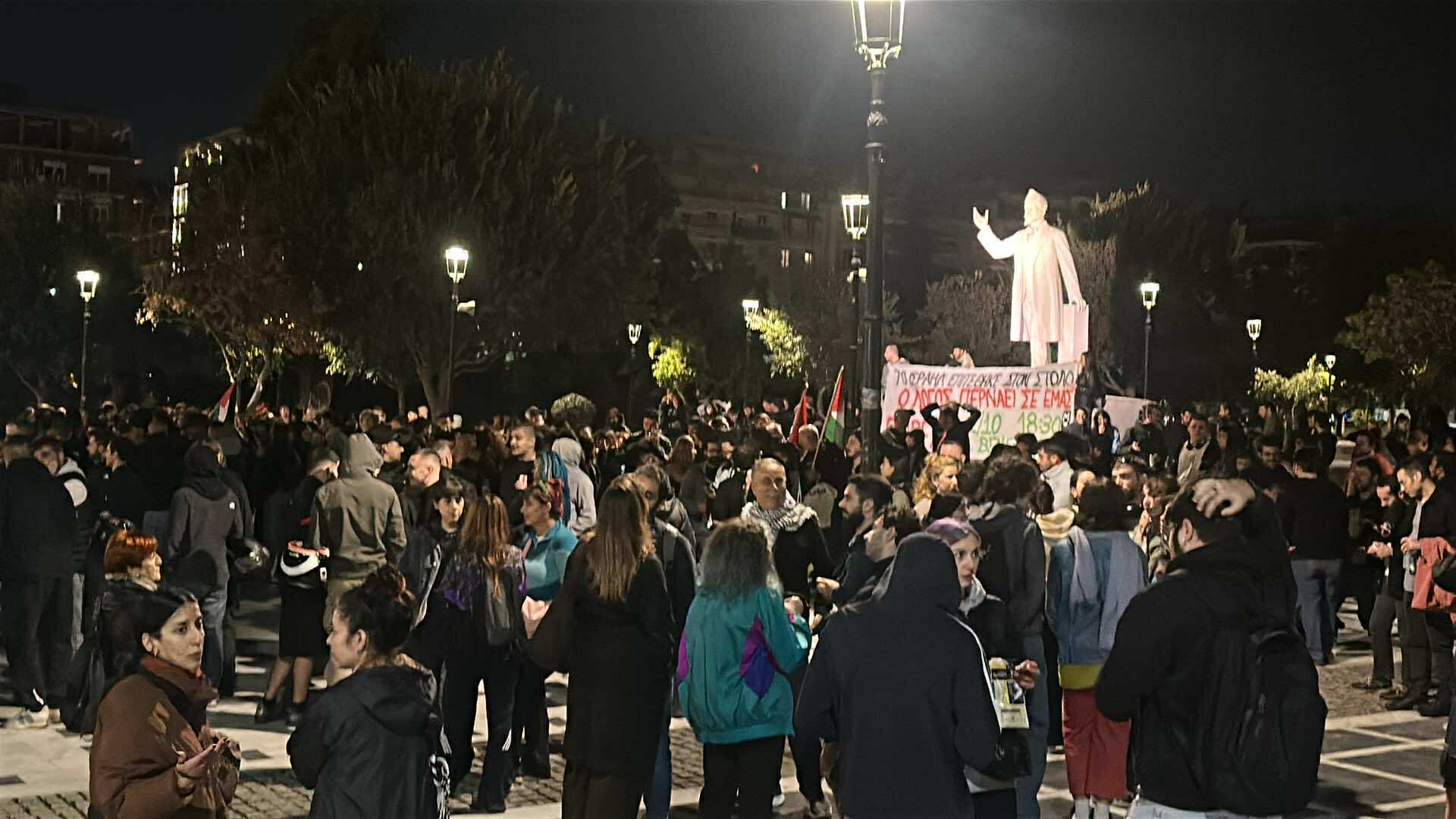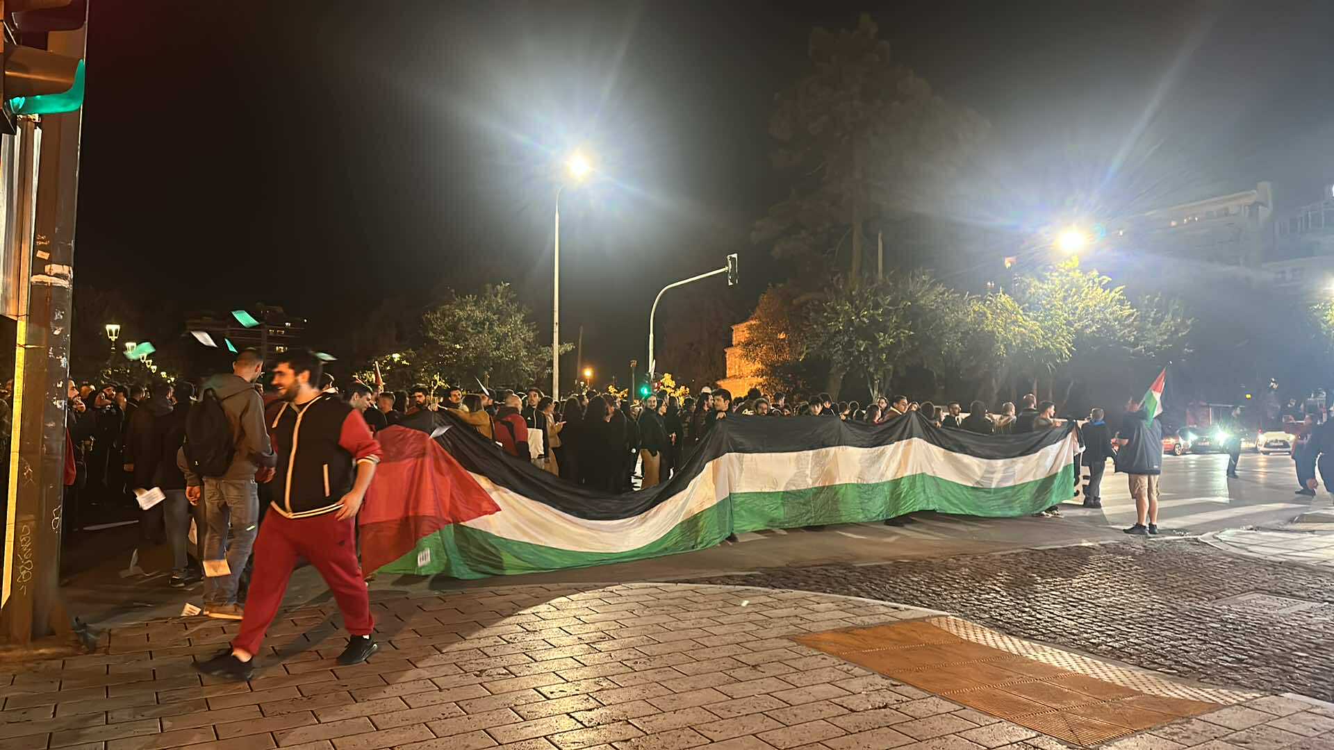 Συγκέντρωση και πορεία πραγματοποιείται αυτή τη στιγμή, μετά τις 23:00 το βράδυ της Τετάρτης 1 Οκτωβρίου, στη Θεσσαλονίκη για το ρεσάλτο του Ισραήλ στα σκάφη του Global Sumud Flotilla που κατευθύνονται στη Γάζα.