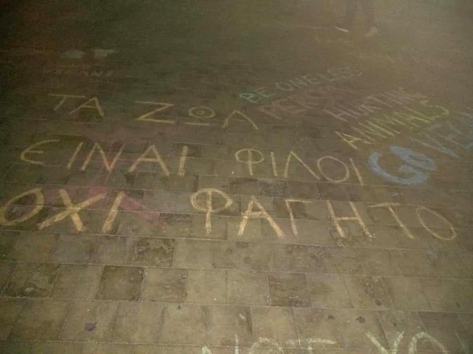 Η ομάδα The Save Movement, ένα παγκόσμιο ακτιβιστικό κίνημα που τίθεται ενάντια σε κάθε μορφή εκμετάλλευσης των μη ανθρώπινων όντων, διοργάνωσε το Vegan Chalking Night Thessaloniki, μια δράση ζωγραφικής με κιμωλίες μέσω της οποίας αποτυπώθηκαν μηνύματα ειρήνης, αγάπης και συμπόνοιας για όλα τα μη ανθρώπινα όντα.