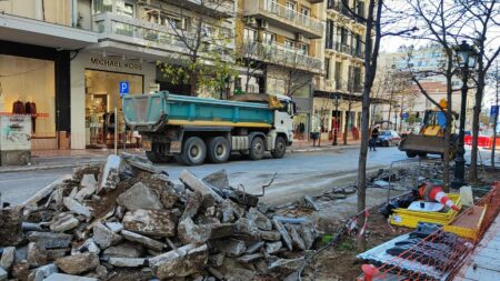 ΕΙΚΟΝΕΣ – Θεσσαλονίκη: «Έπιασαν δουλειά» οι μπουλντόζες για την πεζοδρόμηση στην Αγίας Σοφίας