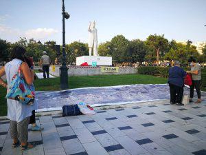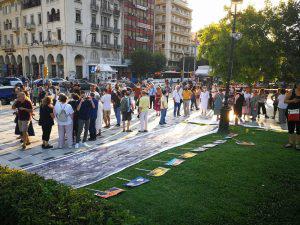 Με μια συγκέντρωση στο άγαλμα του Βενιζέλου, μεγάλα πανό που υποδεικνύουν το έγκλημα της Βενιζέλου, και στη συνέχεια σχηματισμό ανθρώπινων αλυσίδων που θα περικυκλώσουν το σκάμμα και από τις δυο του πλευρές, μια αλυσίδα αμετακίνητων ανθρώπων που συμβολίζουν την ανάγκη τα αρχαία να παραμείνουν αμετακίνητα και παλμός μεγάλος για ένα σκοπό που όσο το πείσμα της κυβέρνησης φουντώνει τόσο δυναμώνει και η φωνή της πόλης.