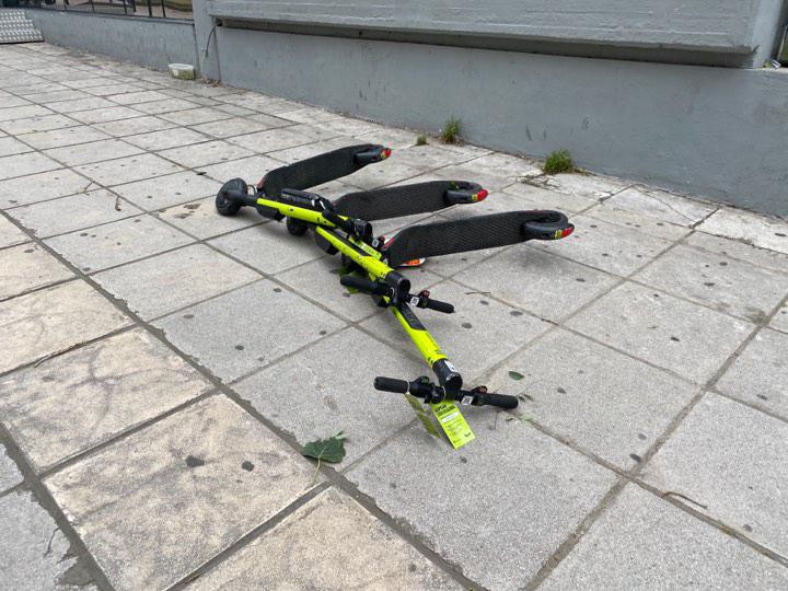 Πεσμένοι κάδοι, κιγκλιδώματα και πατίνια στους δρόμους της πόλης.