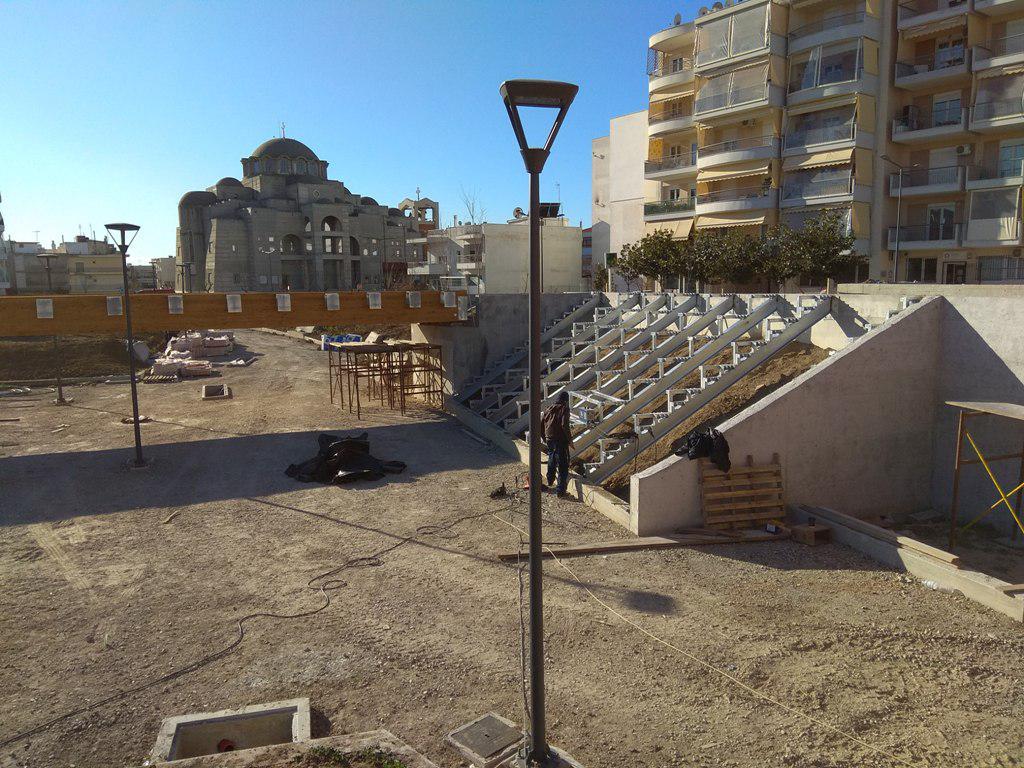 • το υπόγειο δίκτυο απορροής των ομβρίων υδάτων, • το σύνολο των χωματουργικών εργασιών, • όλες οι κατασκευές από σκυρόδεμα, • η επίστρωση των περιμετρικών πεζοδρομίων με κυβόλιθους, • η εγκατάσταση όλων των ιστών ηλεκτροφωτισμού χαμηλής ενεργειακής κατανάλωσης με χρήση λαμπτήρων εξοικονόμησης ενέργειας (LED), τα οποία συνέβαλαν ήδη στην αναβάθμιση της περιοχής κατά τις νυχτερινές ώρες, • η τοποθέτηση ξύλινων σκελετών των πεζογεφυρών