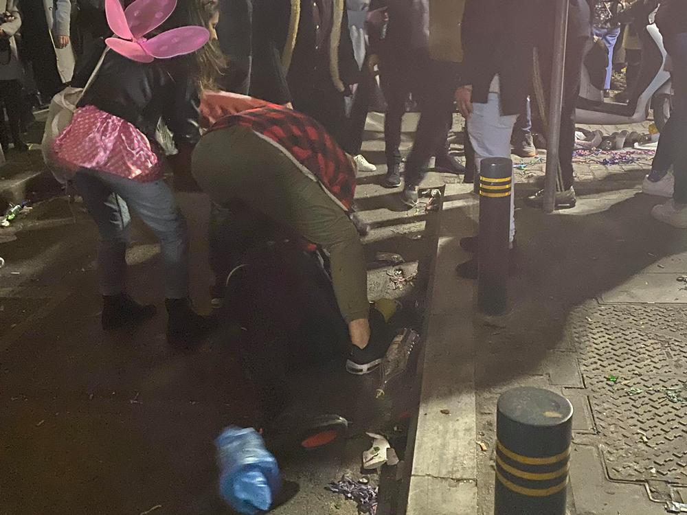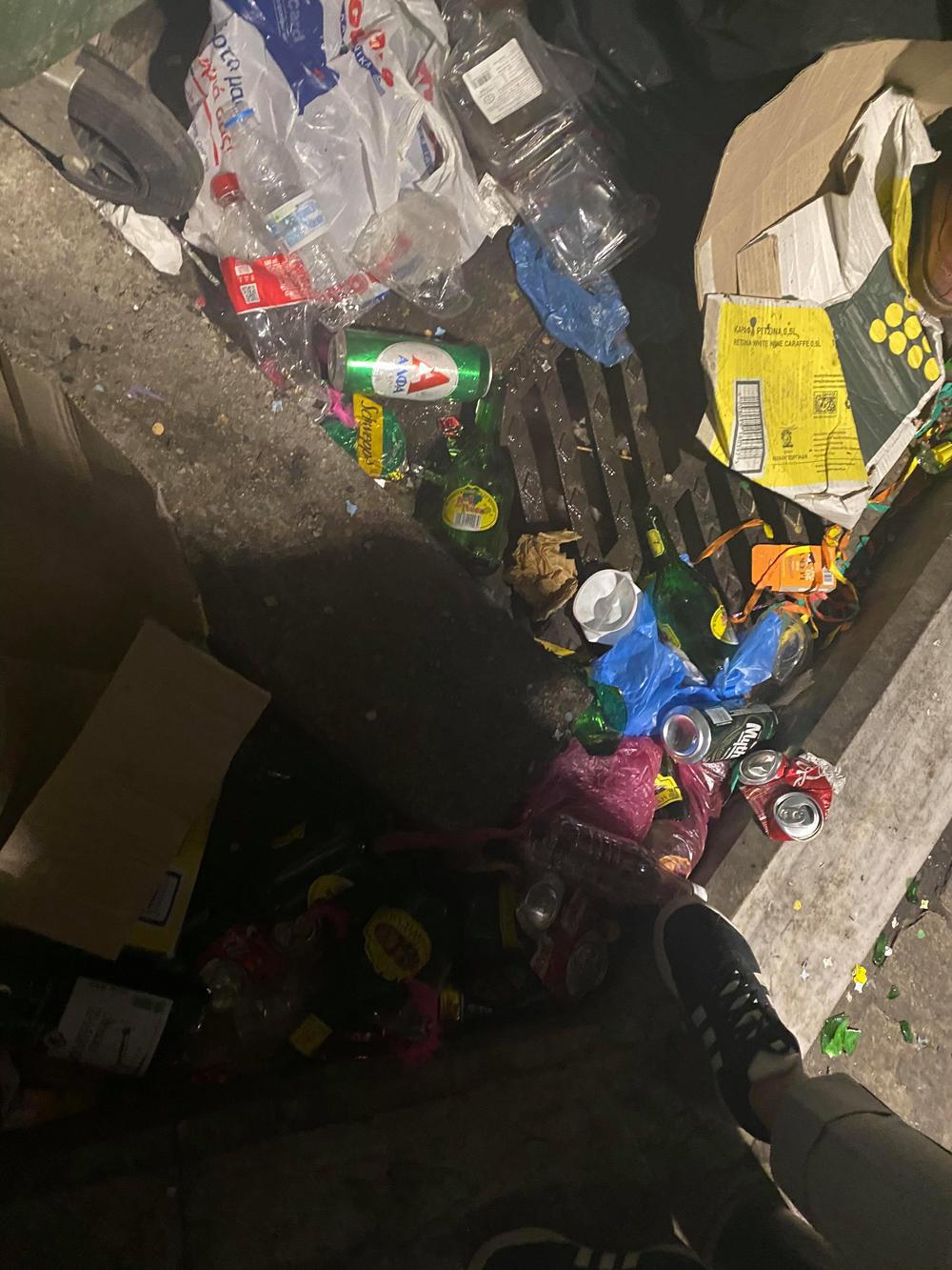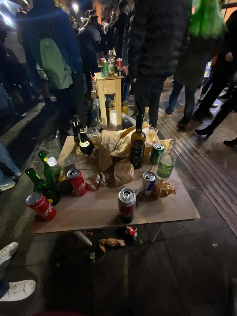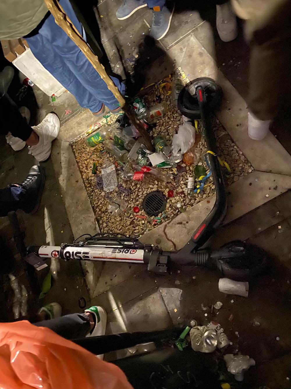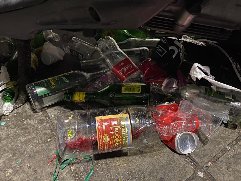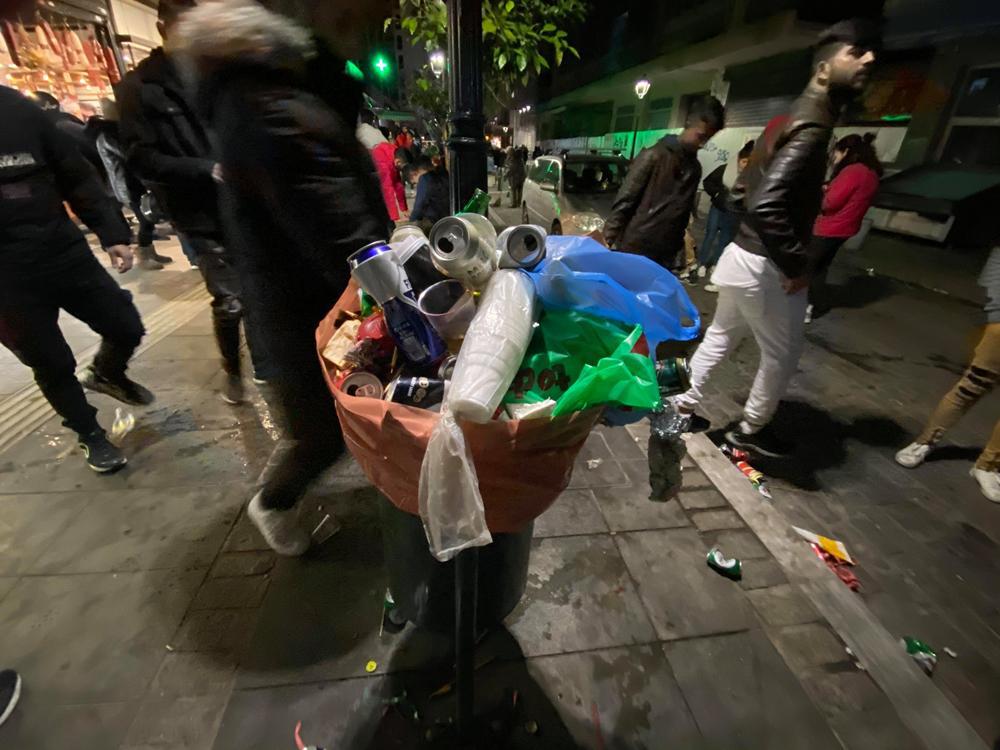 Ενώ ο χορός και το αλκόολ “κυλάνε” η εικόνα της Βασιλέως Ηρακλείου σιγά σιγά αλλάζει. Σπασμένα μπουκάλια, κονφετί, σερπαντίνες και σκουπίδια έχουν κατακλείσει τον δρόμο, πατίνια και μηχανάκια πεσμένα κάτω και ακόμα ο κόσμος παραμένει εκεί και απολαμβάνει την Τσικνοπέμπτη του.