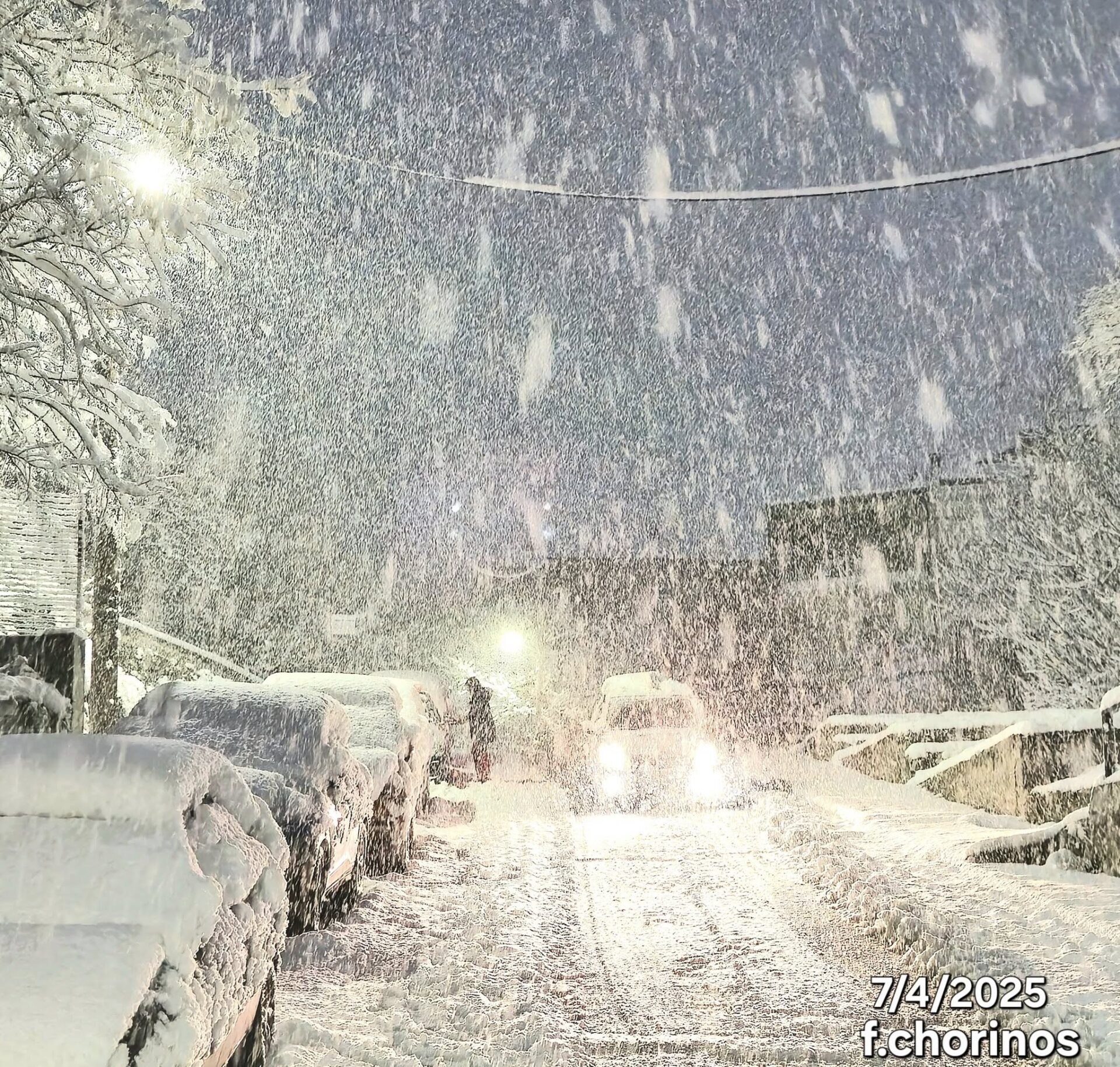 Το ύψος του χιονιού έφτασε στους 10 πόντους, με το θερμόμετρο να δείχνει τους -5 βαθμούς κελσίου.