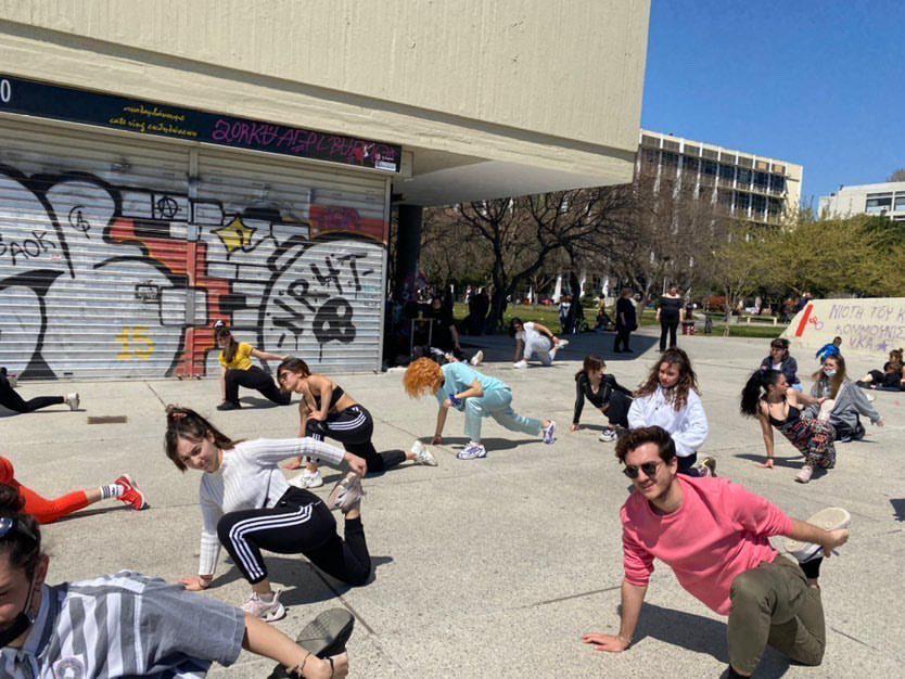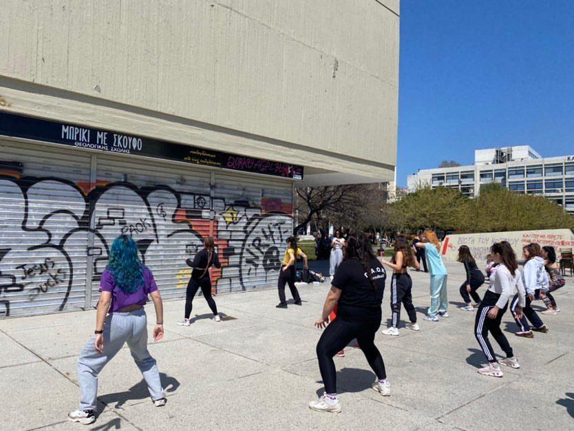 Μαθήματα χορού πραγματοποιούνται αυτήν την ώρα στο ΑΠΘ, με αρκετούς νέους και νέες να συμμετέχουν σε αυτά.