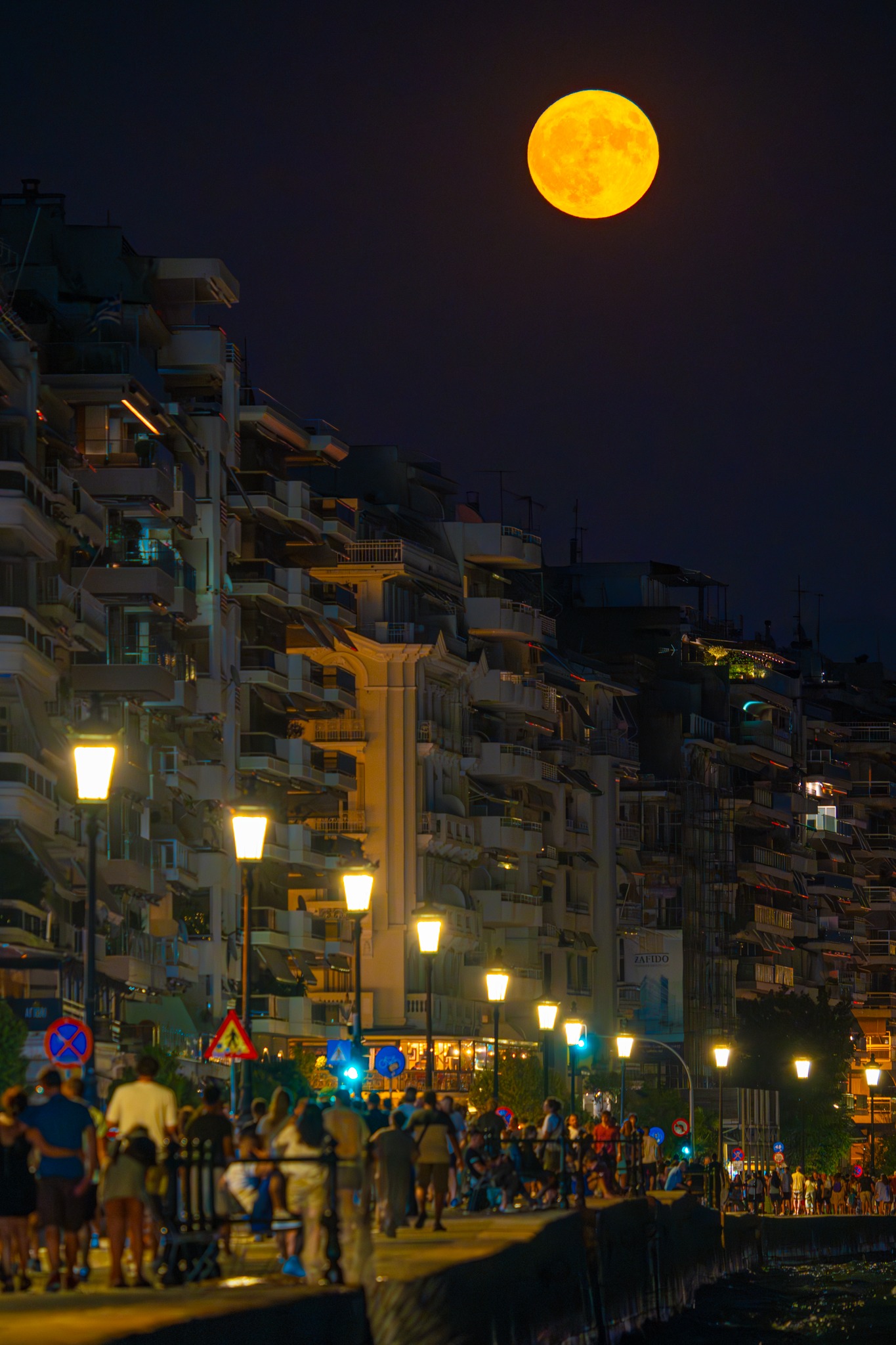 Μαγικές οι εικόνες που κατέγραψε ο Γιώργος Κόγιας από την παραλία της πόλης με τους Θεσσαλονικείς να κάνουν τη βόλτα τους… παρέα με την πανσέληνο.