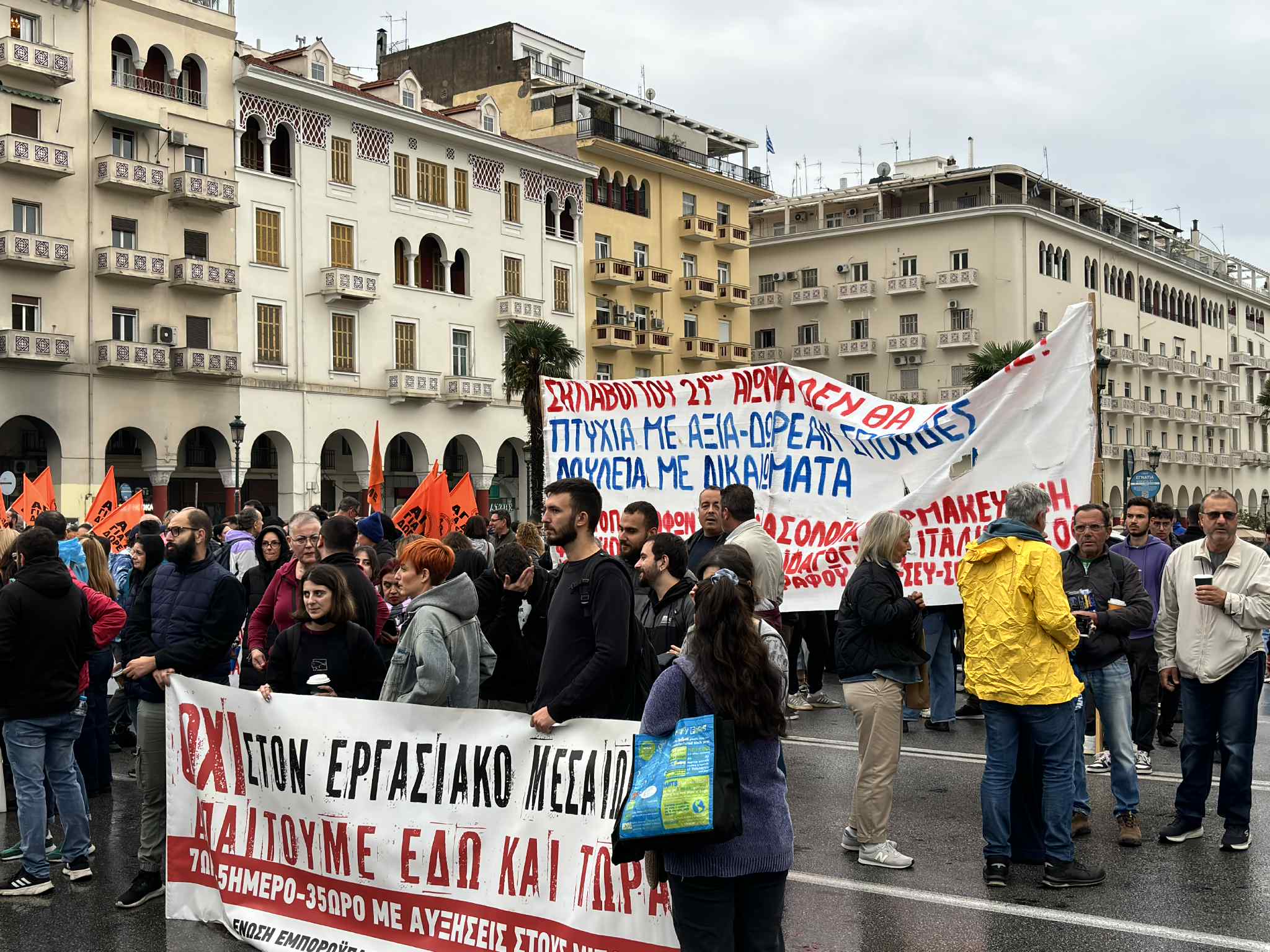 Εικόνες-Βίντεο: «Όχι στην 13ωρη δουλειά, σκλαβιά» – Η Θεσσαλονίκη στους δρόμους για την πανελλαδική απεργία