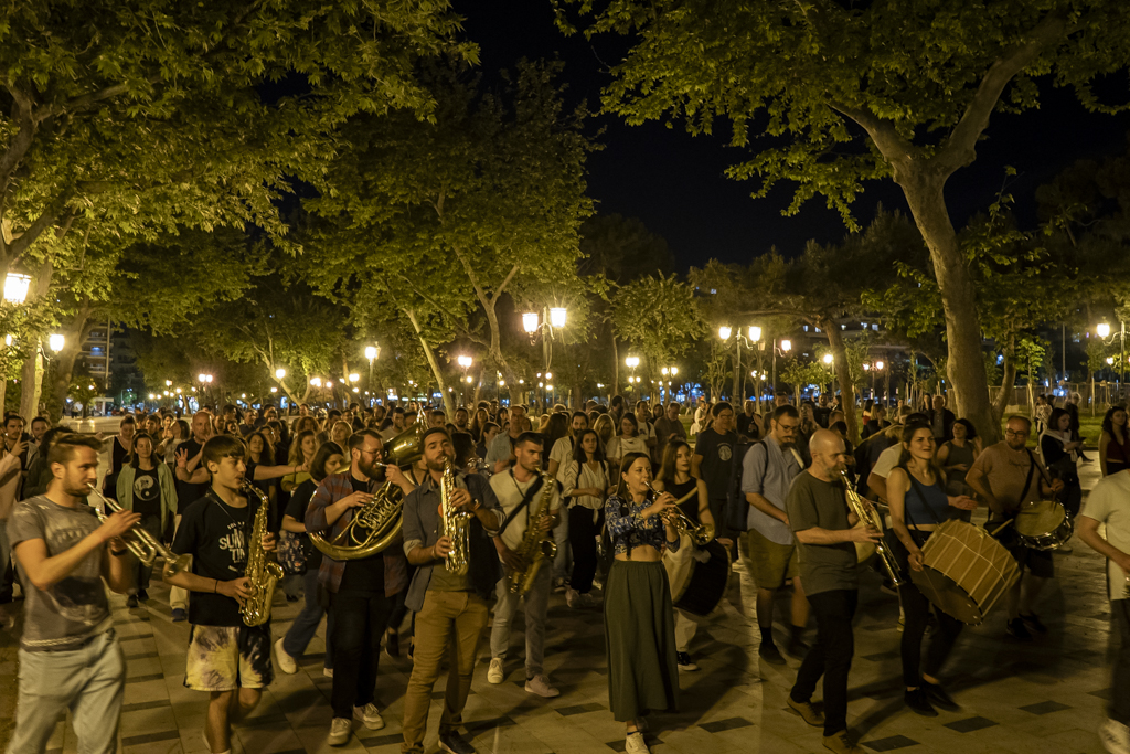 Με βαλκανικές μελωδίες και ρούμπες γέμισαν οι δρόμοι της Θεσσαλονίκης γύρω από την Ρωμαϊκή Αγορά και το Μπιτ Μπαζάρ στην πλατεία Εργατικού Κέντρου στη Θεσσαλονίκη.