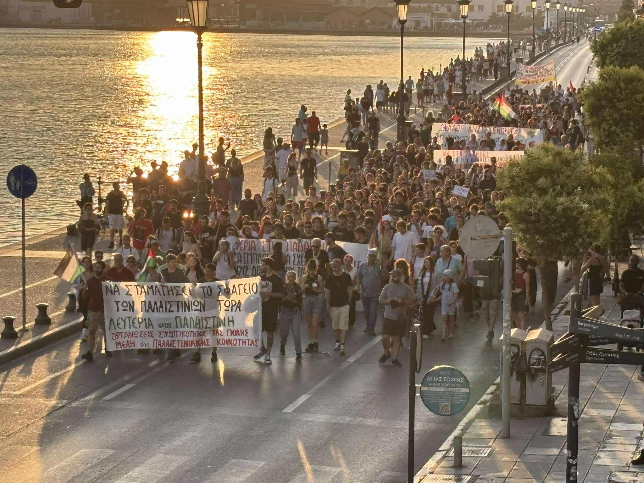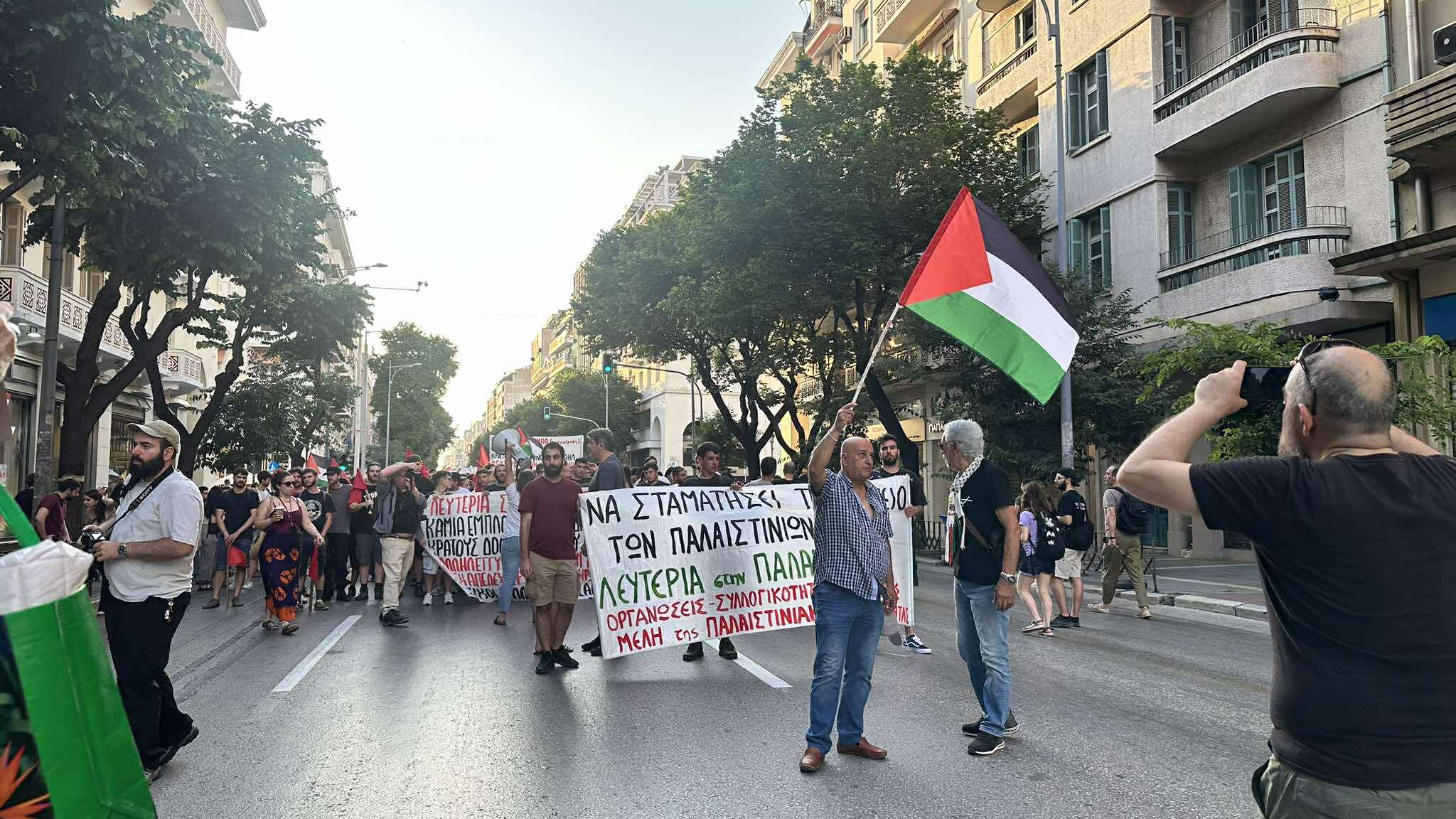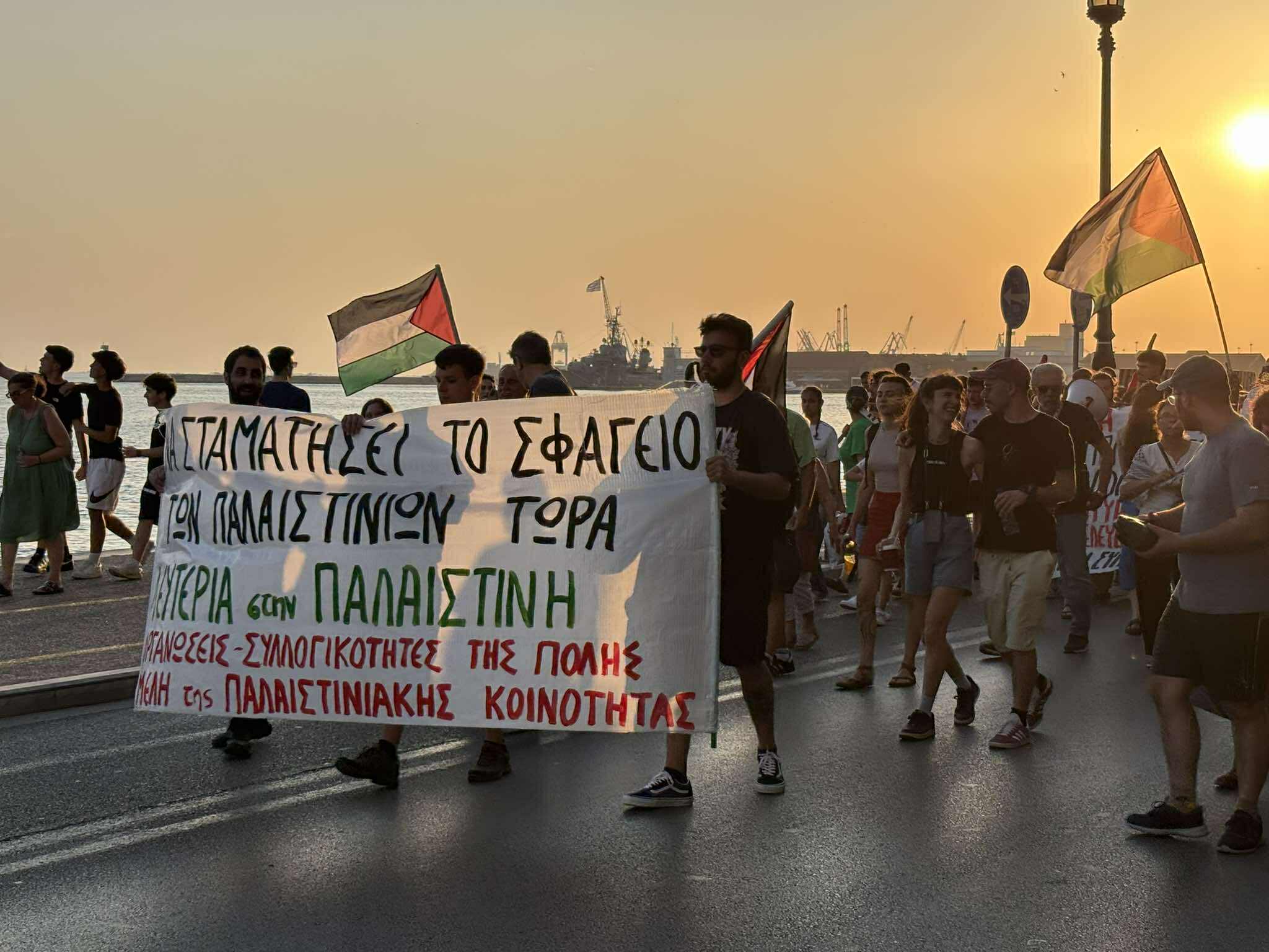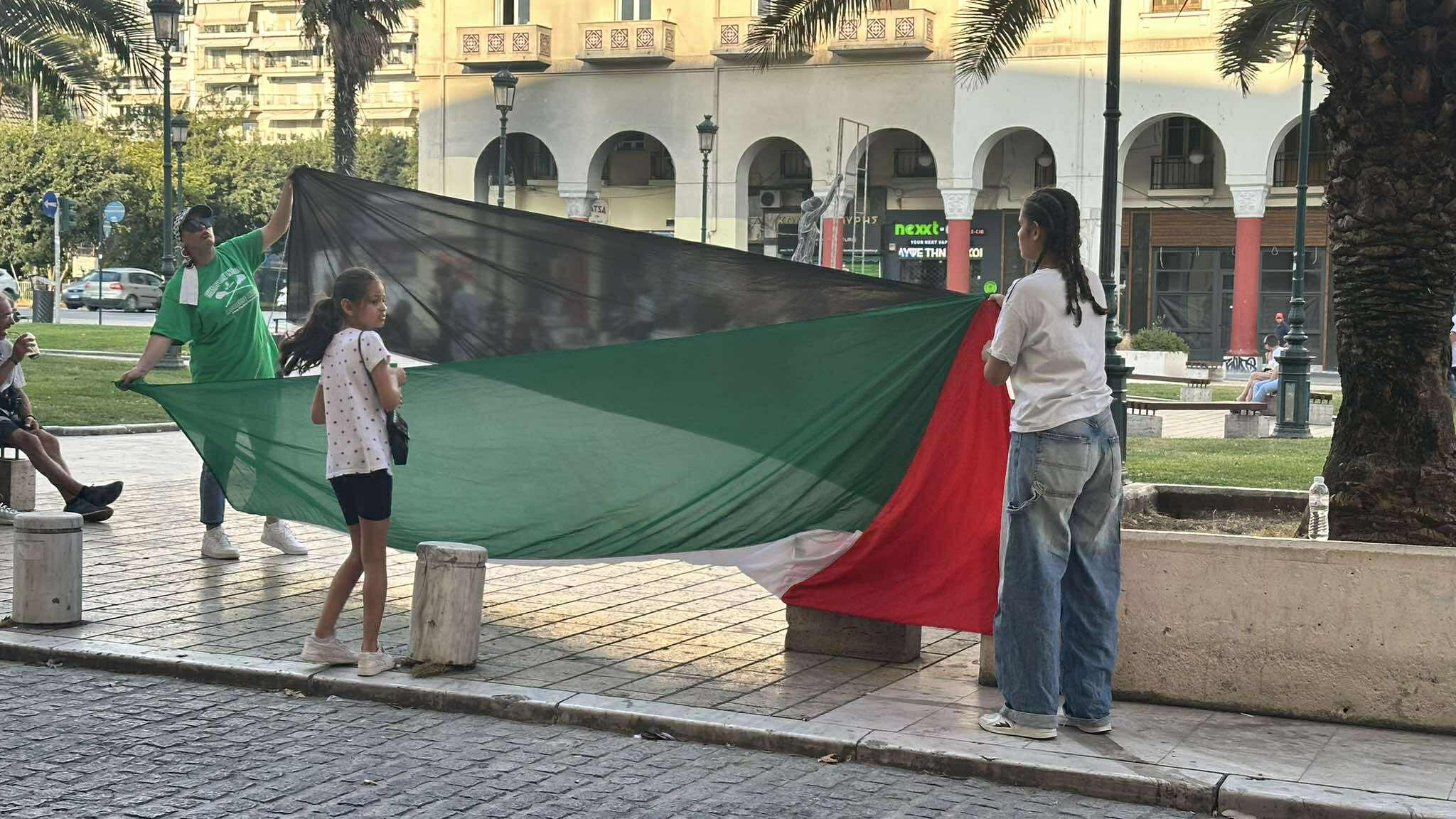 Συγκέντρωση αλληλεγγύης προς τον λαό της Παλαιστίνης βρίσκεται σε εξέλιξη αυτήν τη στιγμή στην Αριστοτέλους με Τσιμισκή, μετά από κάλεσμα συλλογικοτήτων.