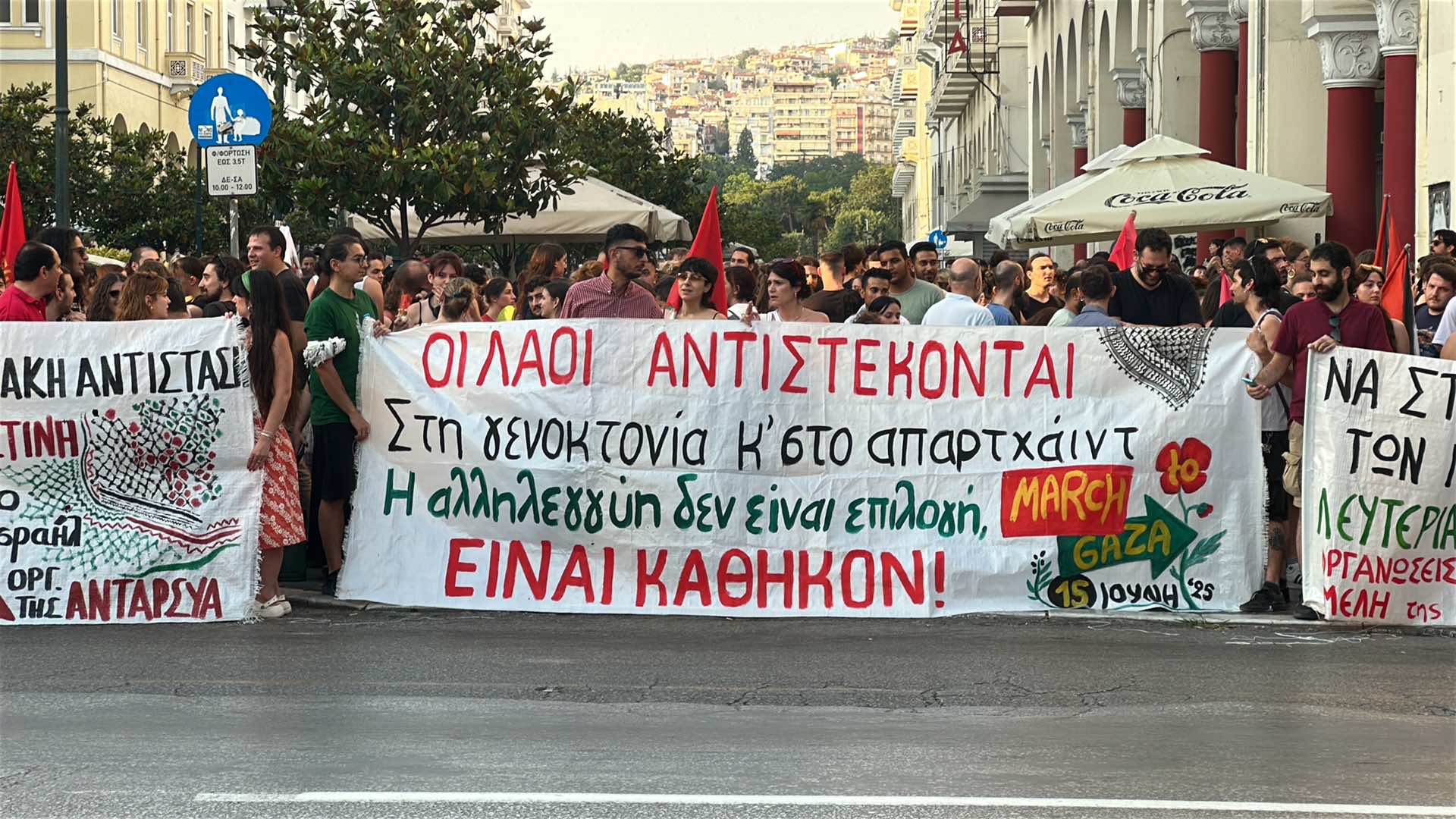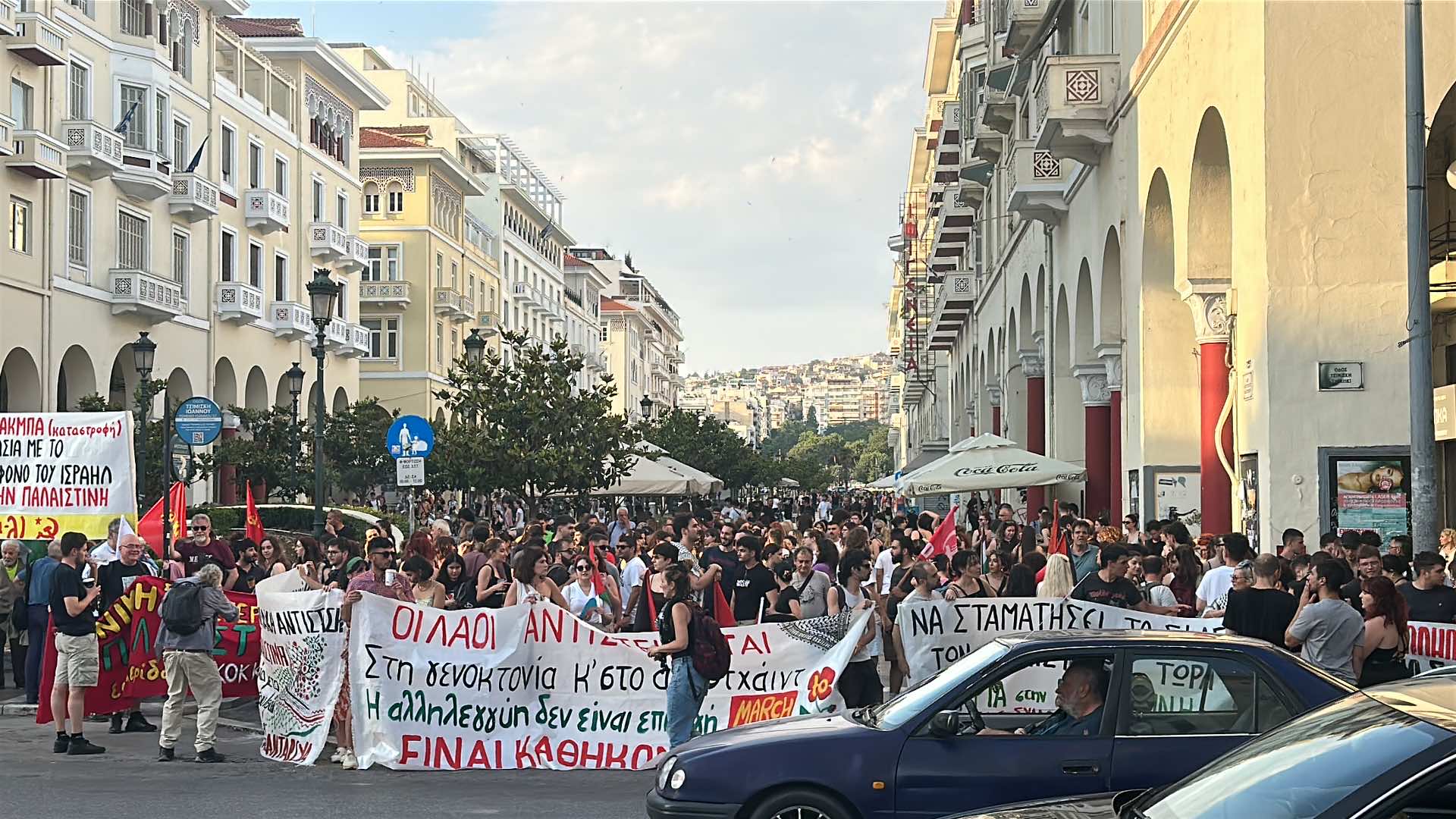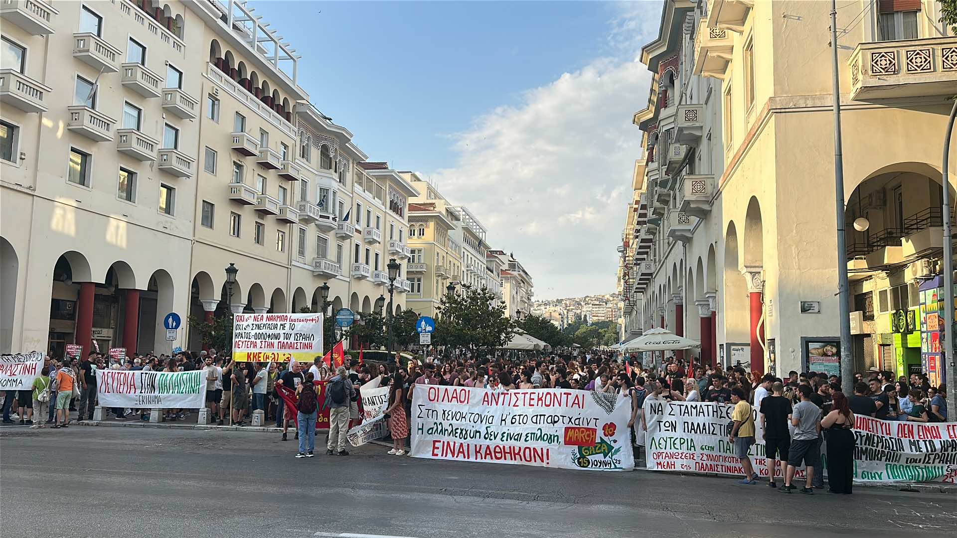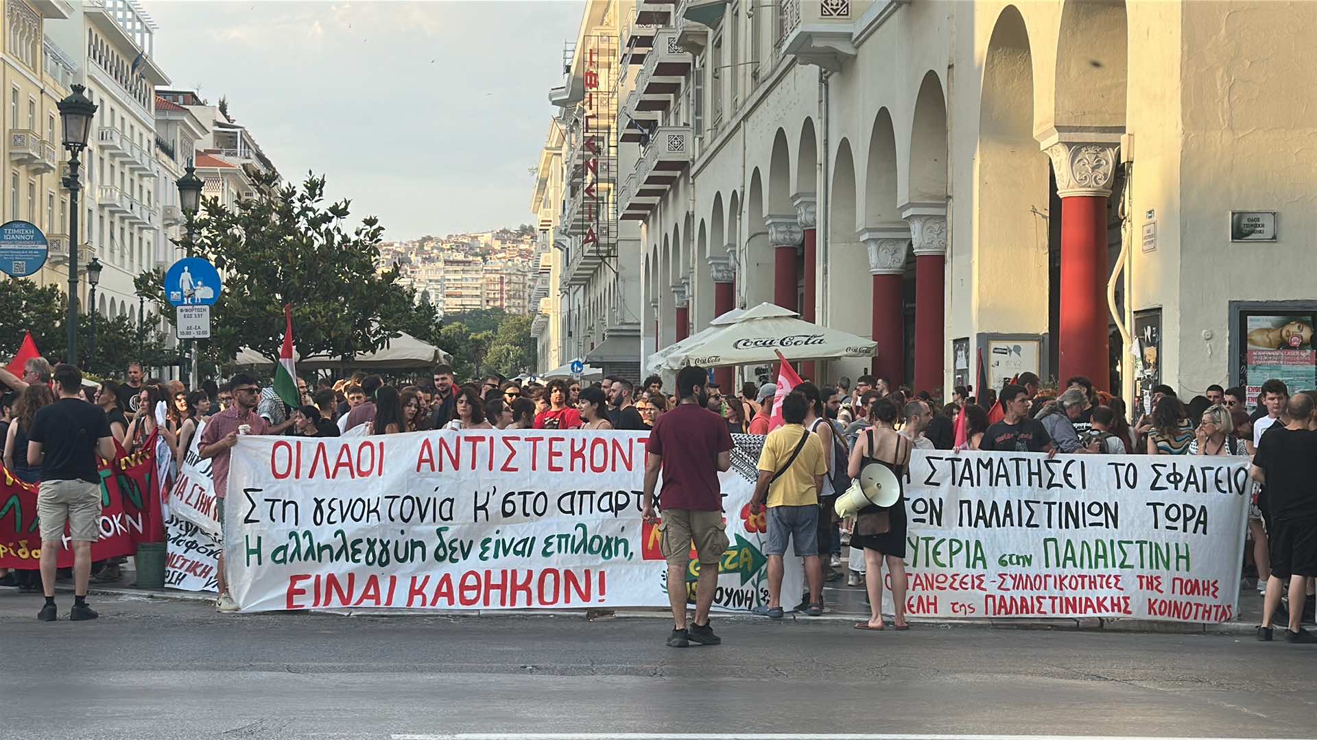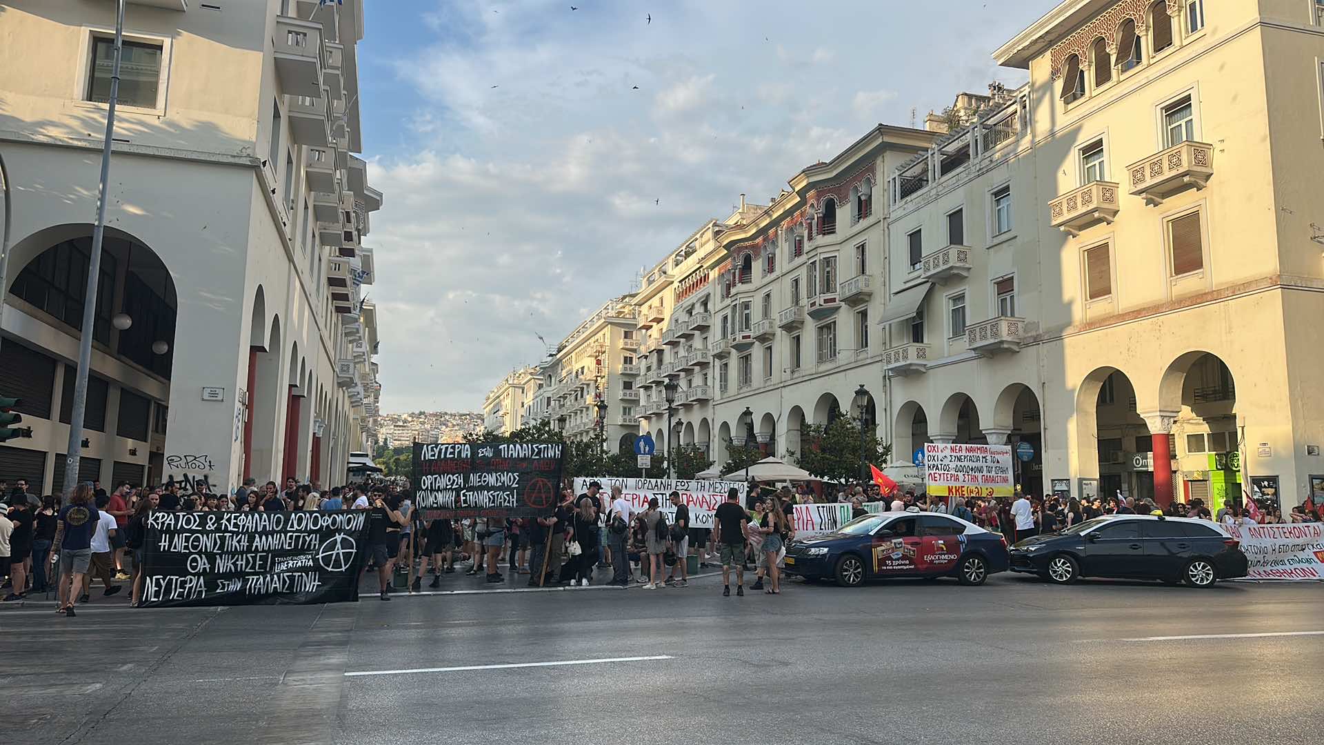 Συγκέντρωση αλληλεγγύης προς τον λαό της Παλαιστίνης βρίσκεται σε εξέλιξη αυτήν τη στιγμή στην Αριστοτέλους με Τσιμισκή, μετά από κάλεσμα συλλογικοτήτων.