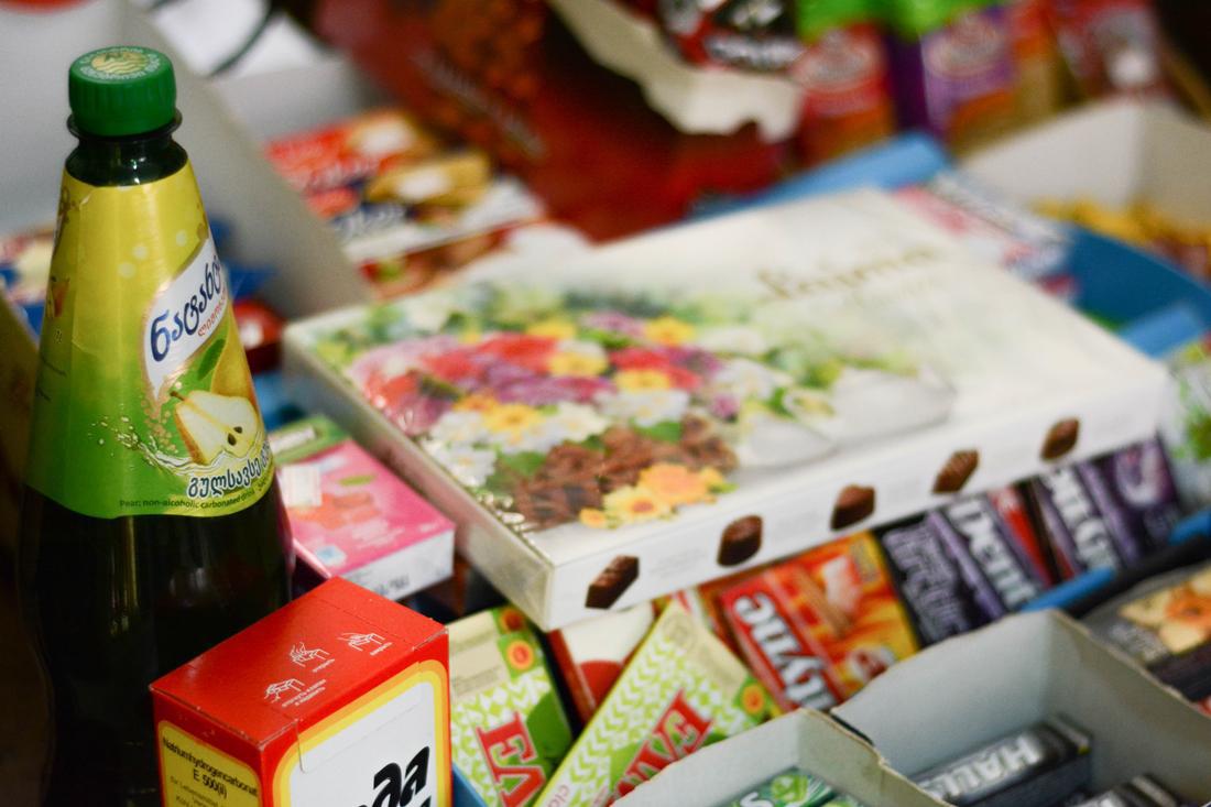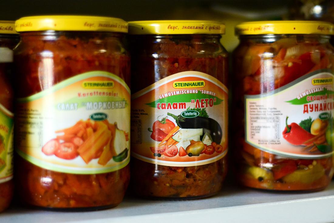 Σε πολλά σημεία του μαγαζιού μπορείς να βρεις προϊόντα που εισάγονται από την Ρωσία. Χυμοί, ταχούν, γκοφρέτες, σοκολατάκια, καϊμάκι ρωσικό και διάφορα μικρο-φαγητά, που ο κόσμος της γειτονιάς μπορεί να προμηθευτεί.