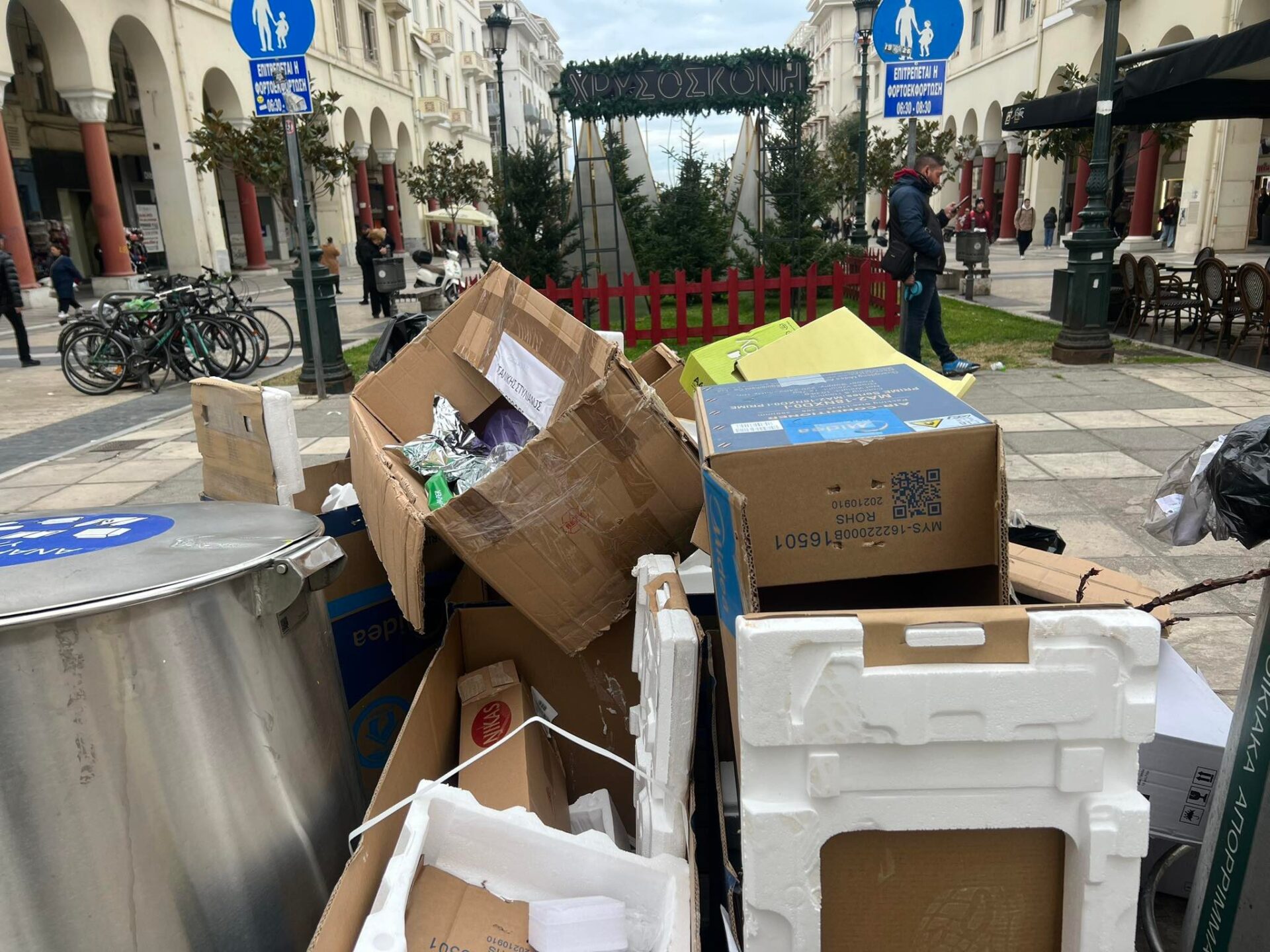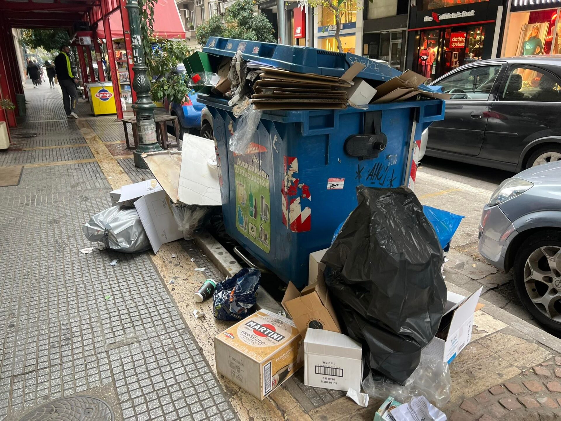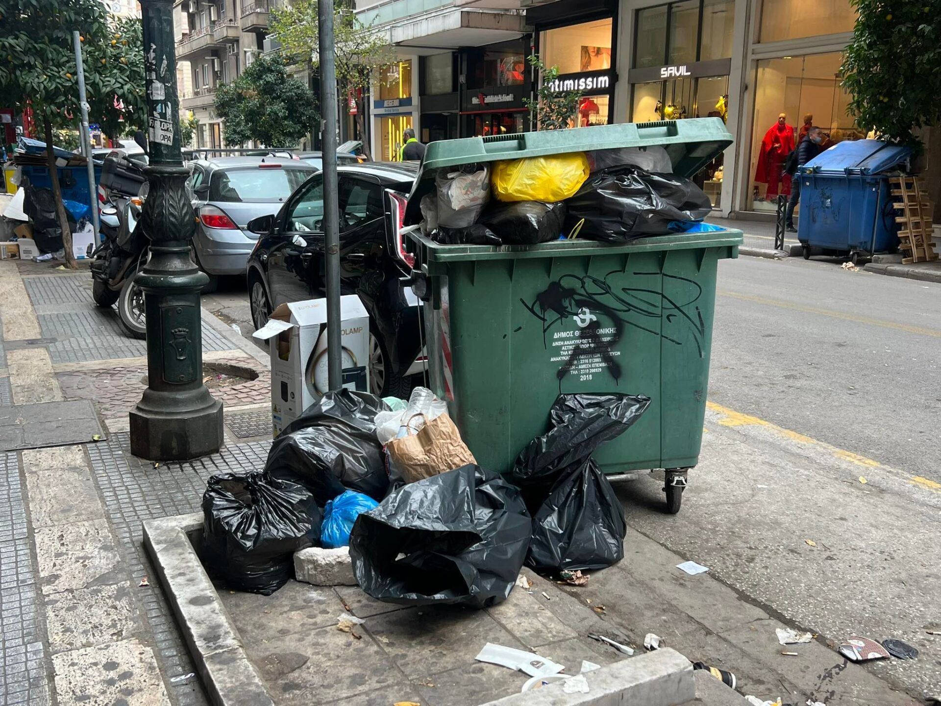 Σκουπιδότοπο θυμίζουν δρόμοι στο κέντρο της Θεσσαλονίκης, καθώς οι εργαζόμενοι απέχουν από την αποκομιδή απορριμμάτων μέχρι την Τετάρτη.