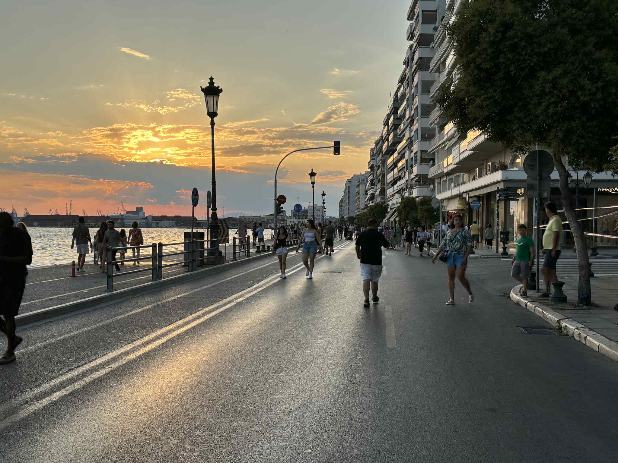 Μπορεί πολλοί Θεσσαλονικείς να παίρνουν το δρόμο της επιστροφής από τις παραλίες της Χαλκιδικής, της Ασπροβάλτας και της Κατερίνης, ωστόσο όσοι έμειναν στην πόλη… αποζημιώνονται με μια όμορφη βραδινή βόλτα στο κέντρο.
