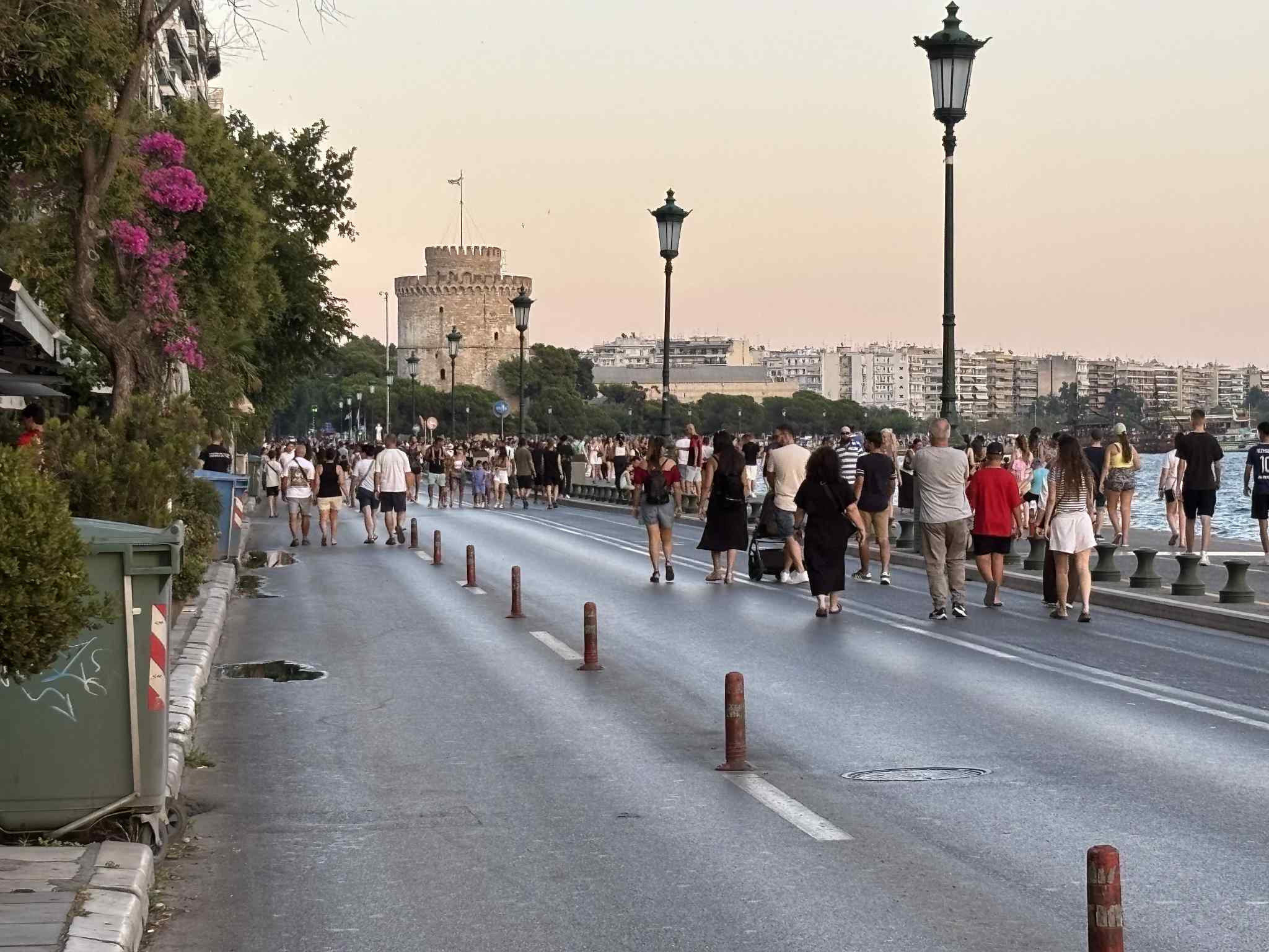 Η Λεωφόρος Νίκης έγινε για μια ακόμη φορά πεζόδρομος από τις 19:00 έως τα μεσάνυχτα και οι Θεσσαλονικείς απολαμβάνουν τη στιγμή.