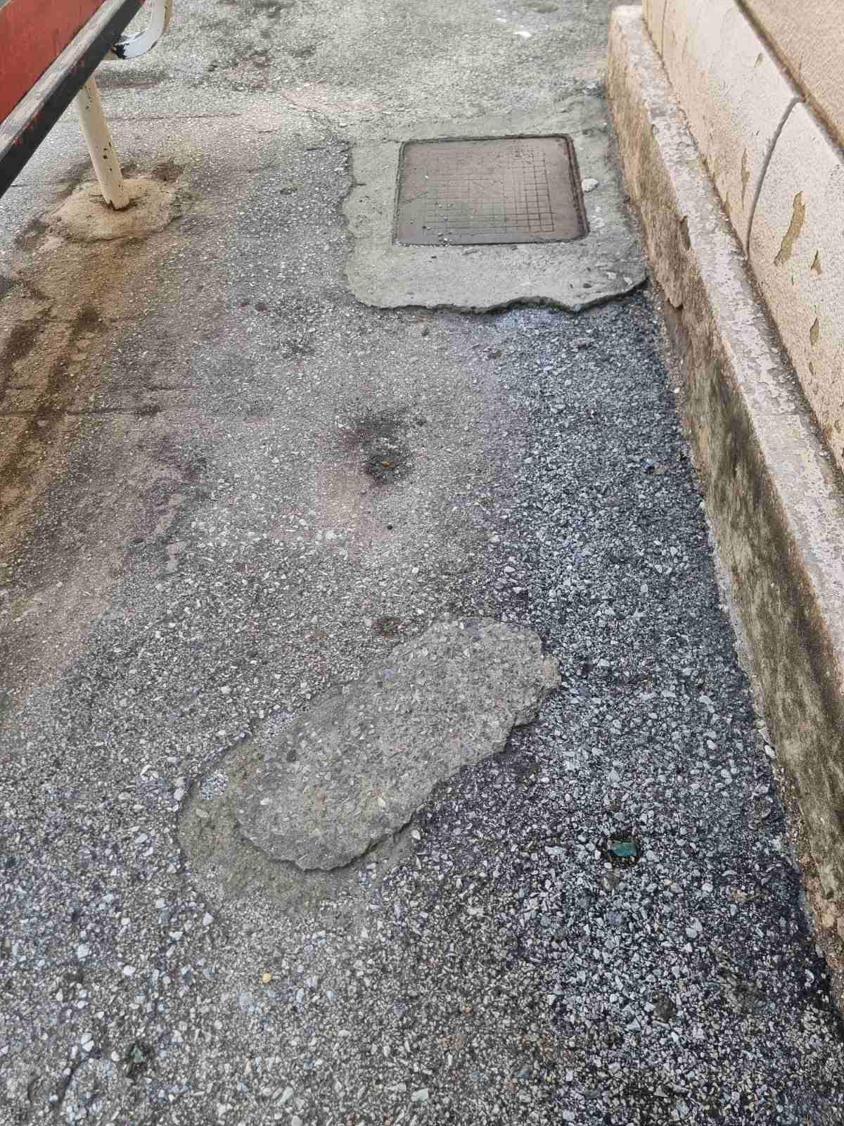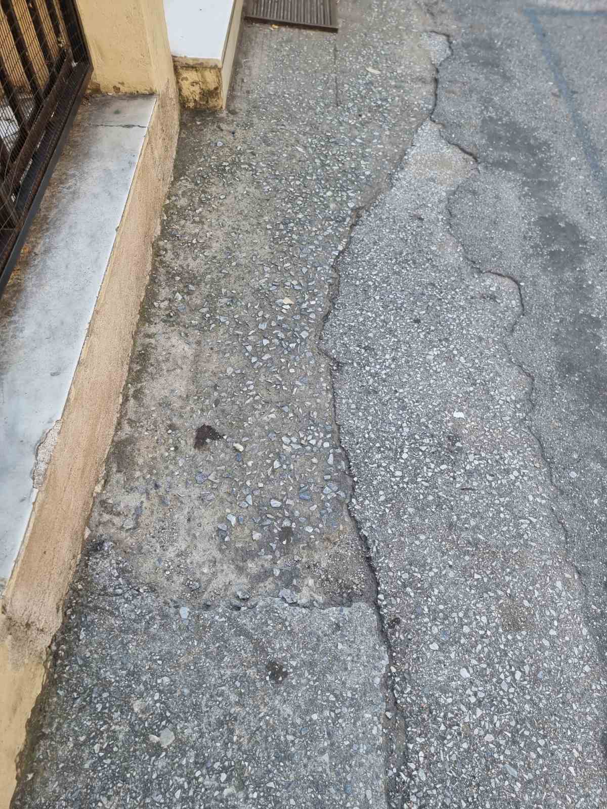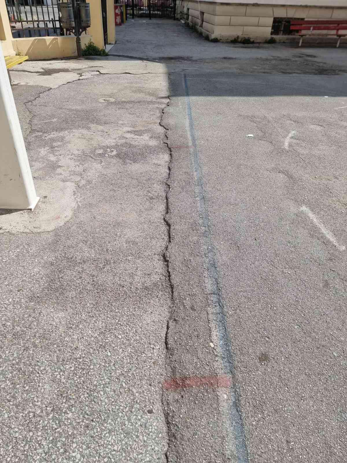 Επιπλέον το δάπεδο της αυλής είναι απολύτως ακατάλληλο ως υλικό και ανισόπεδο με πολλά σημεία να κρατάνε το νερό σε περίπτωση βροχής.