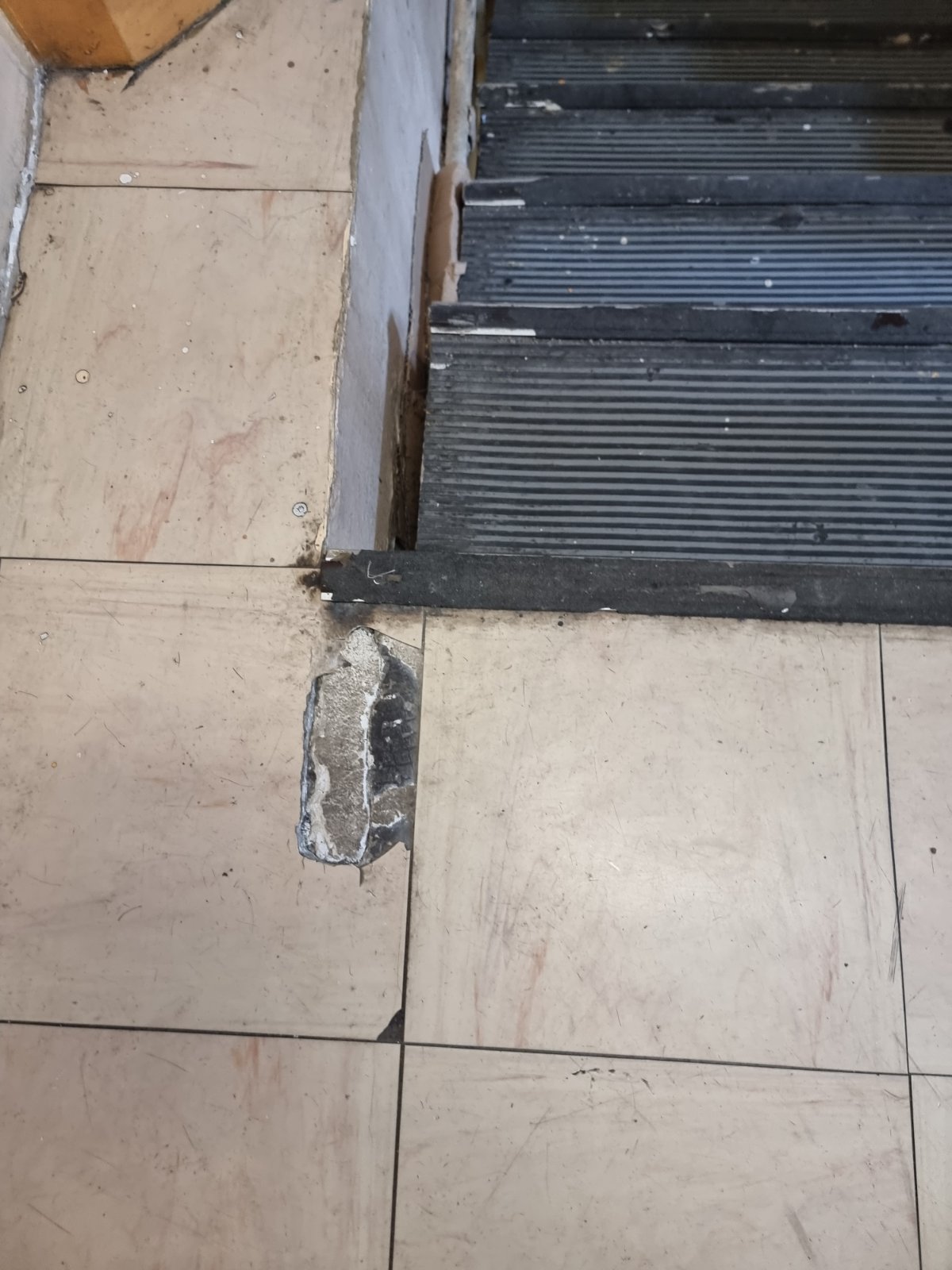 Οι αντιολισθητικές σχάρες που υπάρχουν ανάμεσα στα σκαλοπάτια έχουν φύγει με κίνδυνο της σωματικής ακεραιότητα των μαθητών.